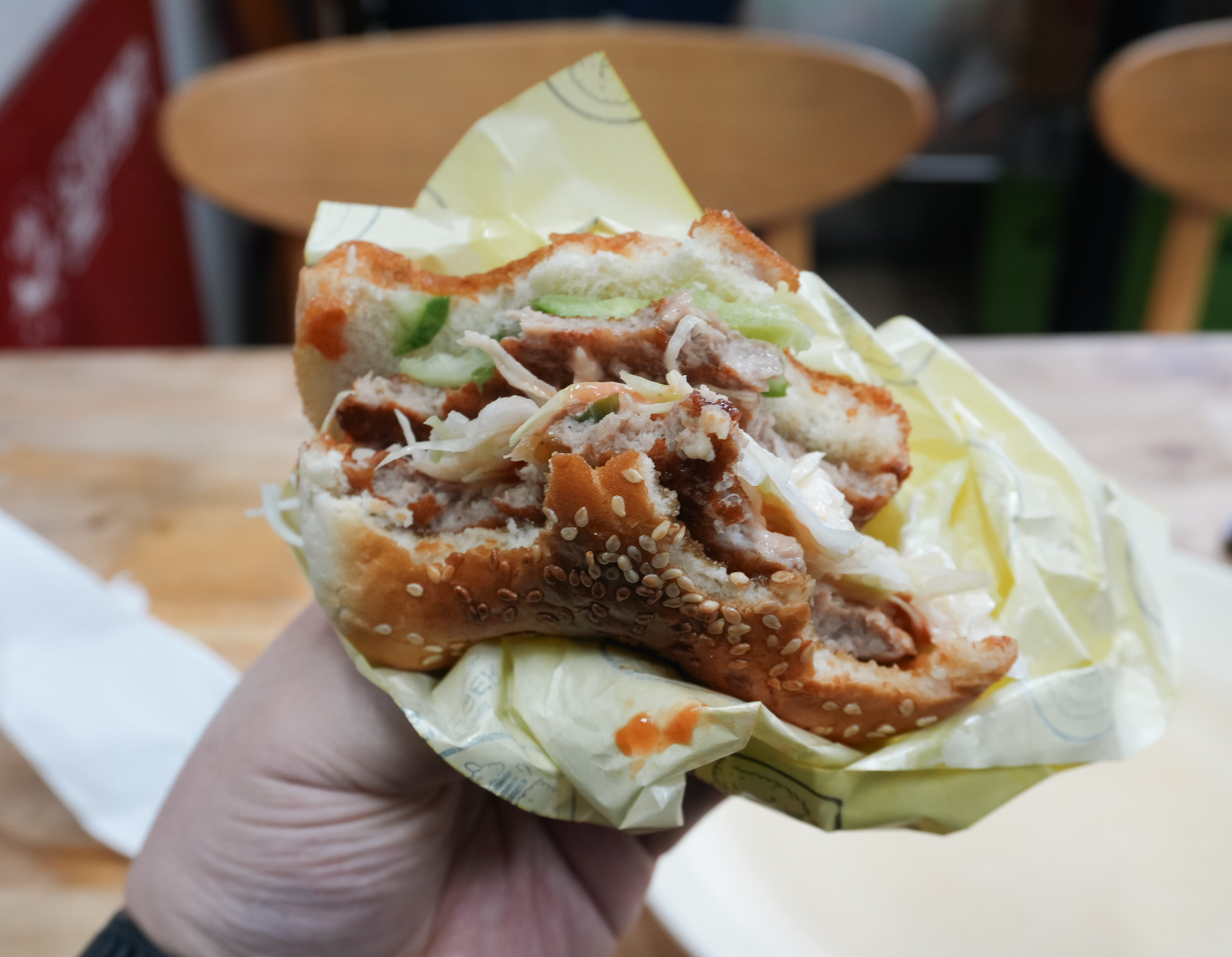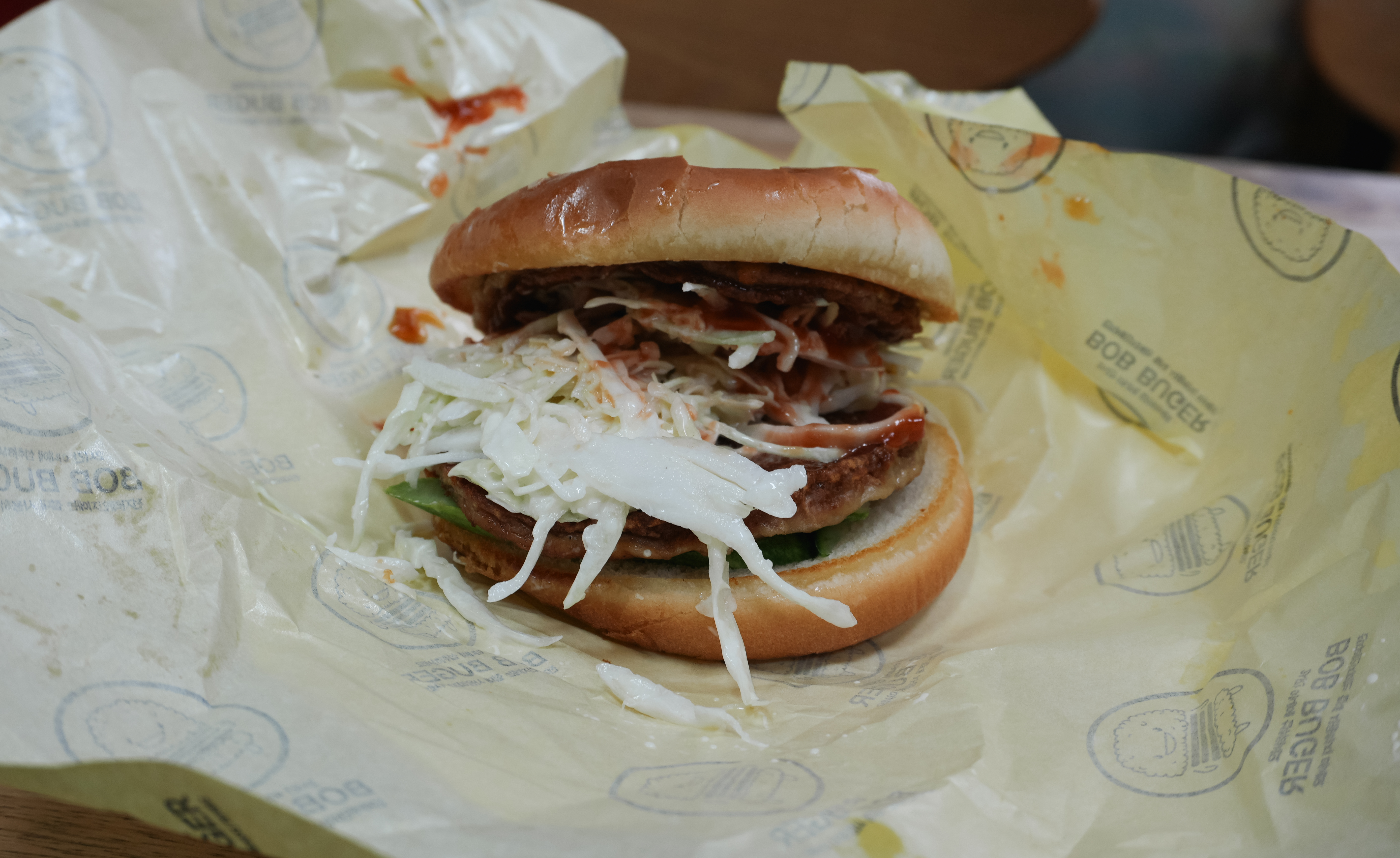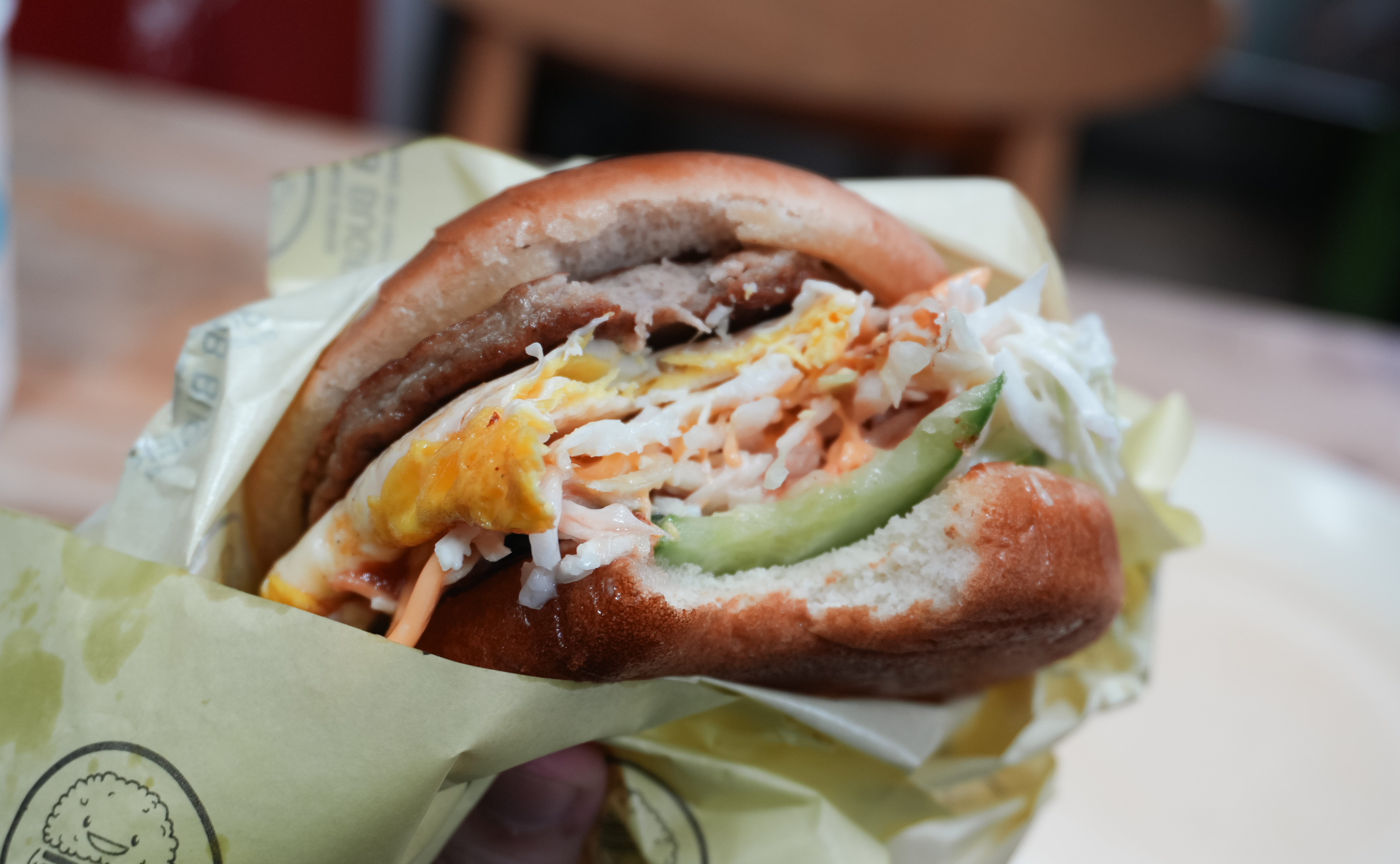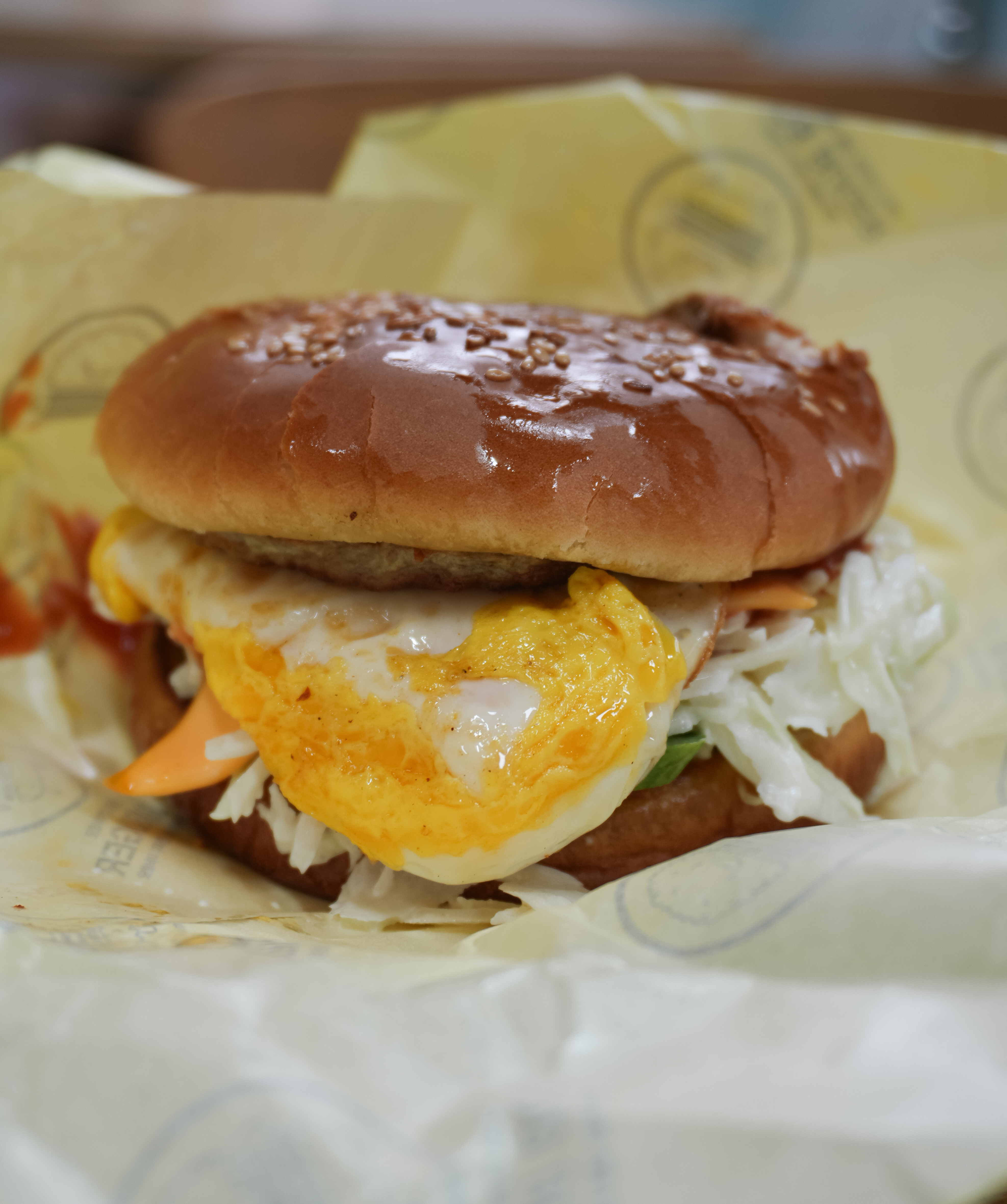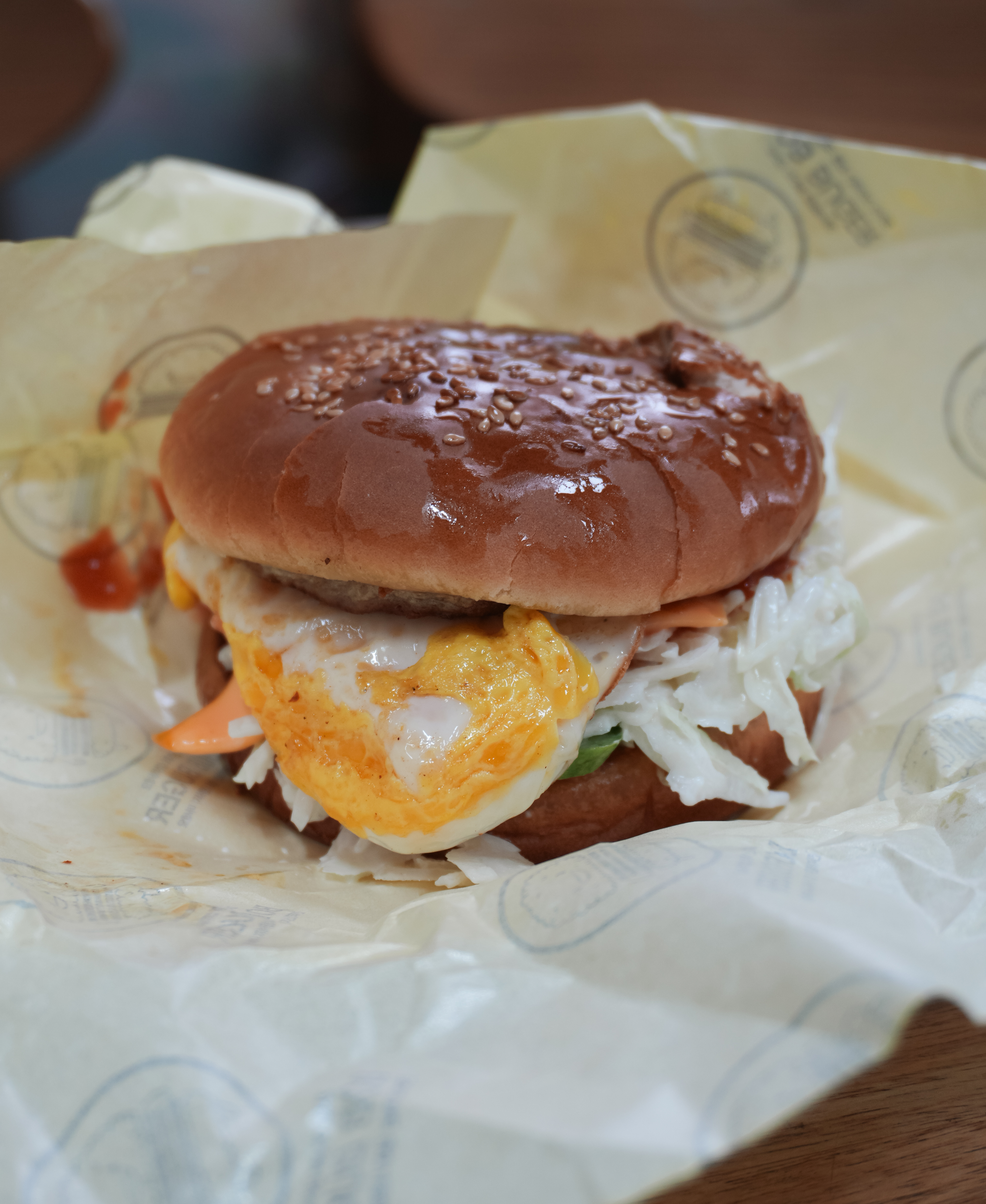 두 번째로 먹었던 메뉴는 더블햄버거입니다. 패티 두 장이 들어가는 햄버거였는데, 소스는 케찹, 마요네즈 그리고 불고기소스(?)로 보이는 소스가 추가되더라고요. 패티 자체는 소고기처럼 감칠맛이 좋은 편은 아니어서 저는 개인적으로 로얄 햄버거가 더 나았다고 생각이 듭니다.