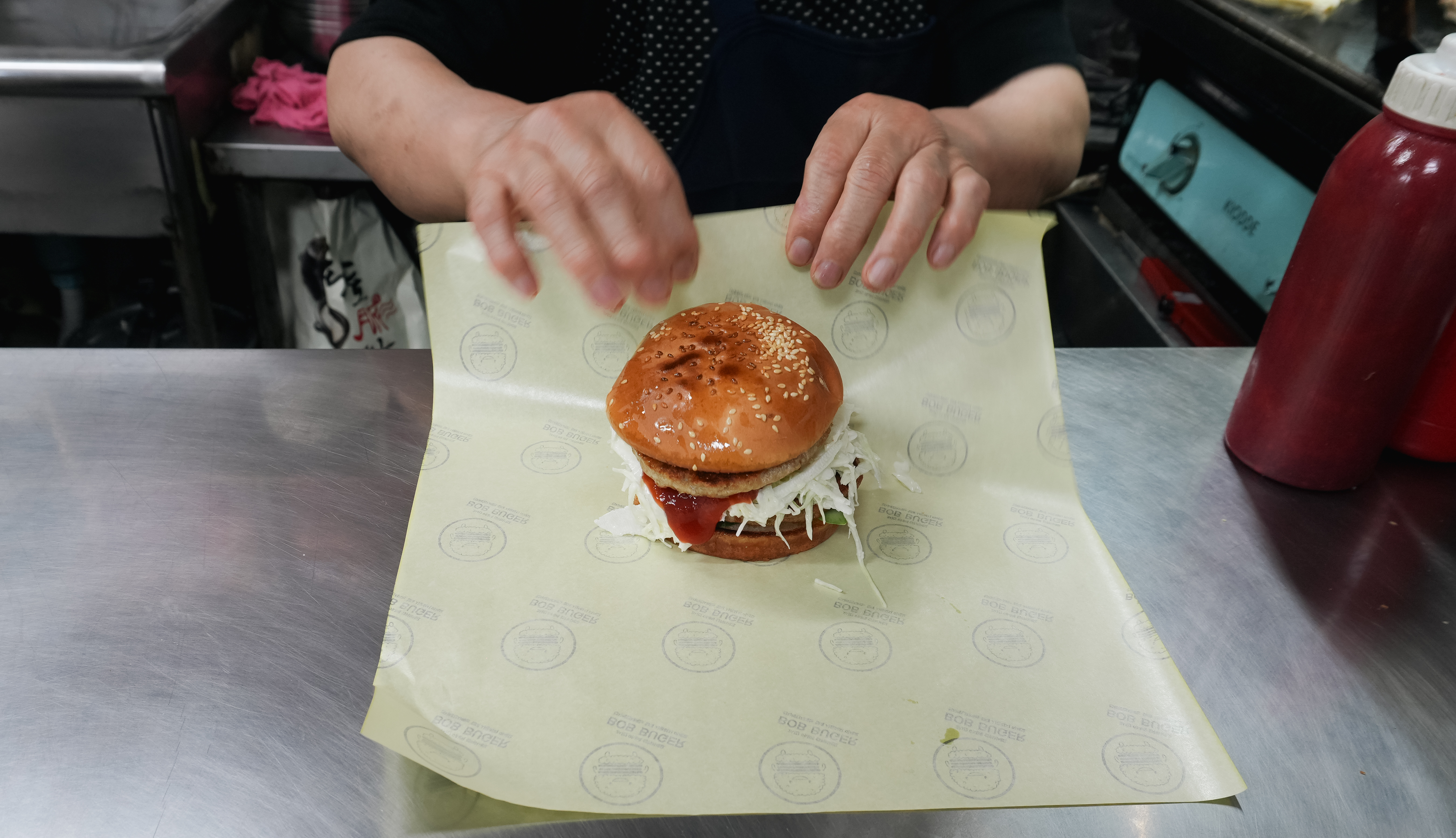 두 번째로 먹었던 메뉴는 더블햄버거입니다. 패티 두 장이 들어가는 햄버거였는데, 소스는 케찹, 마요네즈 그리고 불고기소스(?)로 보이는 소스가 추가되더라고요. 패티 자체는 소고기처럼 감칠맛이 좋은 편은 아니어서 저는 개인적으로 로얄 햄버거가 더 나았다고 생각이 듭니다.