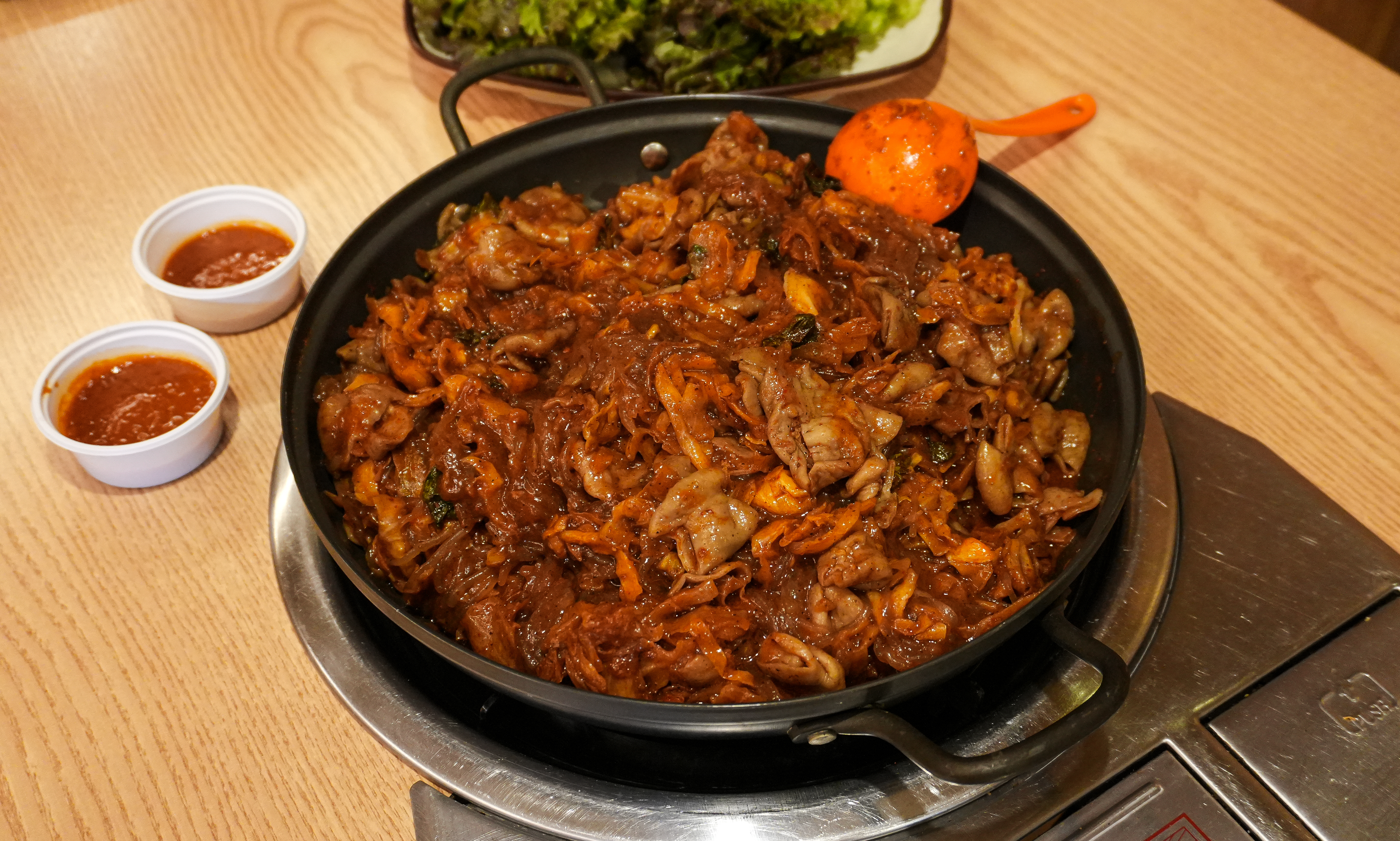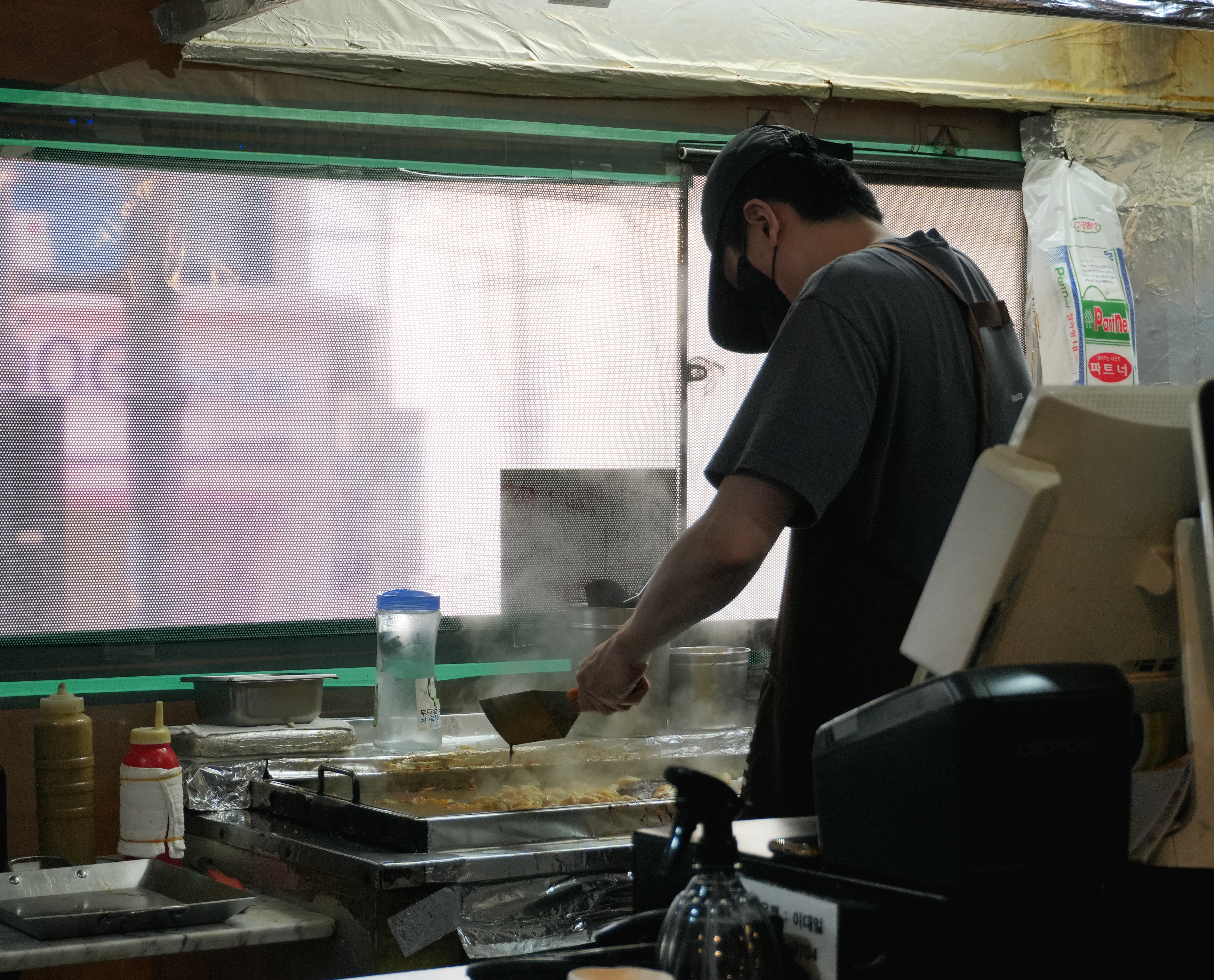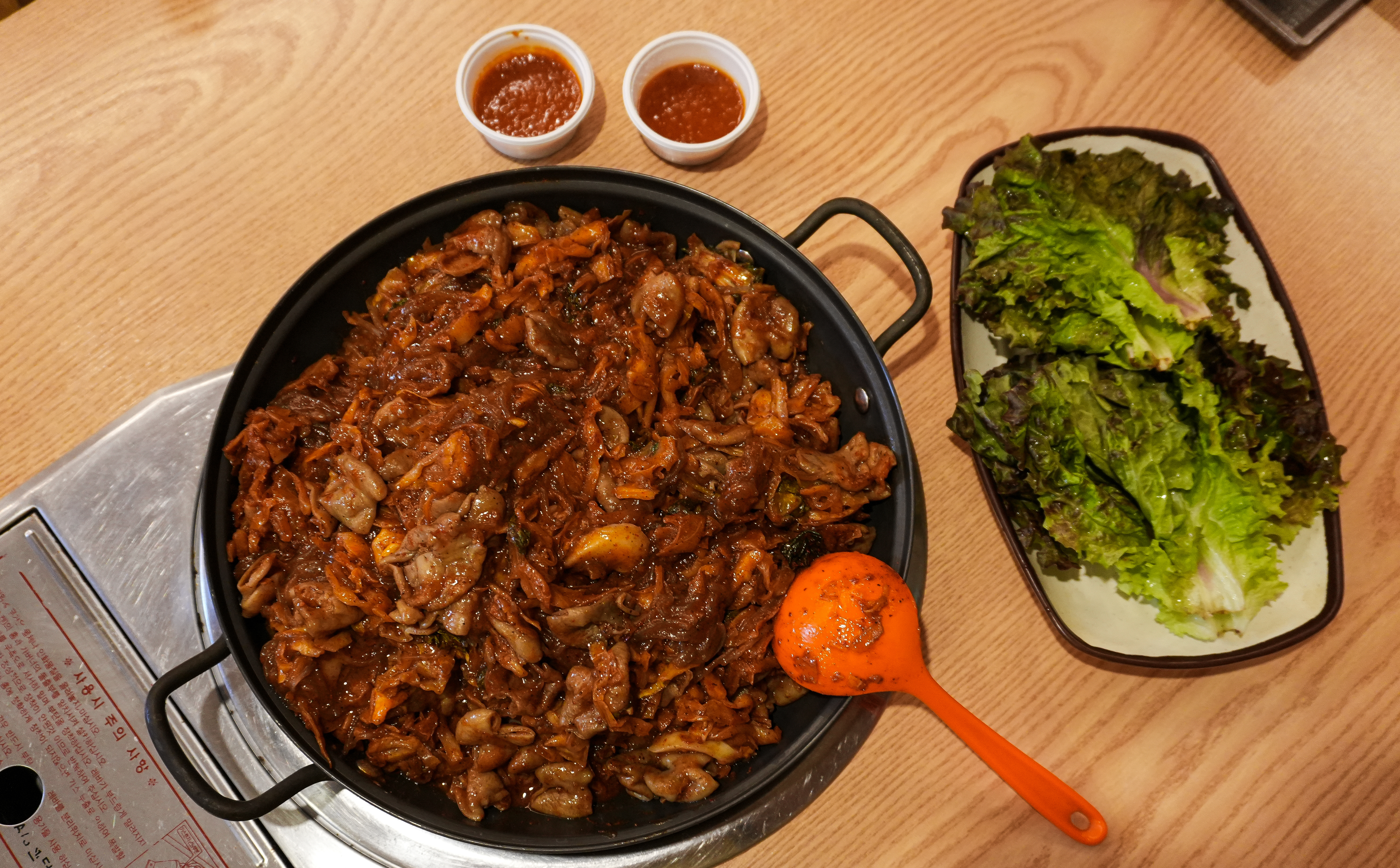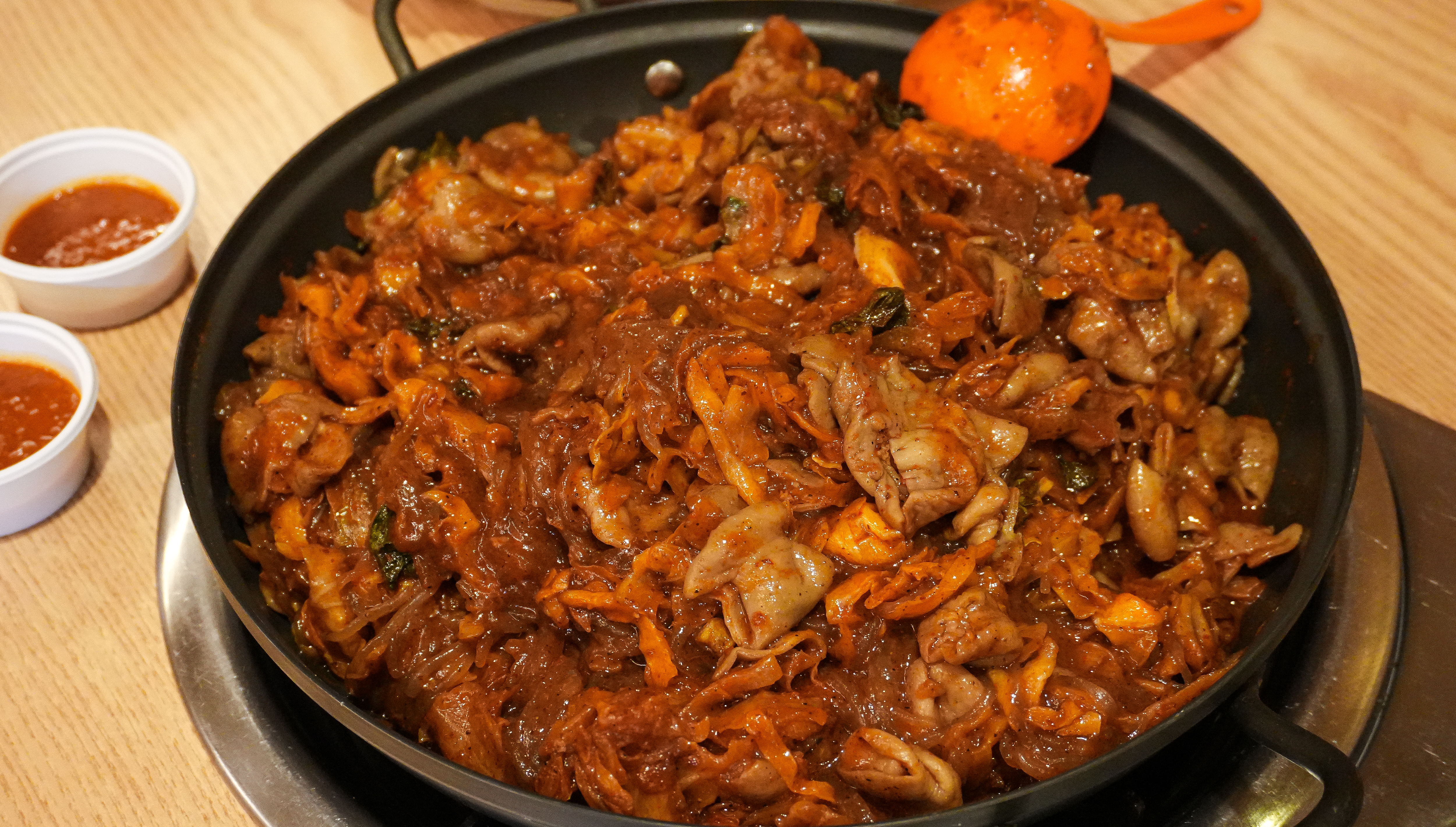 다행히 가게에 포장주문은 조금 더 늦은 시간에 했는데, 일찍 준비해 주셔서 빨리 포장할 수 있었습니다. 덕분에 철판에 곱창볶음을 볶는 과정도 볼 수 있었습니다. 한눈에 봐도 정말 많은 양을 철판에 볶아주시는데 2인분이라고는 믿기지 않는 양이었죠.