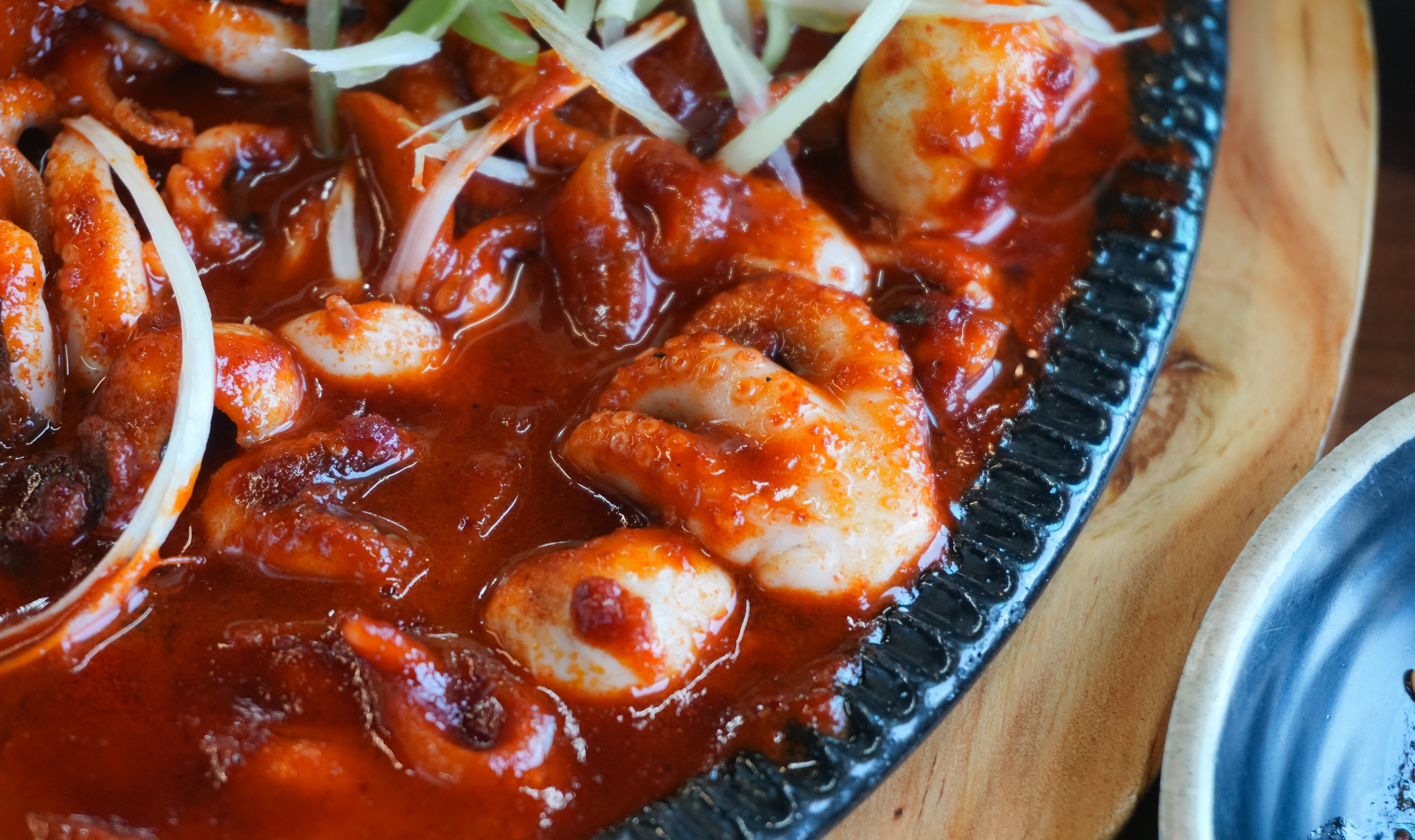 강화도 고기품은쌈밥의 쭈꾸미볶음은 소스가 생각보다 매콤하지는 않았고, 불향이 나더라고요. 그래도 밥이랑 비벼먹기 좋게 국물이 자작하게 있어서 먹기 좋았습니다. 물론 쌈으로 먹어도 좋았고요. 갓 지어 나온 돌솥밥에 바로 먹어도 좋았고, 쌈채소와 우렁이쌈장을 함께 곁들여서 먹어도 맛있었습니다.