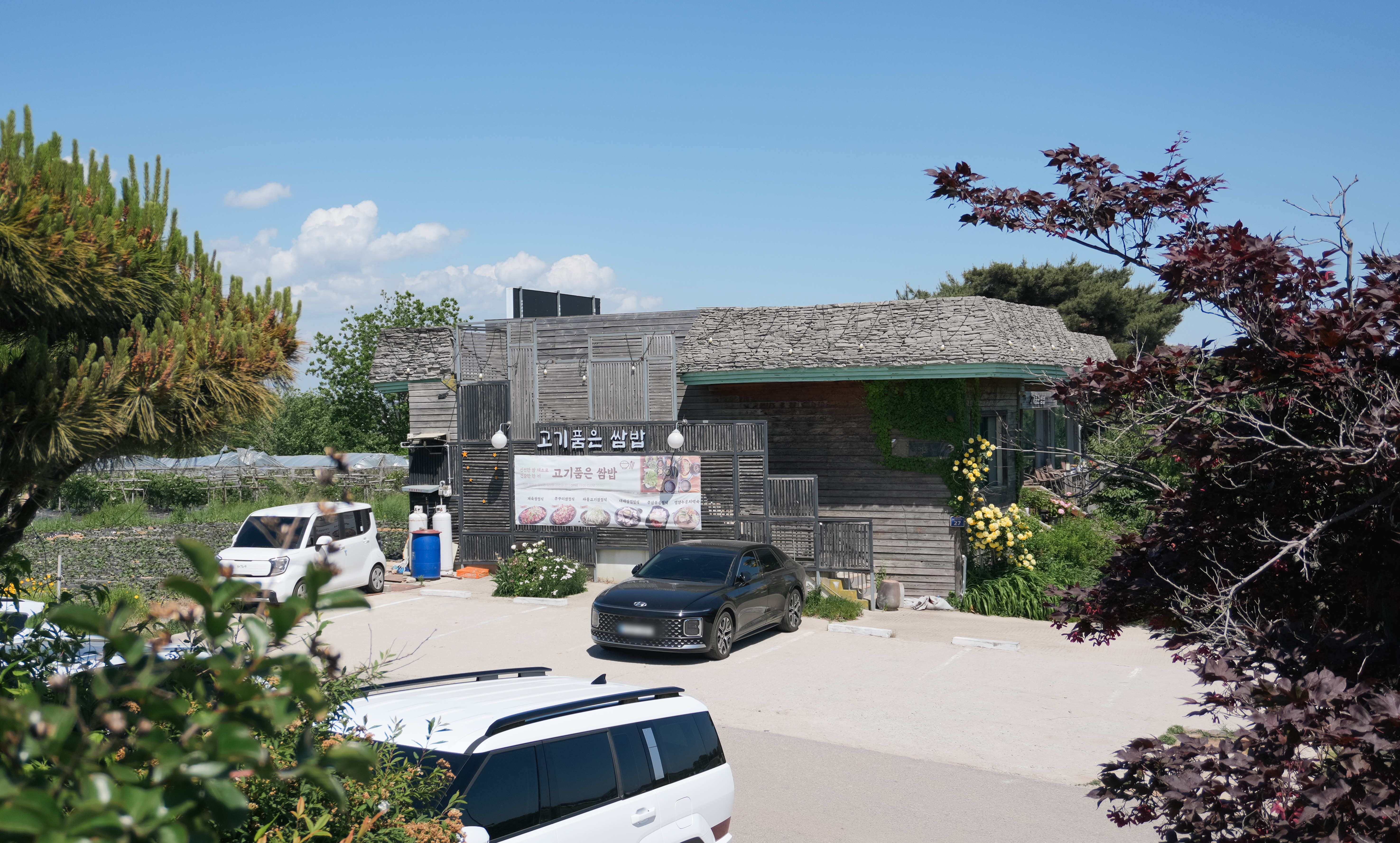 고기품은쌈밥은 인천 강화군 길상면 초지리 456에 위치한 가게였으며, 가게에 들어가기 전 정원을 살펴보았는데. 건너편 매화마름에 견주어도 뒤처지지 않을 만큼 이쁘게 잘 꾸며놓으셨더라고요.