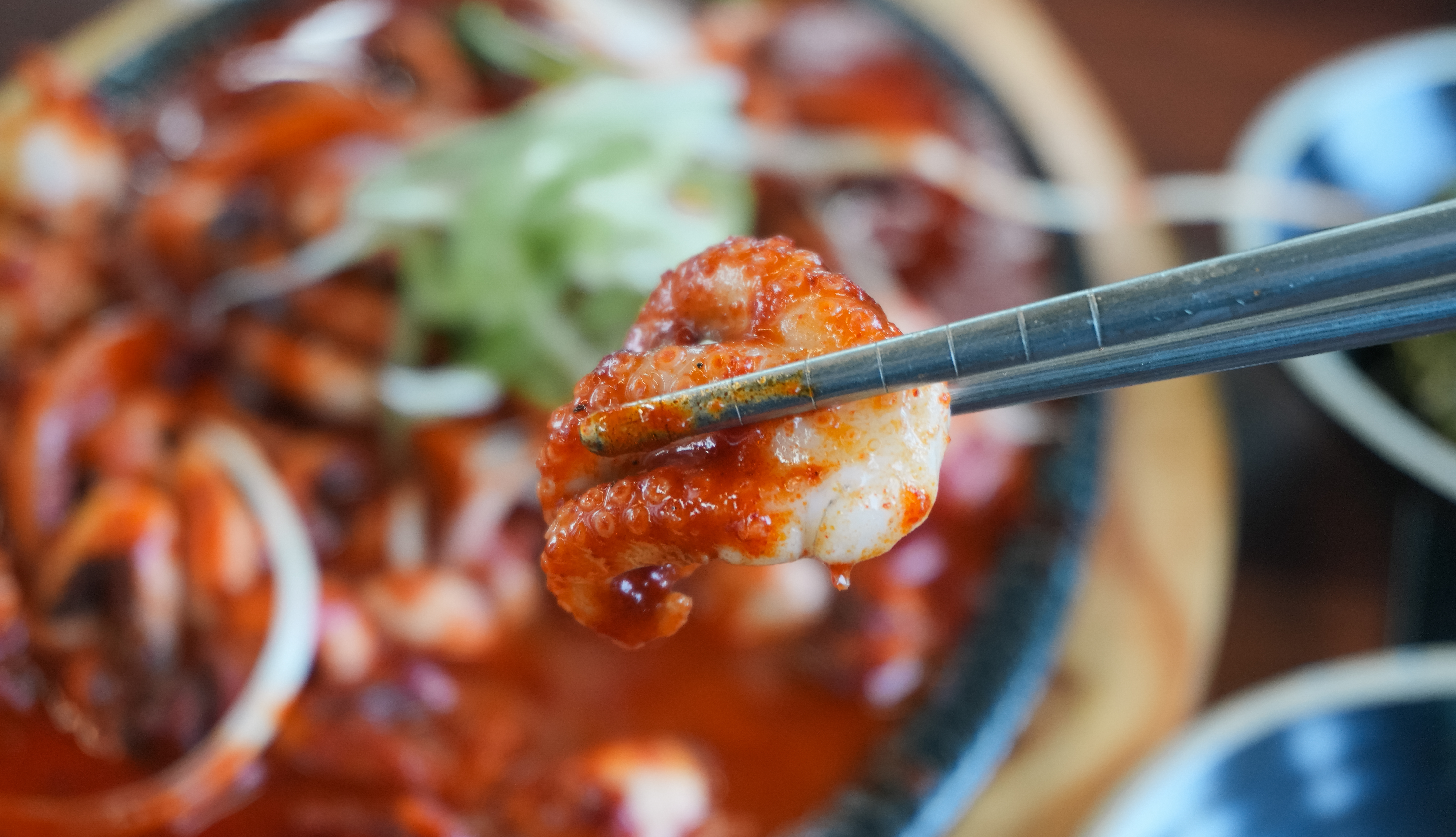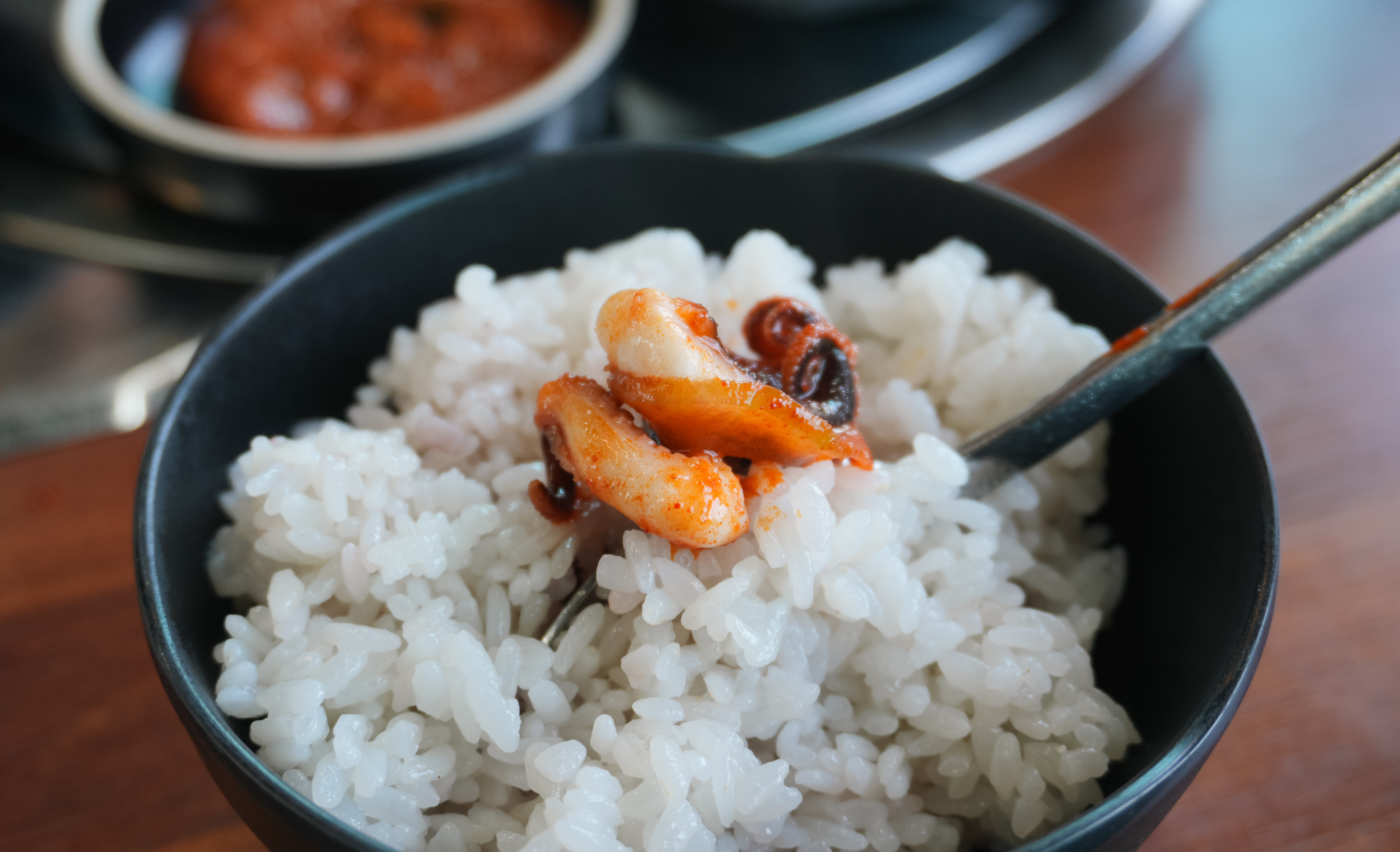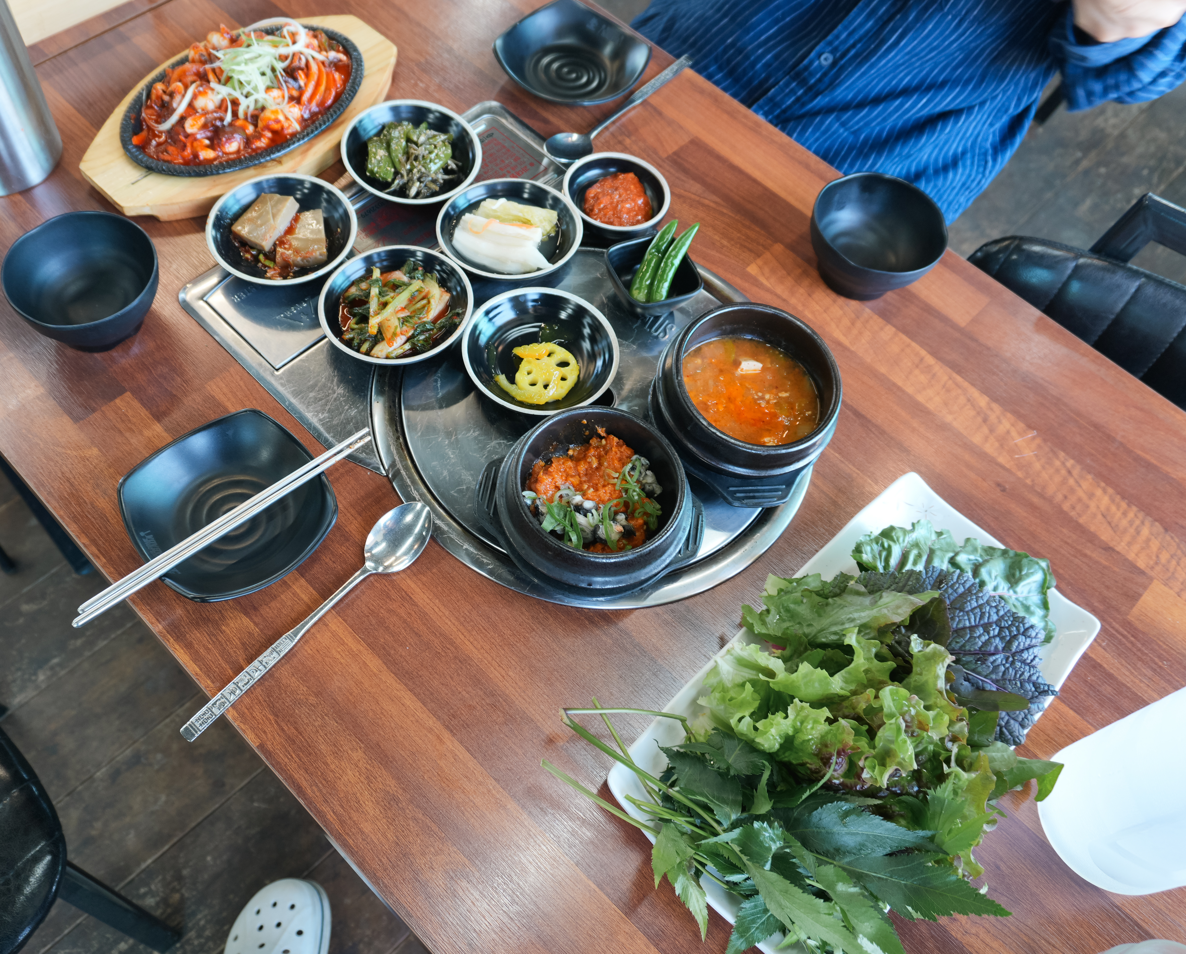 쭈꾸미쌈정식에는 메인 메뉴인 쭈꾸미볶음과 기본 반찬 5가지와 된장찌개, 우렁쌈장이 나왔습니다. 추가 쌈채소는 위에 언급하였던 셀프바에서 직접 가져다 먹으면 되었고요. 기타 반찬은 사장님께 부탁드리면 자리에 가져다주고 있었습니다.
