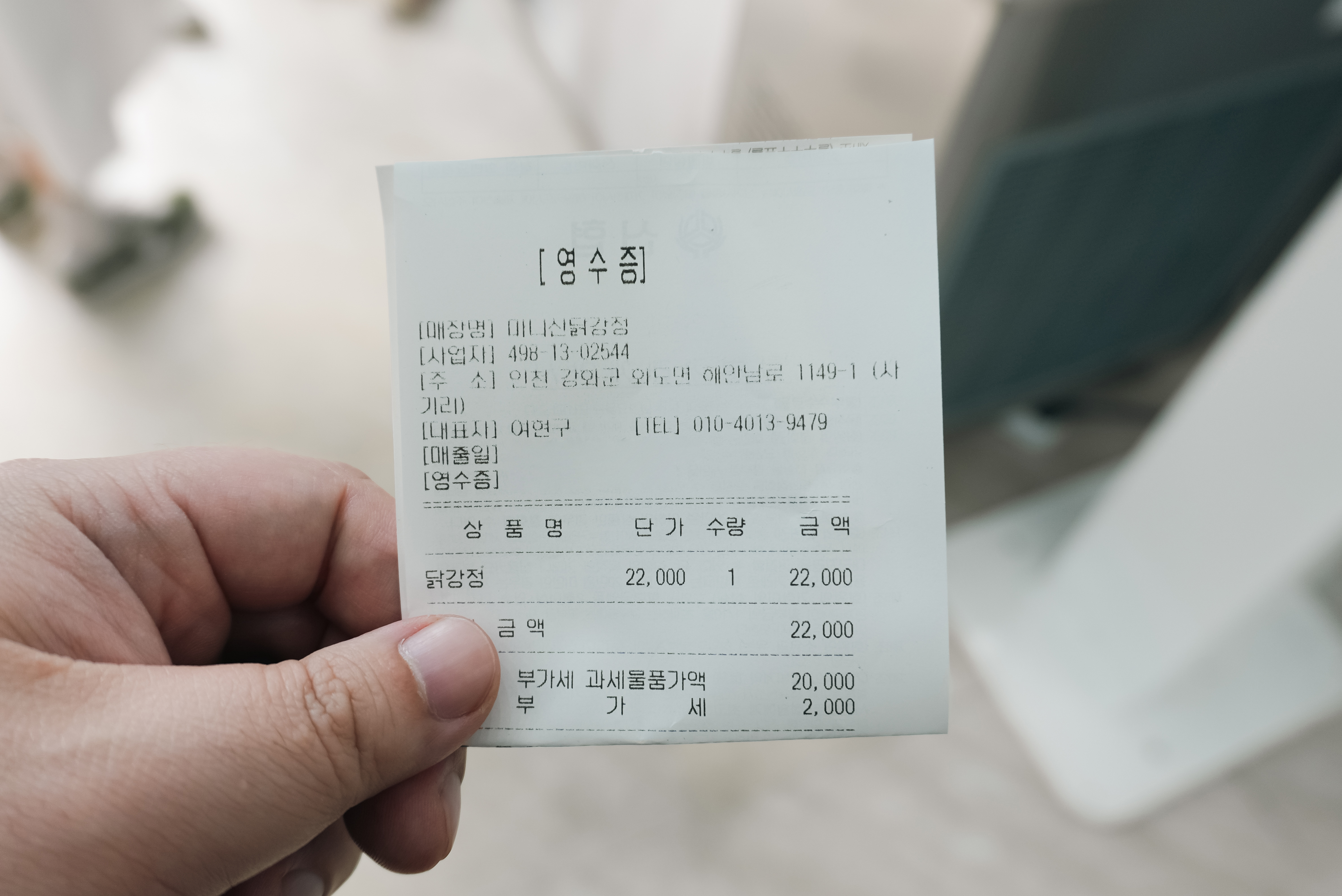 마니산닭강정은 인천 강화군 화도면 사기리 234-10, 1층에 위치한 가게였습니다. 이곳은 유명인들도 다녀갔는지 사진과 함께 사인이 걸려 있었고, 대기하는 손님들도 많이 있어서 주문하고 한 20분 정도 대기해야 했습니다.