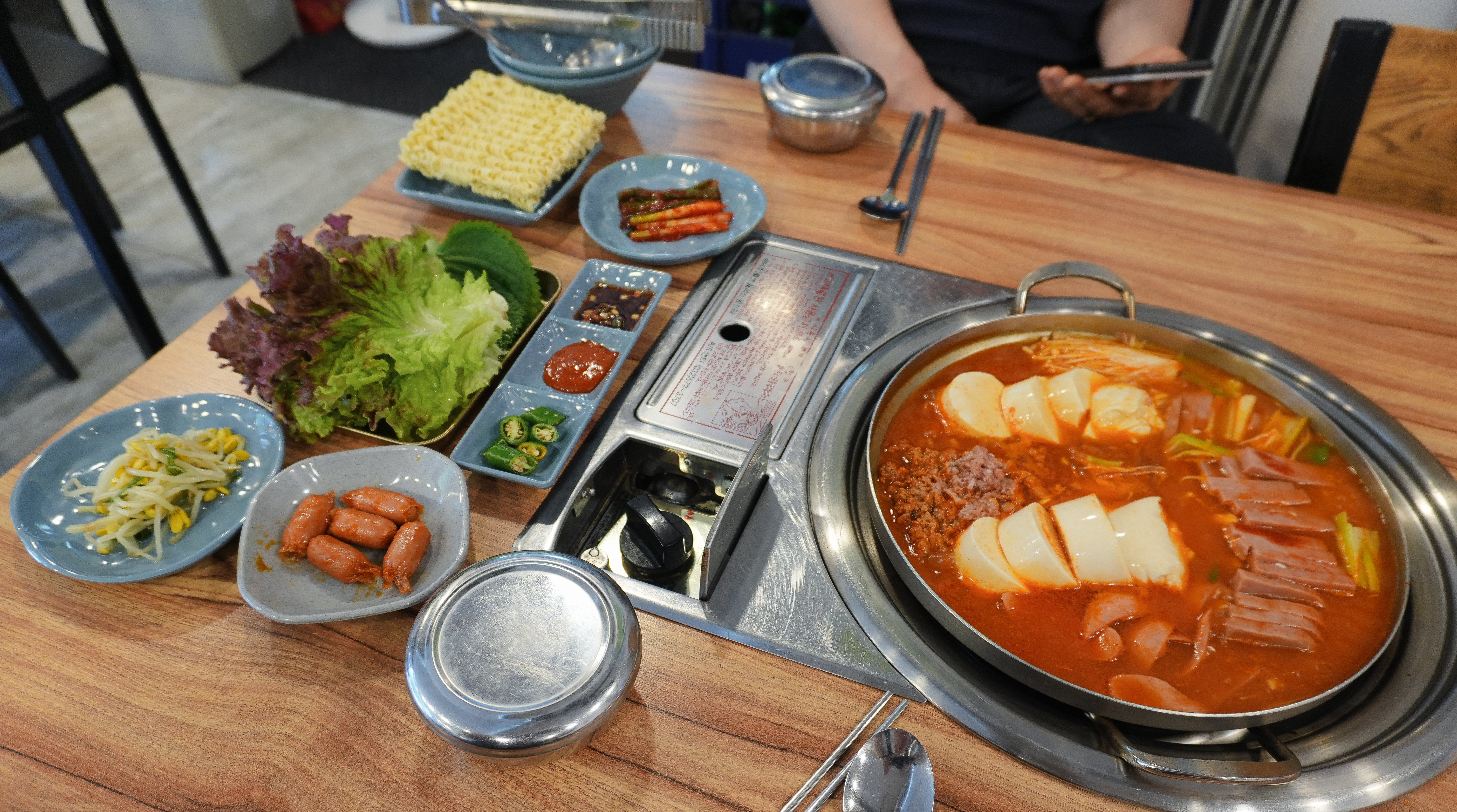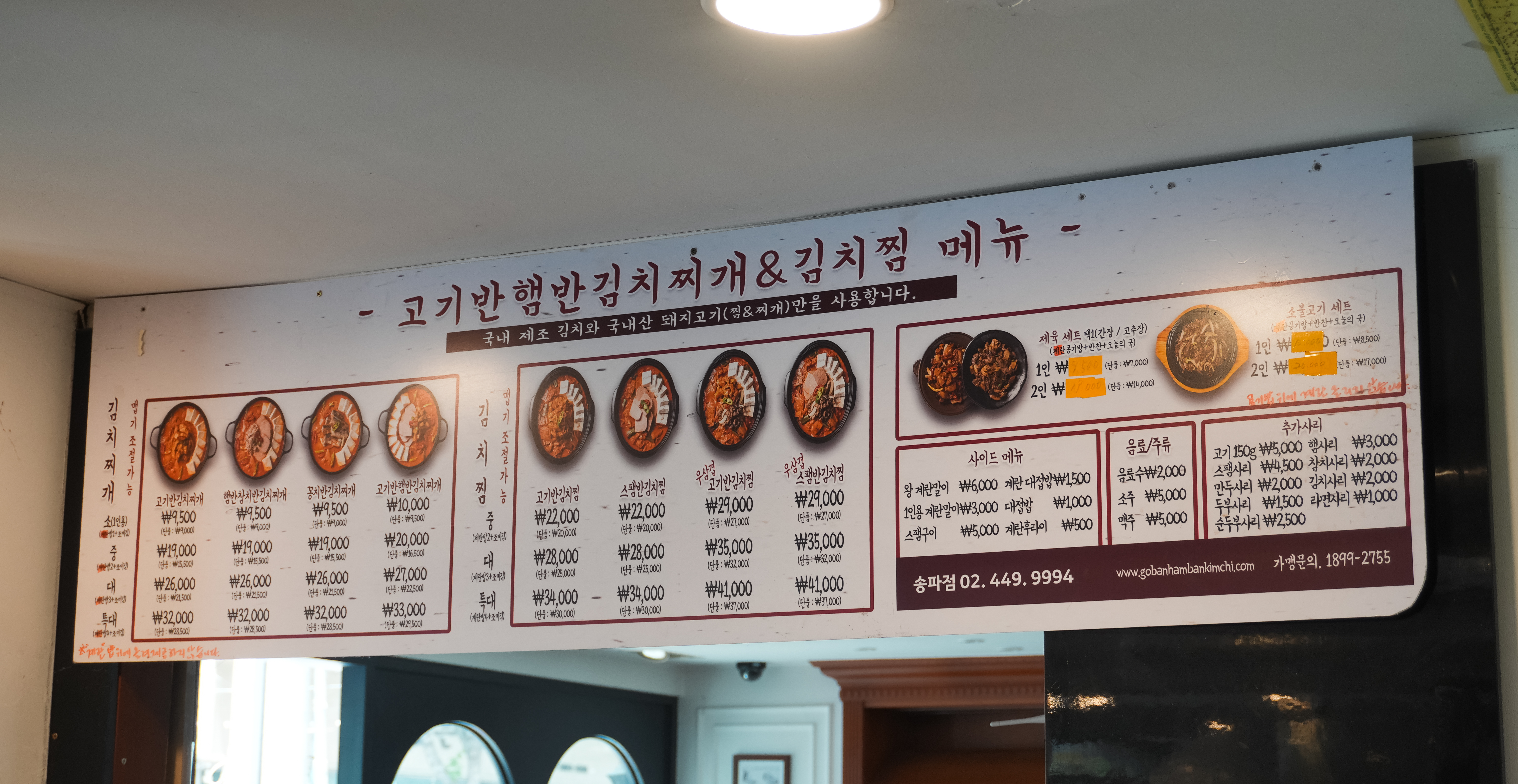메뉴판에도 송탄부대찌개와 고기반햄반김치찌개&김치찜 두 가지가 있어서 한 번에 메뉴를 고르기가 쉽지는 않았습니다. 저희는 부대찌개 2인분에 햄사리를 추가했고, 소불고기세트를 하나 추가했습니다.