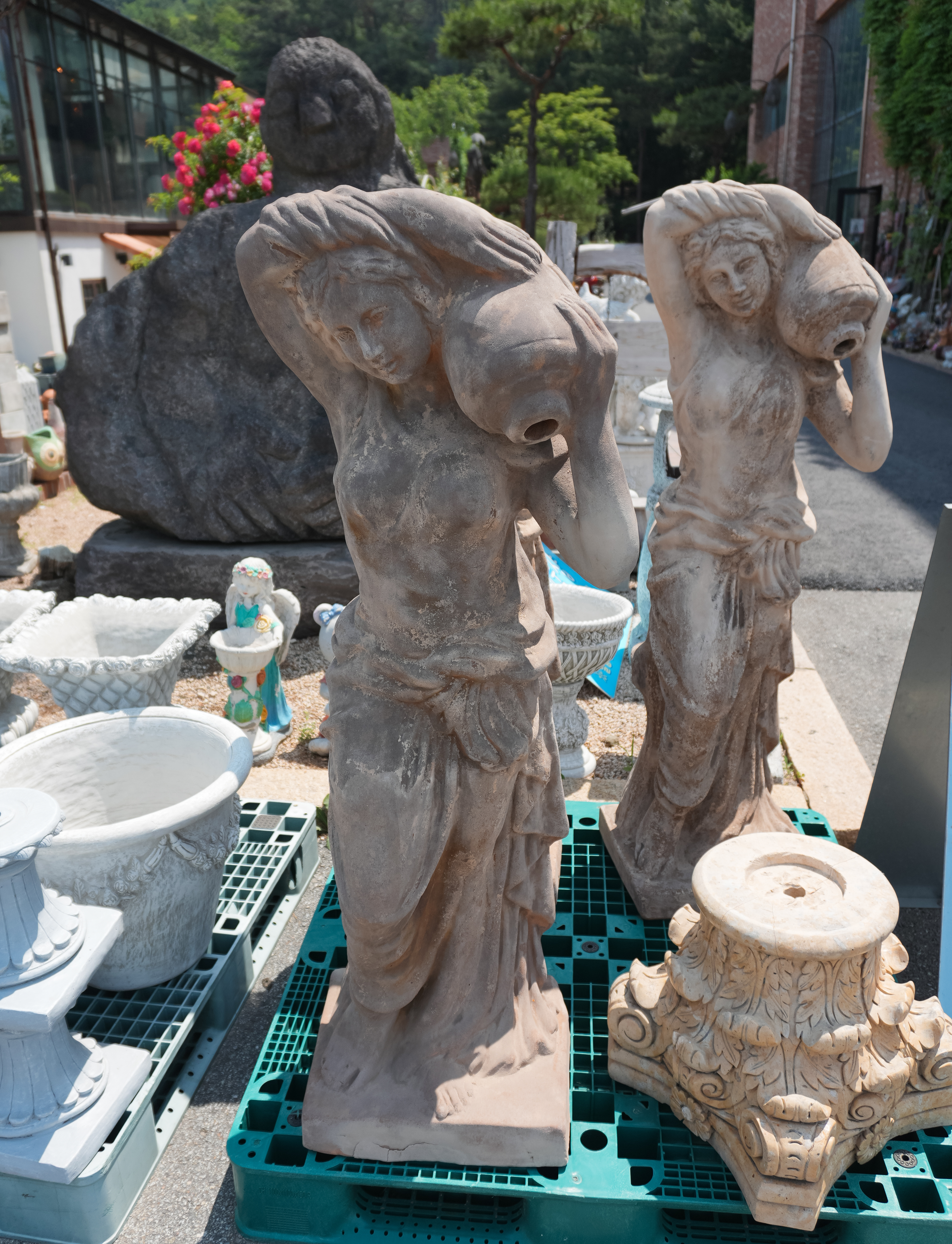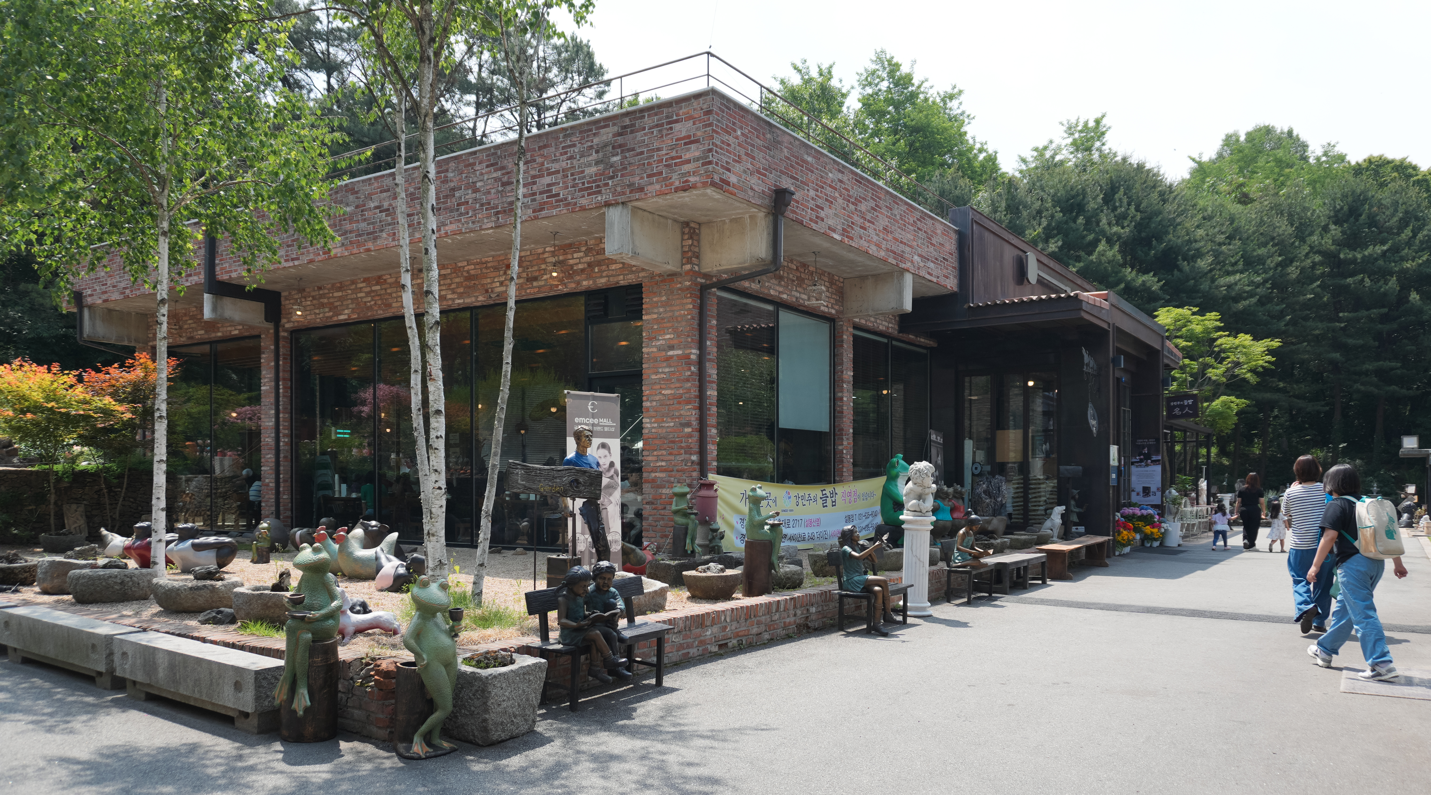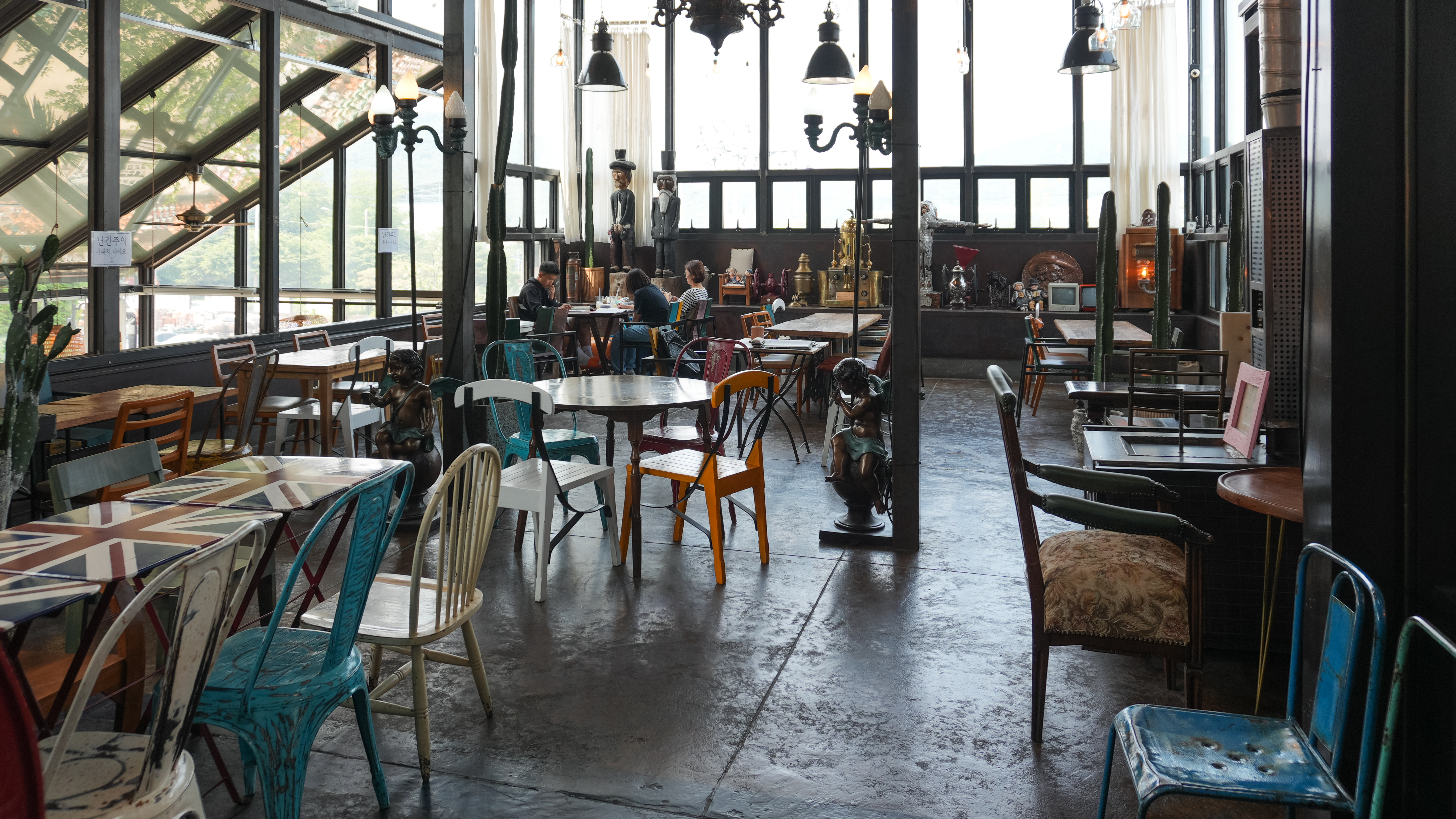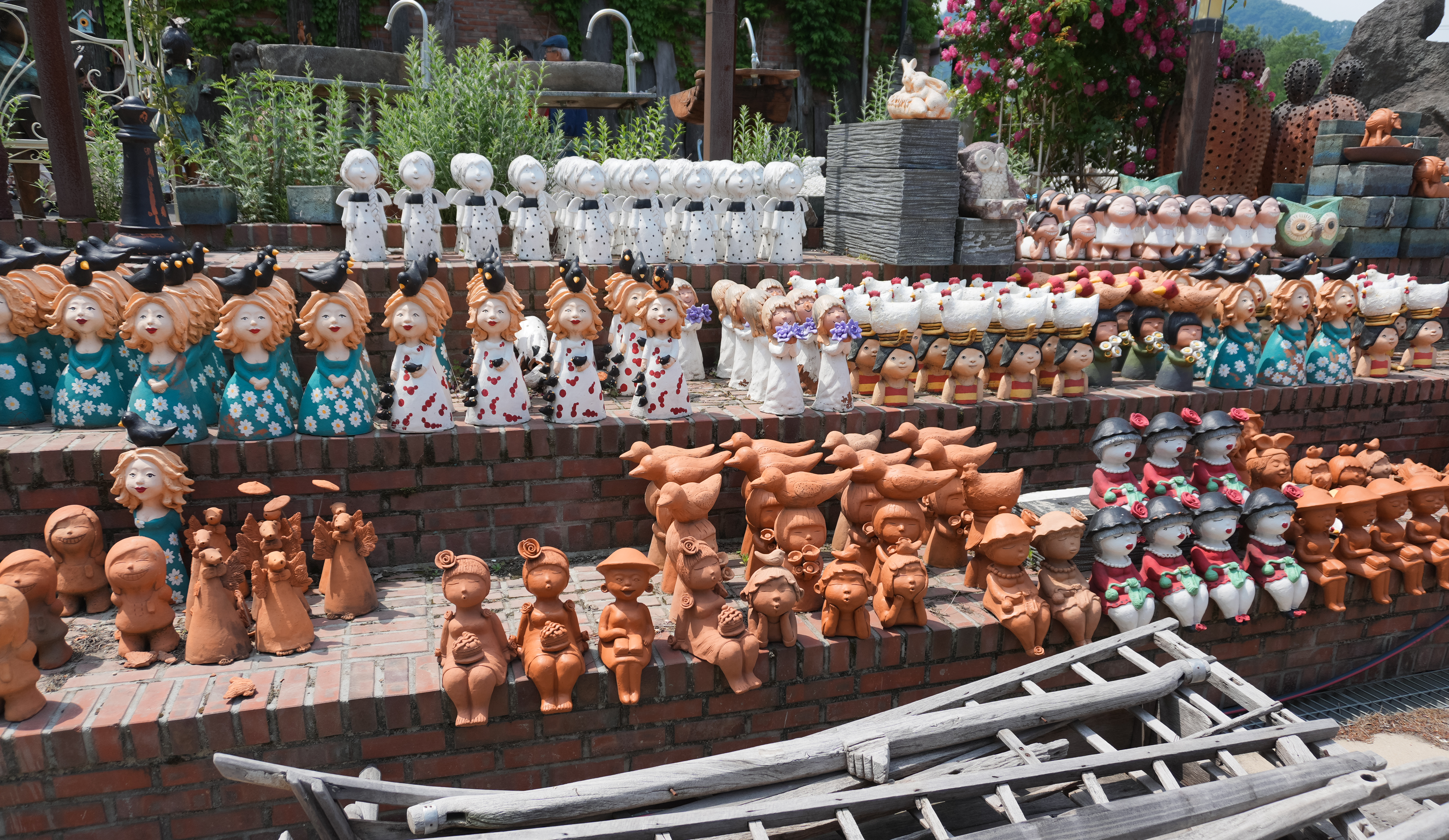 이진상회 카페 외부에는 각종 도자기들과 전시물이 있었습니다. 가게는 전체적으로 녹이 슨듯한 철판을 이용해 황갈색톤을 하고 있었습니다. 가게 곳곳에 놓인 토기들도 마침 비슷한 색상이라 톤앤매너가 잘 어울린다고 볼 수 있었죠. 특히 곳곳에 있는 토기들은 정원 가꾸기 좋아하시는 분들이 좋아할 만한 아이템들로 가득했습니다.