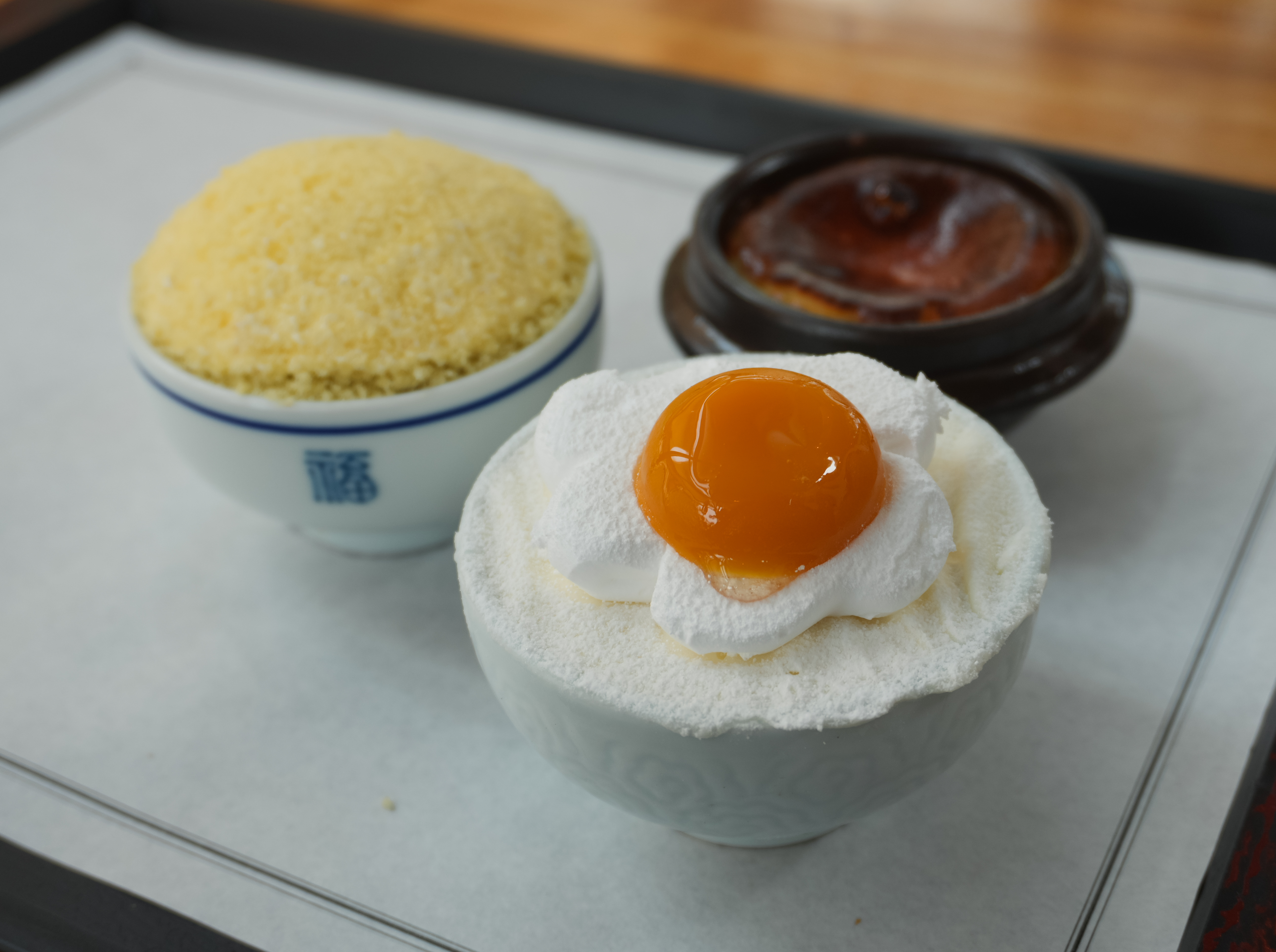 제품의 디테일을 살펴보시면, 위에서부터 계란프라이, 순쌀밥한공기, 더이진 가마솥 옹기 순쌀 꽃피는 크림치즈입니다. 계란프라이와 순쌀밥한공기는 케이크였고, 더이진가마솥옹기순쌀꽃피는크림치즈는 바스크치즈케이크였습니다.