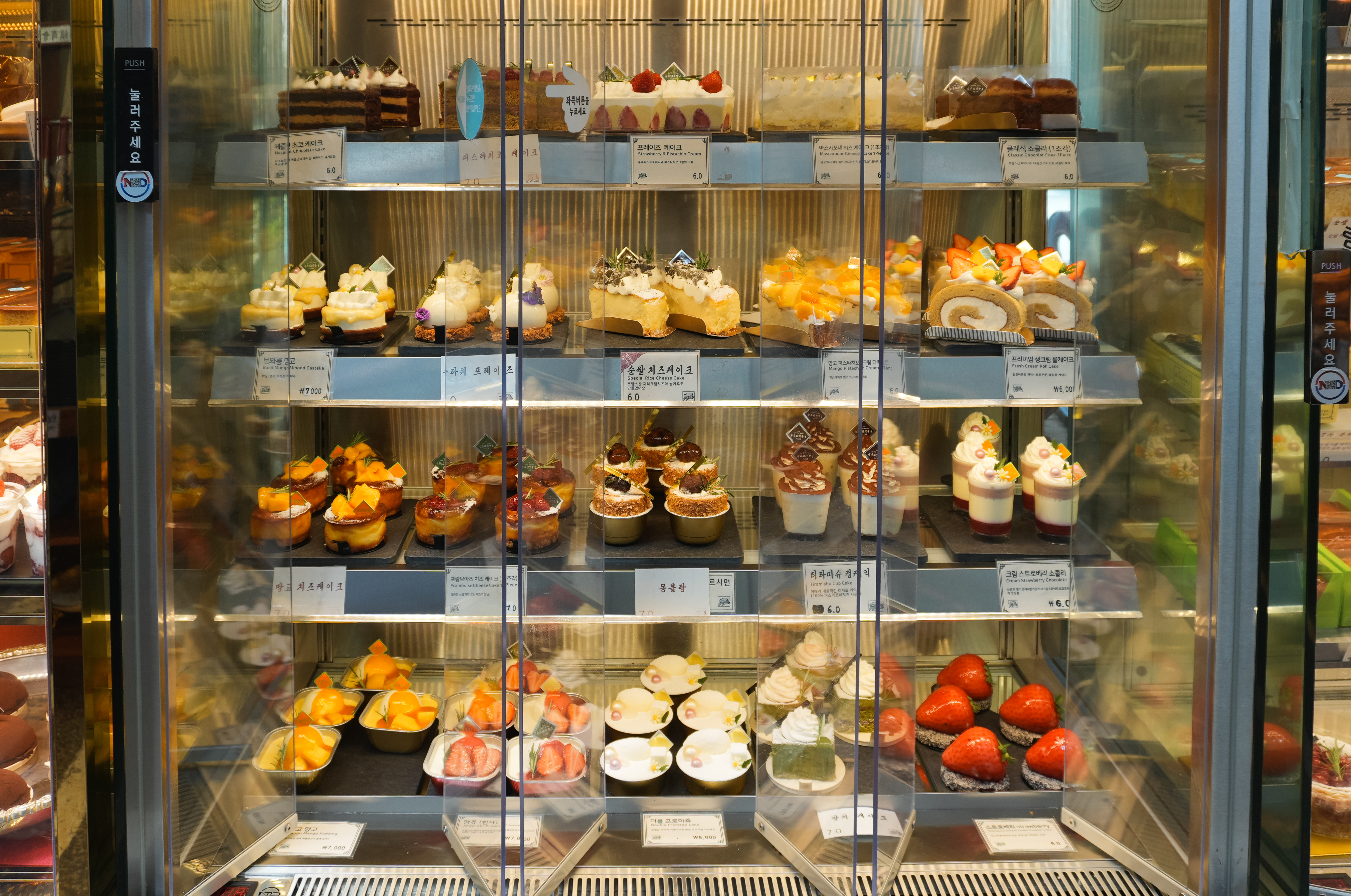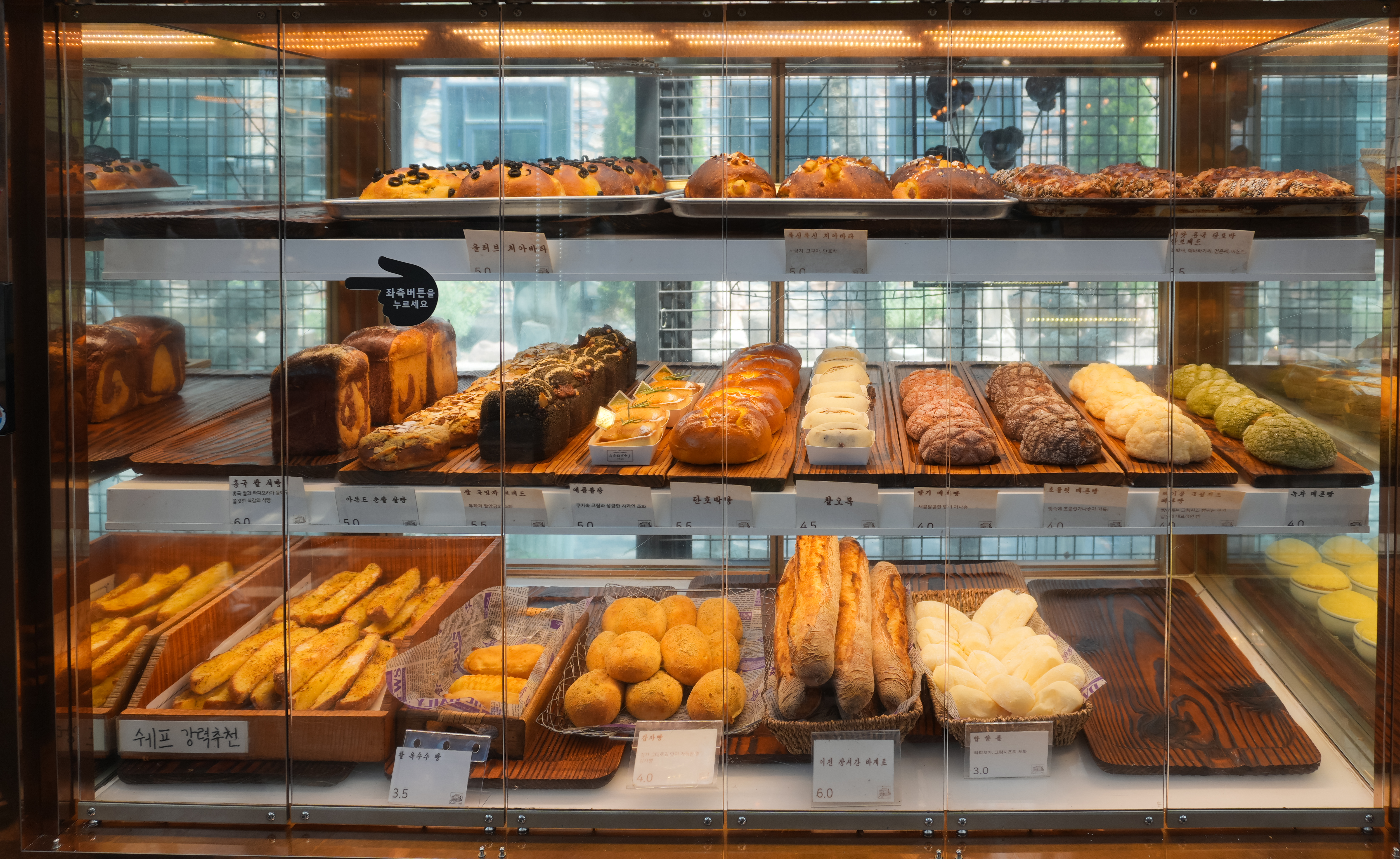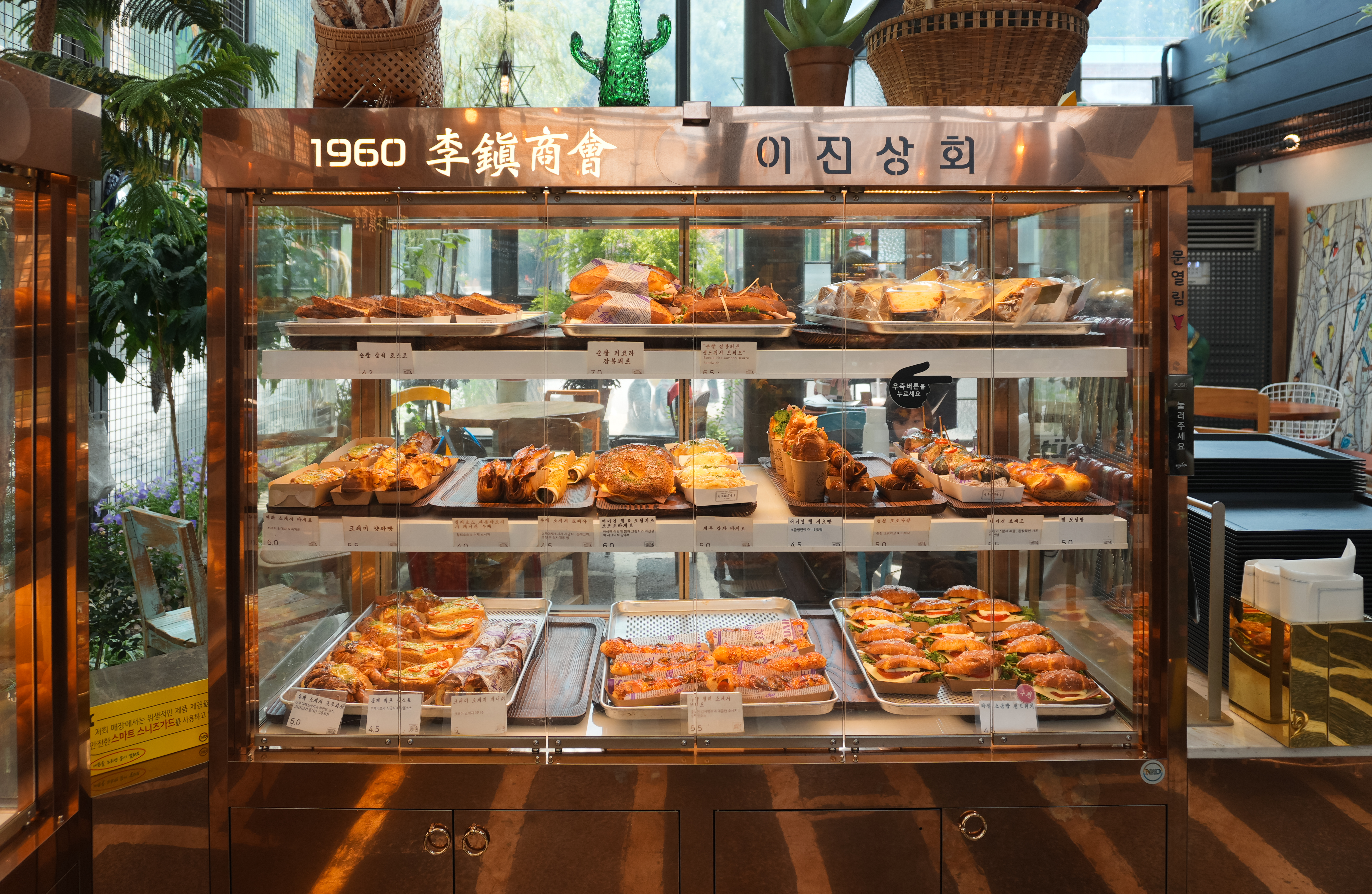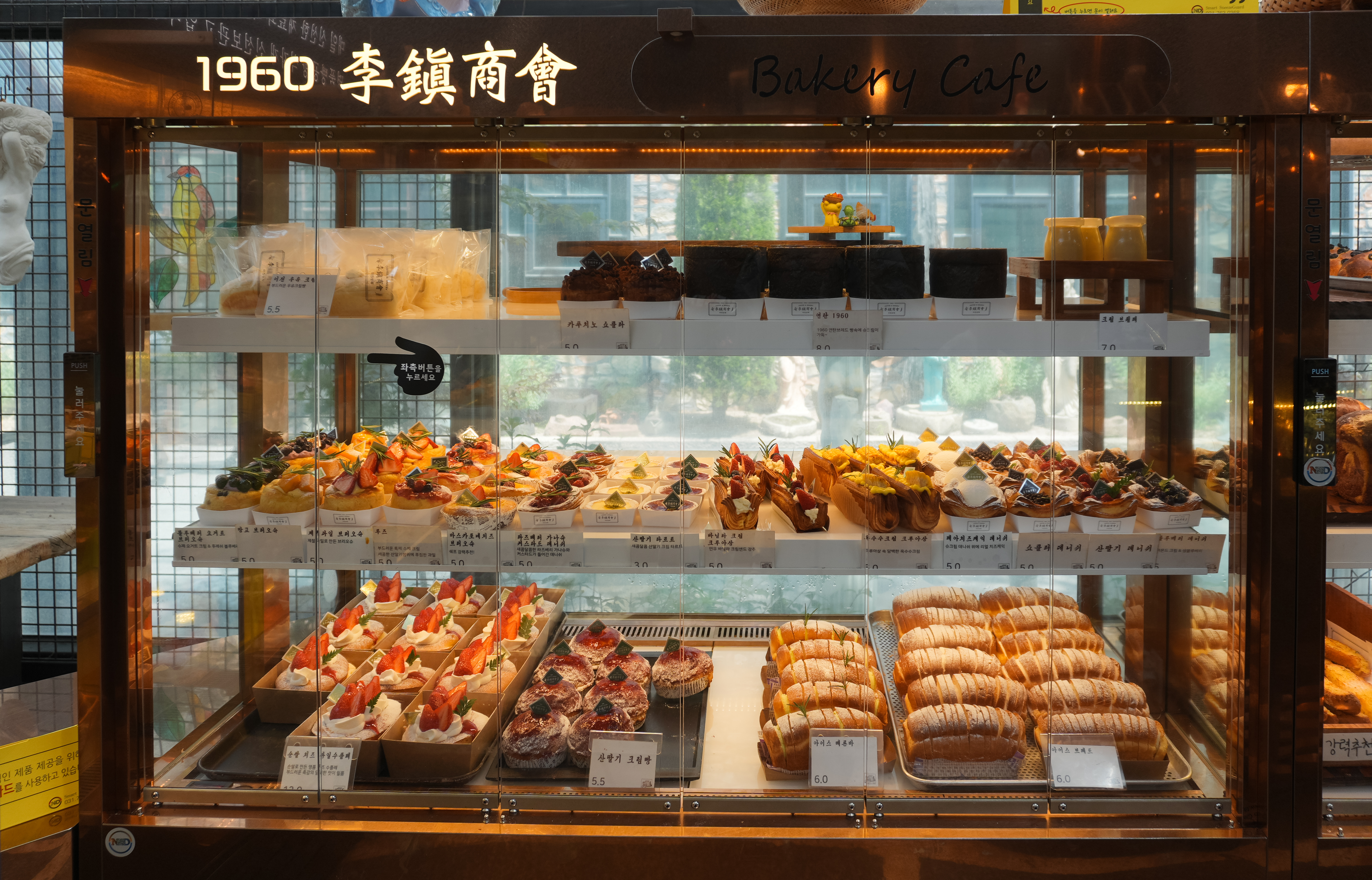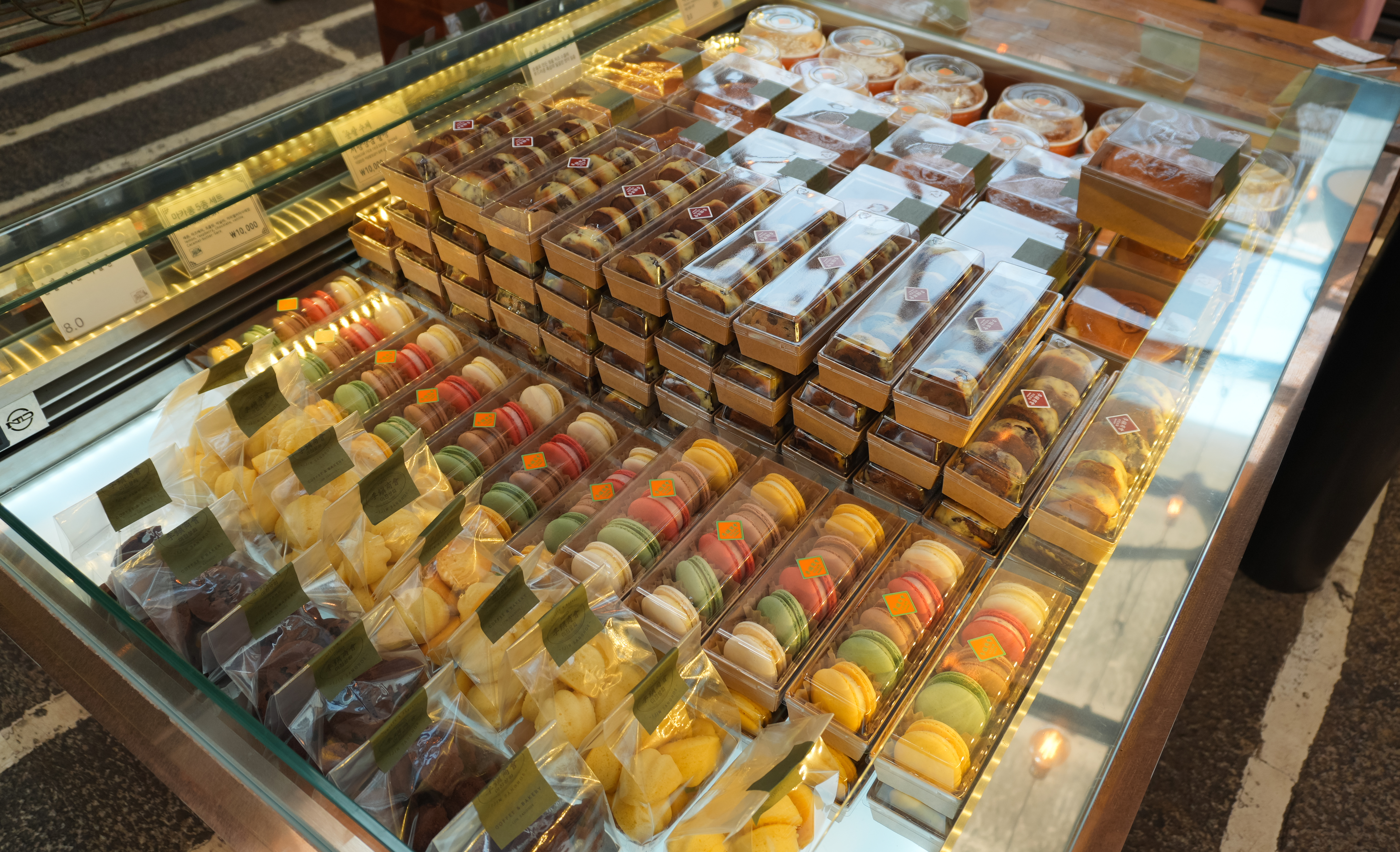 이진상회의 빵 종류는 일반적인 샌드위치부터 케이크, 디저트, 식빵, 마카롱, 까눌레, 메론빵, 브리오슈, 바게트 등 종류도 다양하고 이쁘고 먹음직스러워 보이는 메뉴가 많았습니다. 가격대도 터무니없이 비싼 것은 아니라 한두 개 정도 곁들이면 괜찮을 것 같더라고요. 그런데, 무심코 이것저것 골라 담다 보면 어느새 디저트 가격이 밥값을 넘어가는 상황이 발생할 수 있으니 집중하자고요.