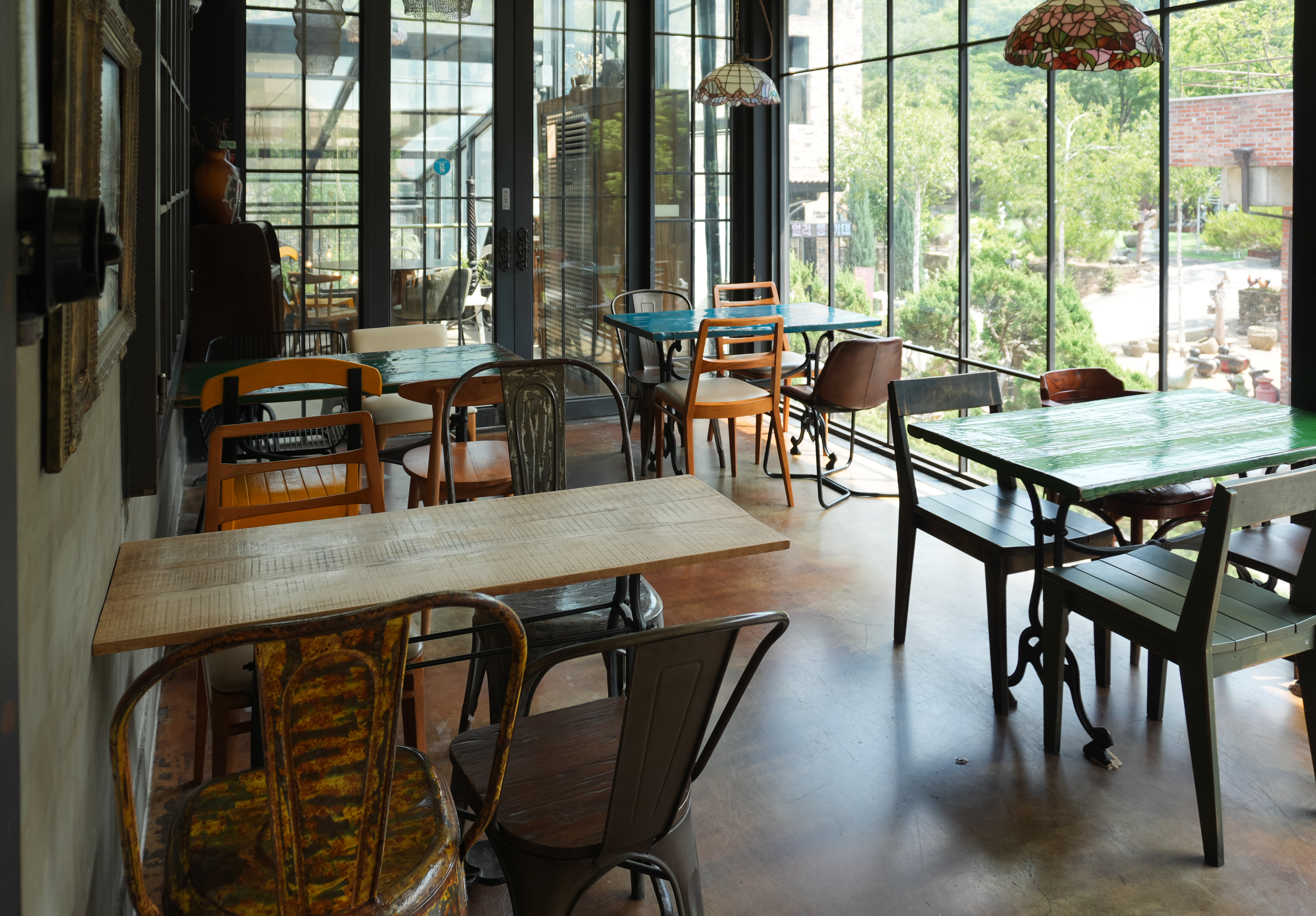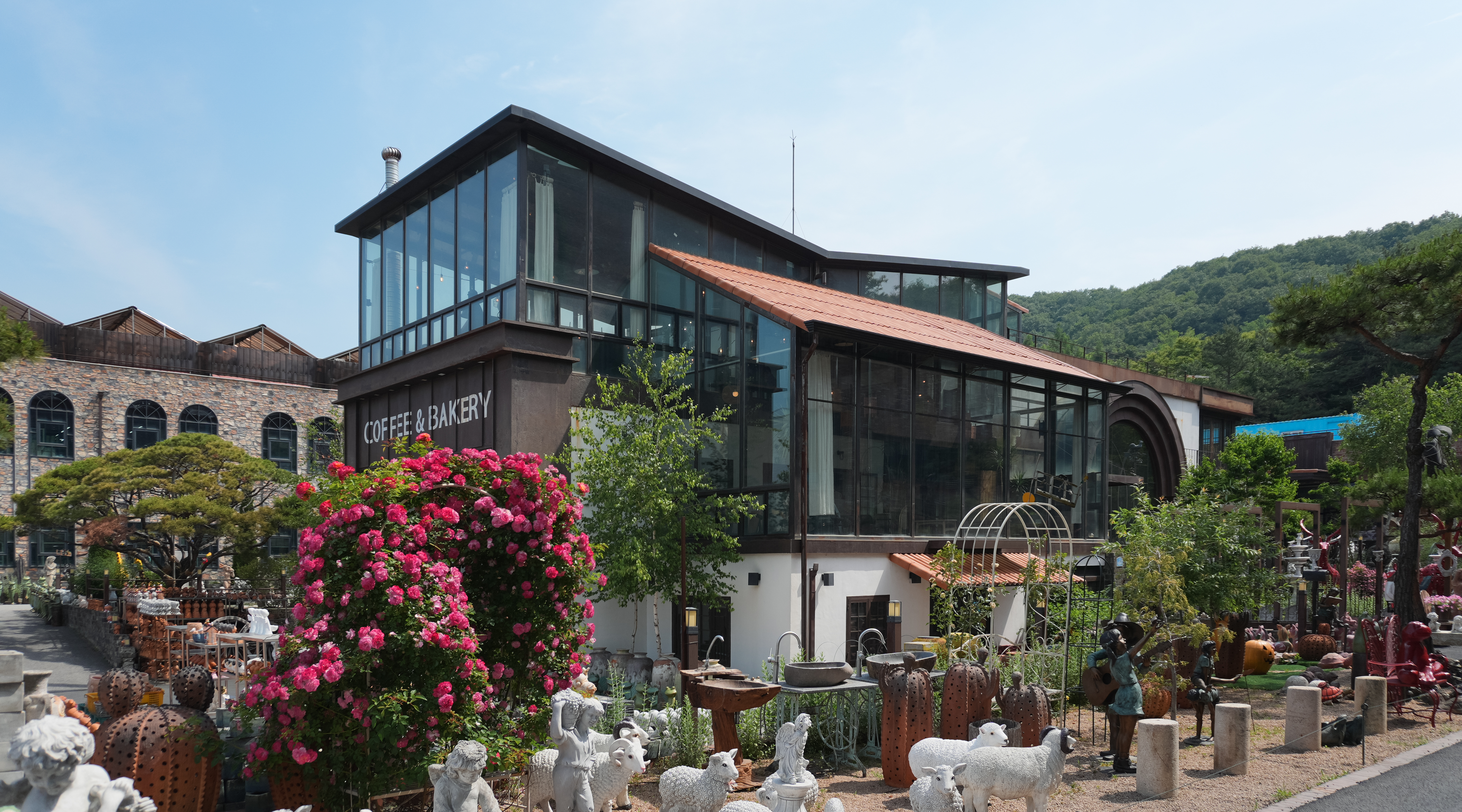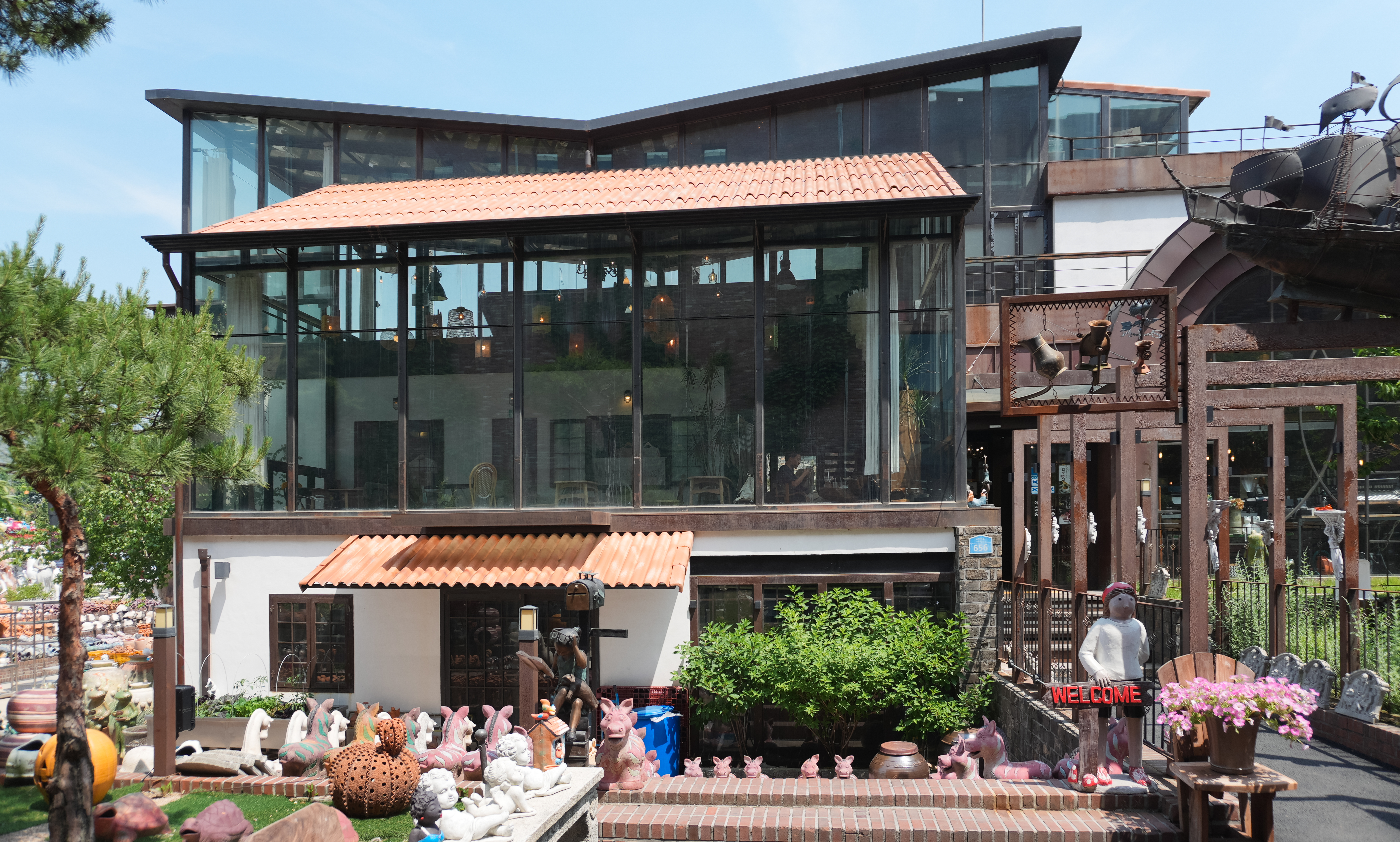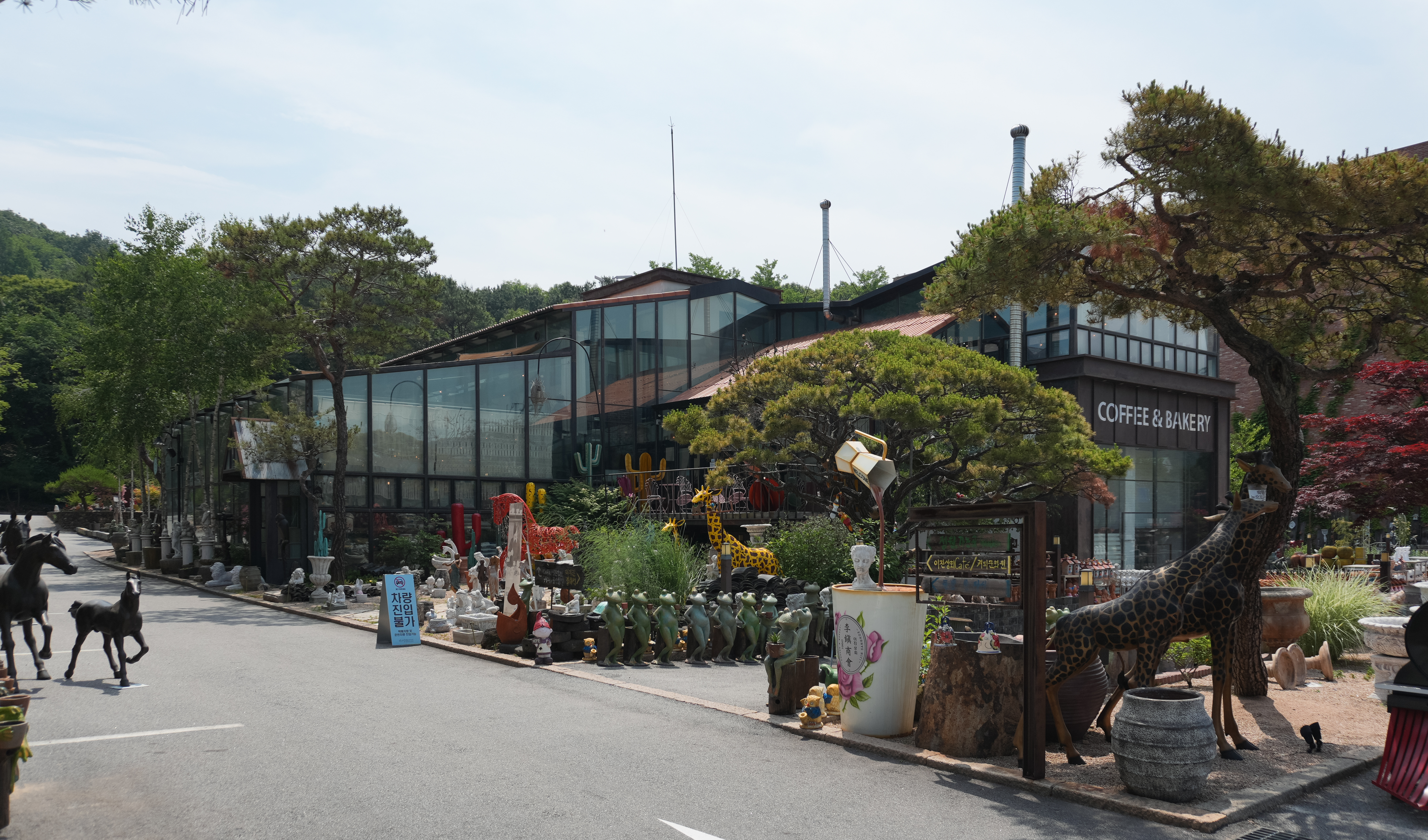 이진상회 카페 외부에는 각종 도자기들과 전시물이 있었습니다. 가게는 전체적으로 녹이 슨듯한 철판을 이용해 황갈색톤을 하고 있었습니다. 가게 곳곳에 놓인 토기들도 마침 비슷한 색상이라 톤앤매너가 잘 어울린다고 볼 수 있었죠. 특히 곳곳에 있는 토기들은 정원 가꾸기 좋아하시는 분들이 좋아할 만한 아이템들로 가득했습니다.