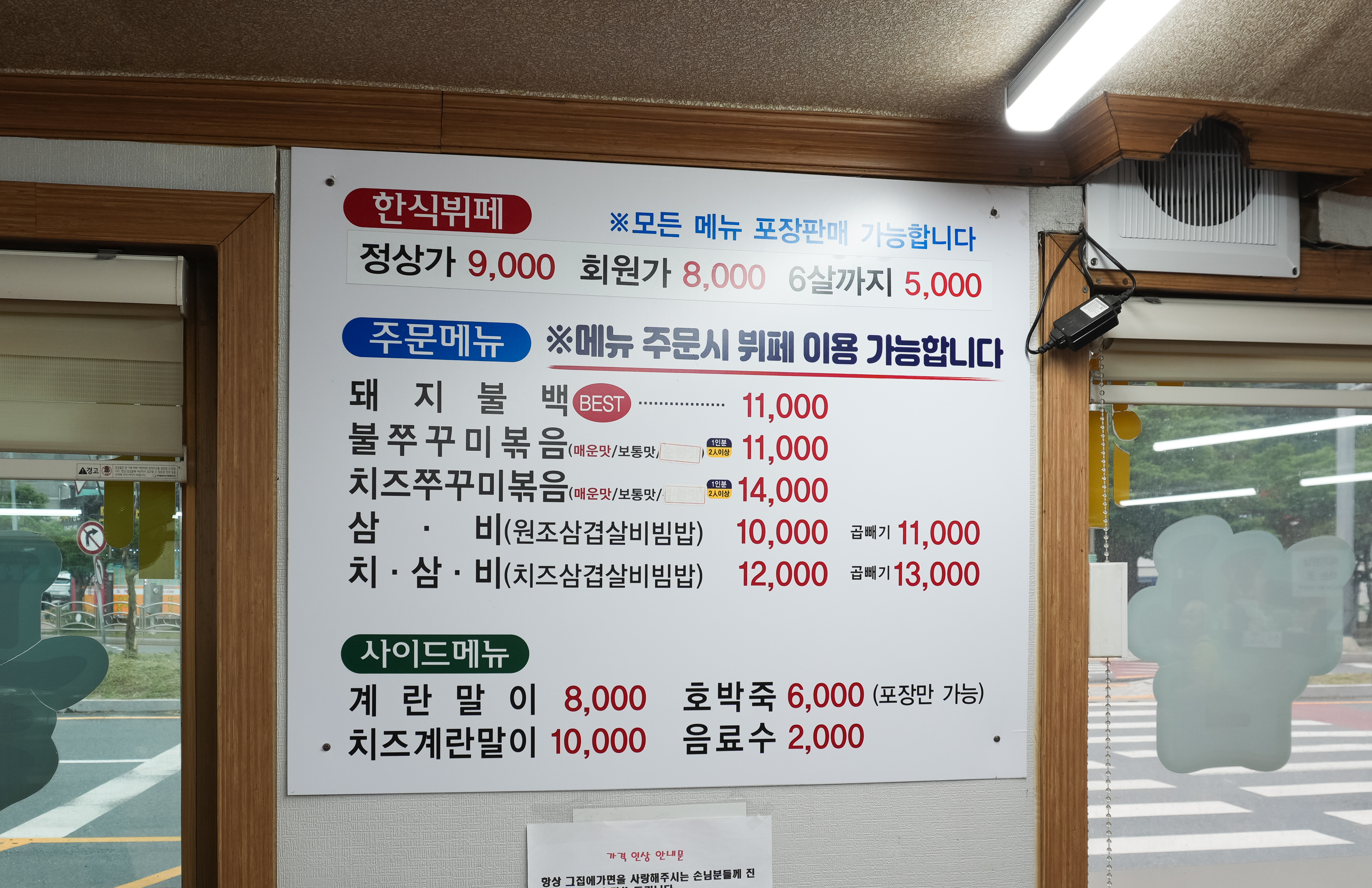 삼겹살비빔밥은 살짝 고추장 양념이 강하긴 했지만, 콩나물, 파채, 깻잎 등이 삼겹살과도 잘 어울리고 맛도 생각보단 괜찮아서 먹을만하더라고요. 사실 이 그집에가면은 불쭈꾸미볶음이 맛있다고 알려져 있더라고요. 나중에 가게 되면 불쭈꾸미볶음도 먹어봐야겠습니다.