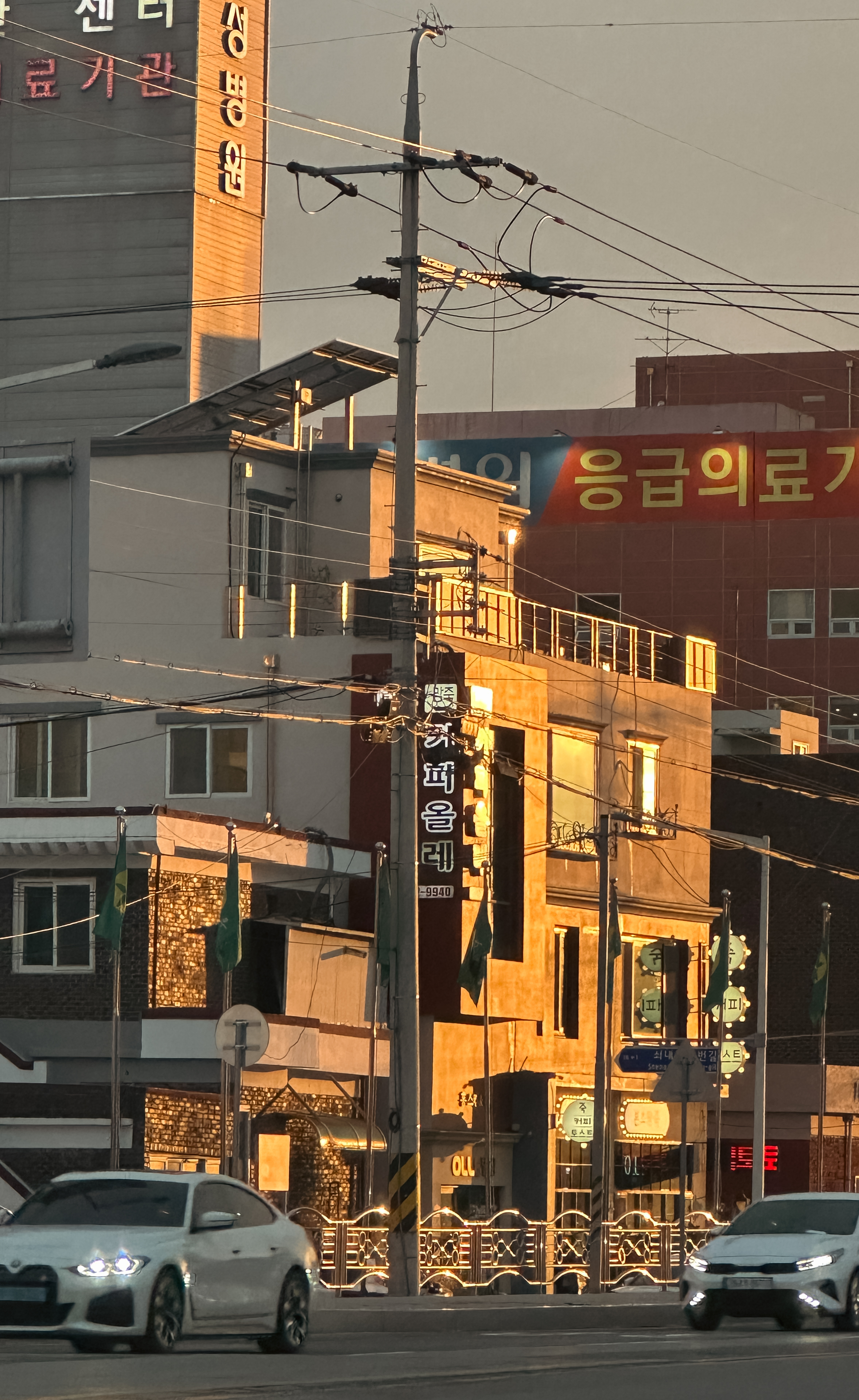 원조 삼겹살비빔밥이 유명한 청주 그집에가면에서 삼겹살비빔밥을 먹었더니, 공짜로 한식뷔페까지 이용할 수 있어서 비빔밥도 먹고 한식뷔페도 이용하고 배부른 하루였습니다. 식사를 하고 나오는데 해가 뉘엿뉘엿 넘어가려고 해서인지 건물에 비친 황금빛 노을이 너무 이뻐서 한 장 찍어보았습니다. 저는 이색 식사를 소개해드리기 위해 삼겹살 비빔밥을 먹었는데, 기본적인 메뉴인 불쭈꾸미볶음 같은 메뉴를 골라도 괜찮을 것 같다고 생각이 들었습니다.