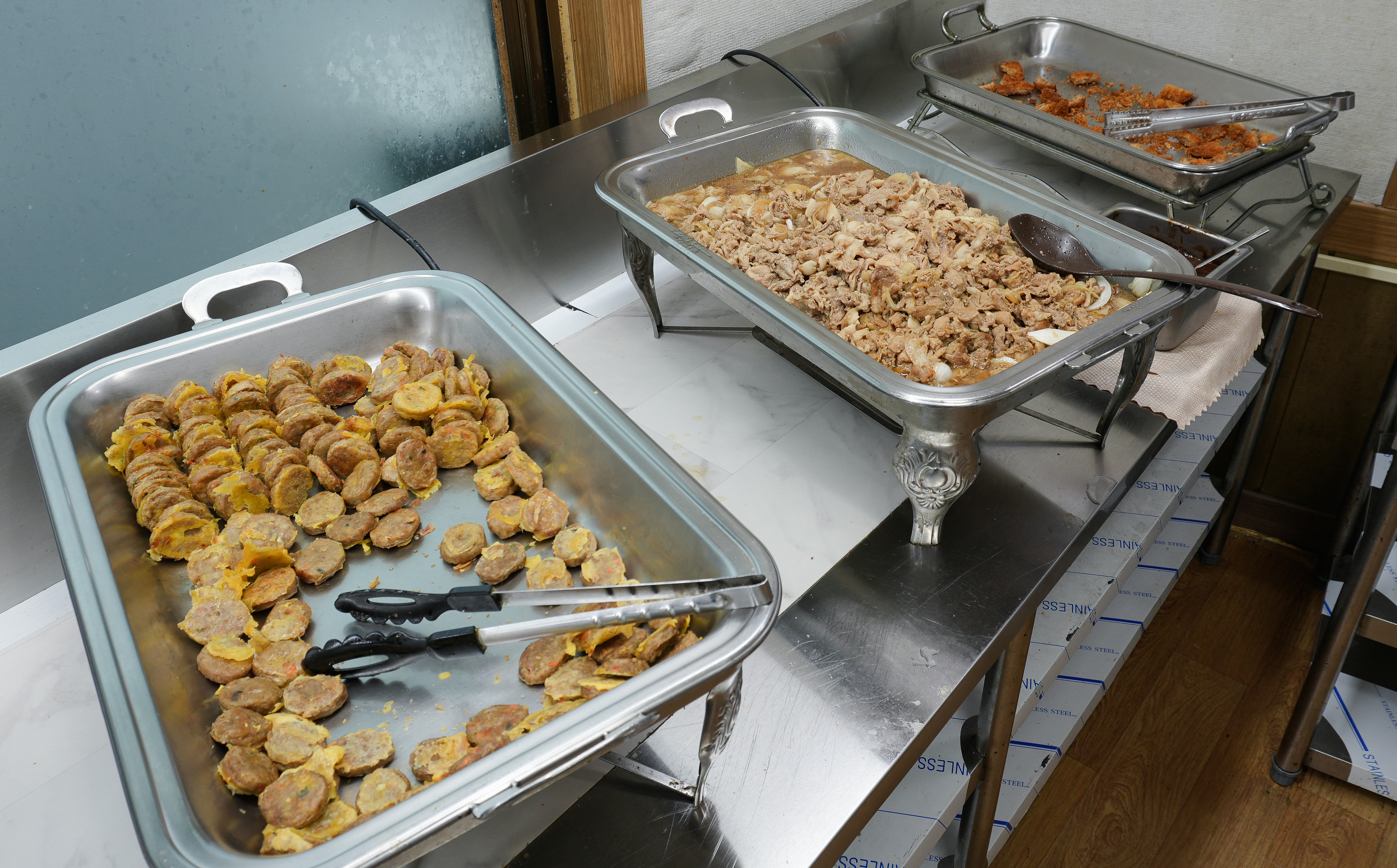 제가 원하는 메뉴의 반찬을 담아왔습니다. 사실, 이 날 할머니가 만들어주는 햄버거집인 킹스햄버거(링크)에 다녀왔던 터라, 배가 많이 고프지 않아서 소개할 수 있는 사진이랑 영상만 찍고 먹을 수 있을 만큼(?)만 담아왔습니다.