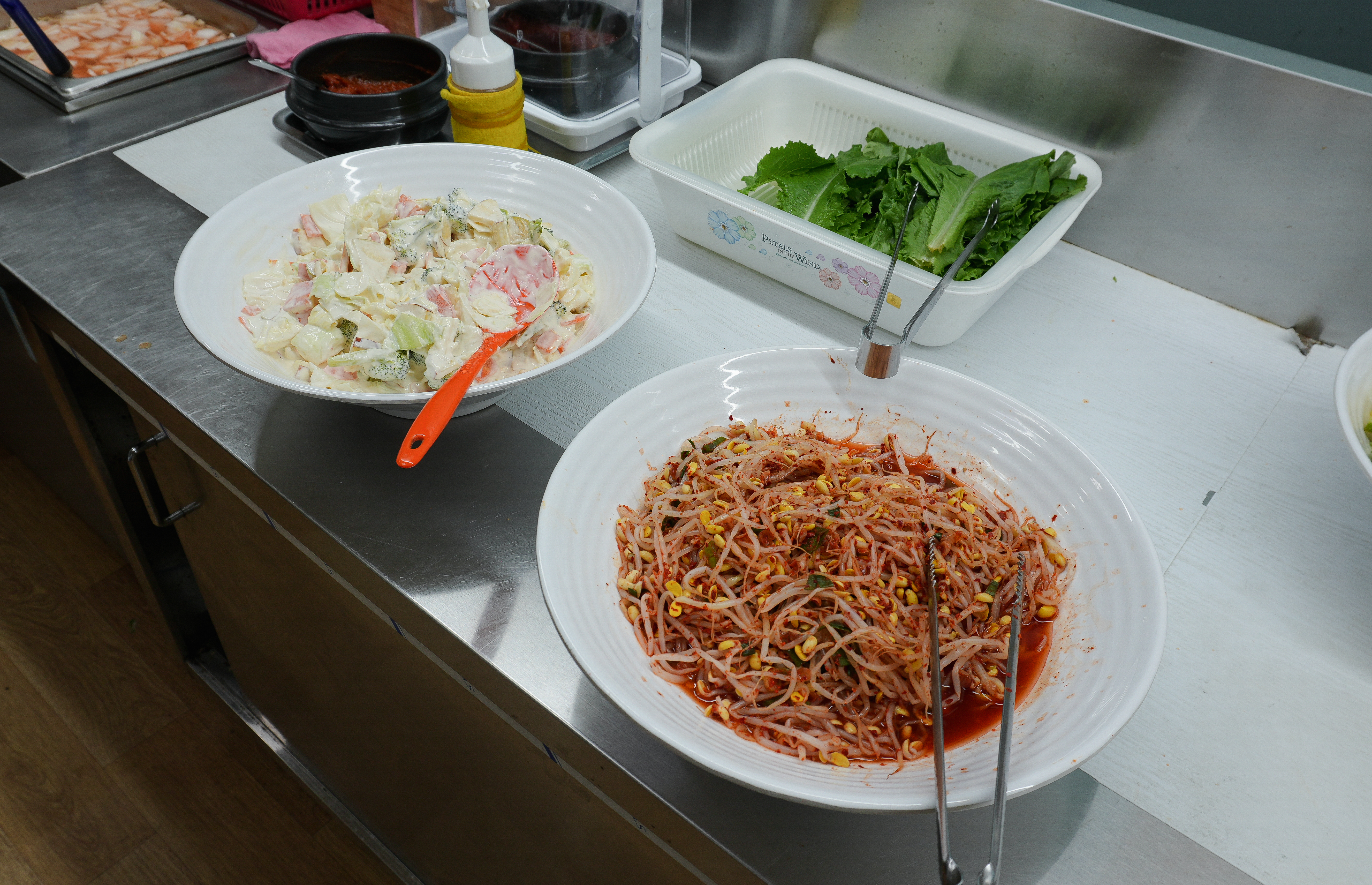 삼겹살비빔밥을 먹기 전 다녀왔던 한식뷔페의 모습인데요. 한식뷔페에는 호박죽, 카레, 불고기, 돈까스, 동그랑땡, 계란찜, 생선조림, 소시지볶음, 떡볶이, 샐러드, 나물반찬 등이 있었습니다. 나름 구성도 나쁘지 않고, 퀄리티도 괜찮아 보이더라고요.