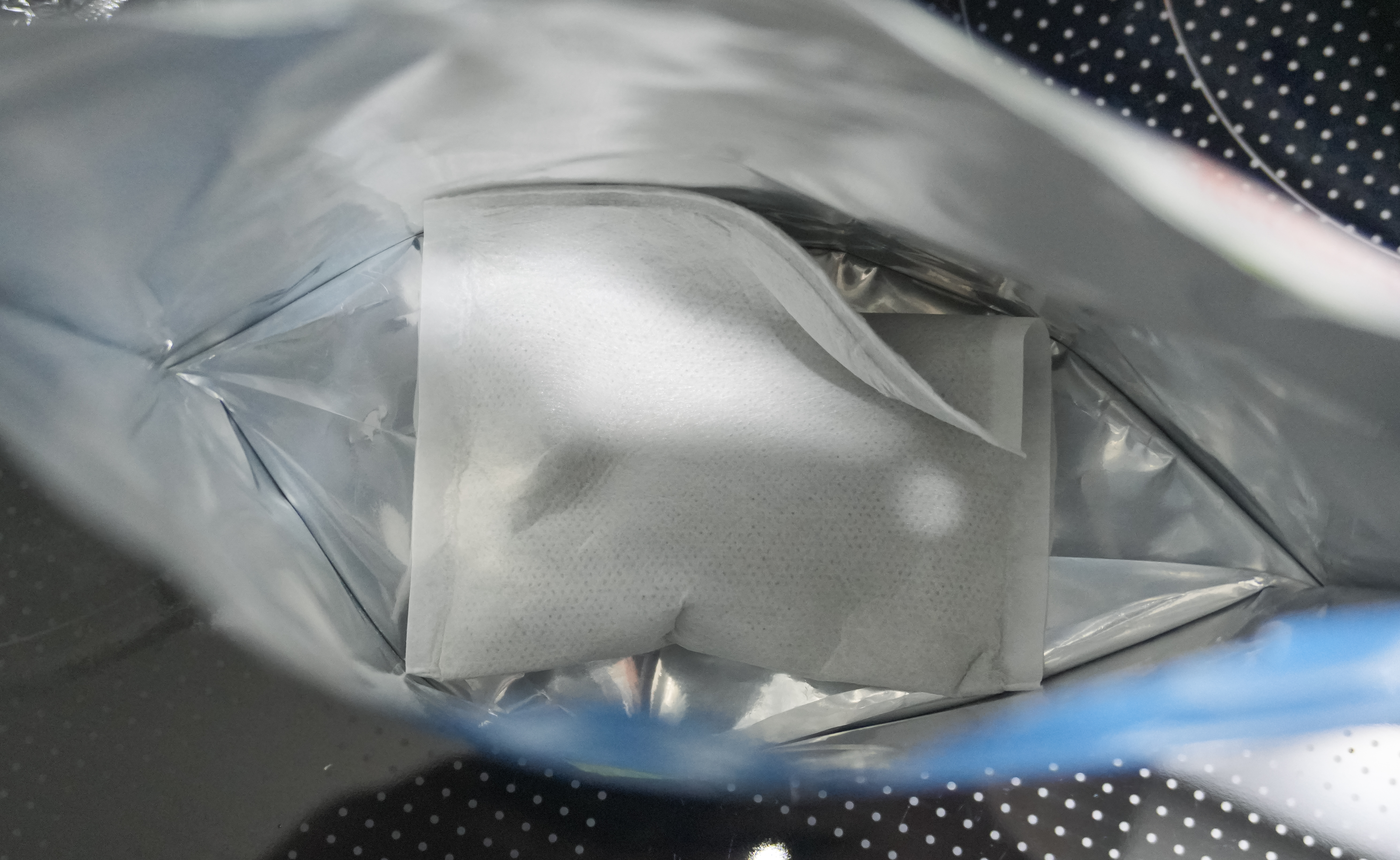 다음으로 (2)발열체봉투의 점선에 따라 봉투를 접어준 다음, 물을 채워 넣고 외포장지 안에 물을 부어준 다음, 외포장지 지퍼를 닫아주고 10분 정도 기다리면 되었습니다. 물을 붓고난 다음 약 5초 뒤에 물에 반응하여 끓기 시작하니까 뜨거워지기 전에 외포장지 지퍼를 닫는 것이 중요합니다. 약 10분 정도 봉투 내부에서 물 끓는 소리와 함께 스팀이 많이 나옵니다. 이때 스팀에 화상 입지 않도록 조심해야 합니다.