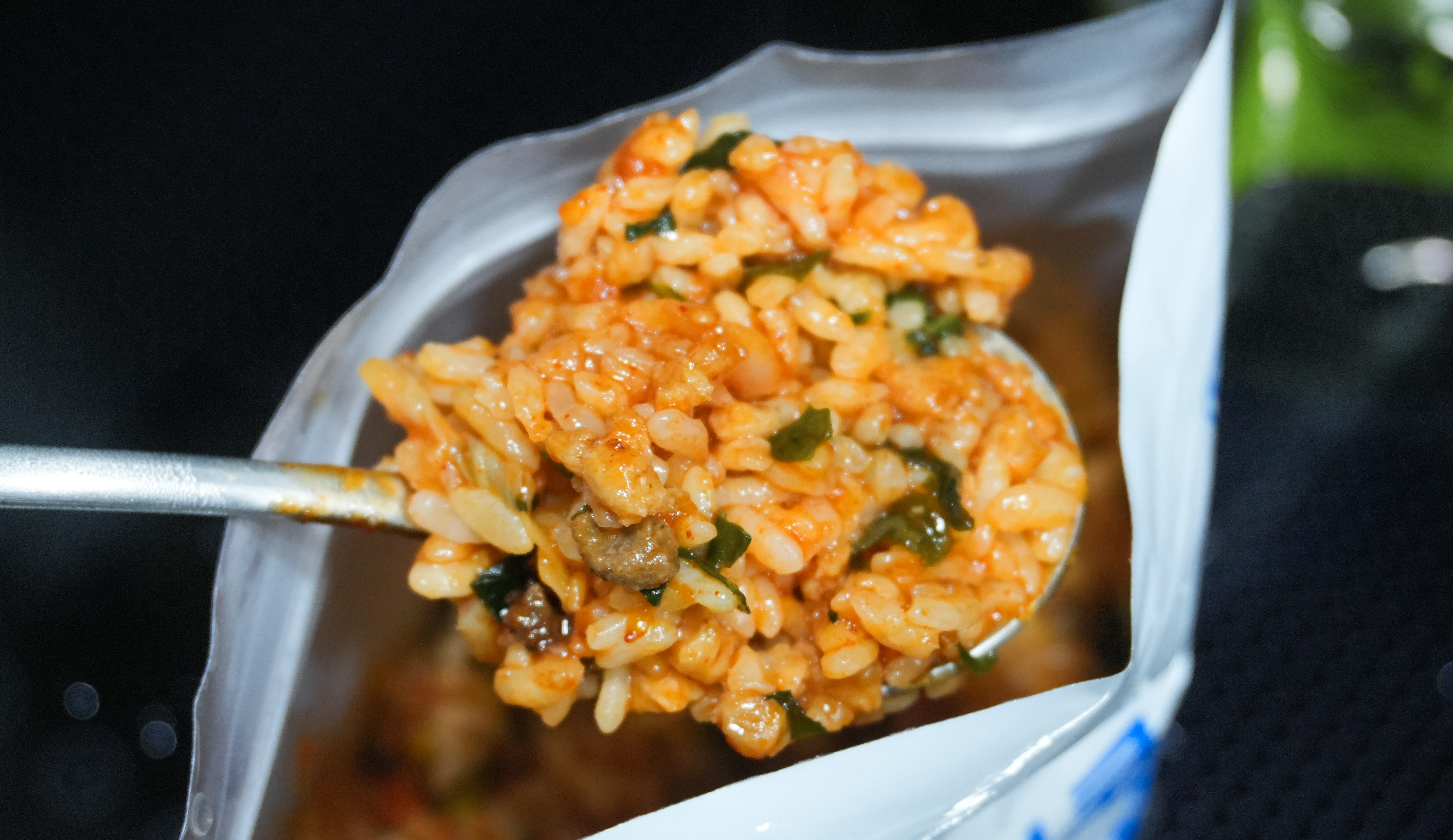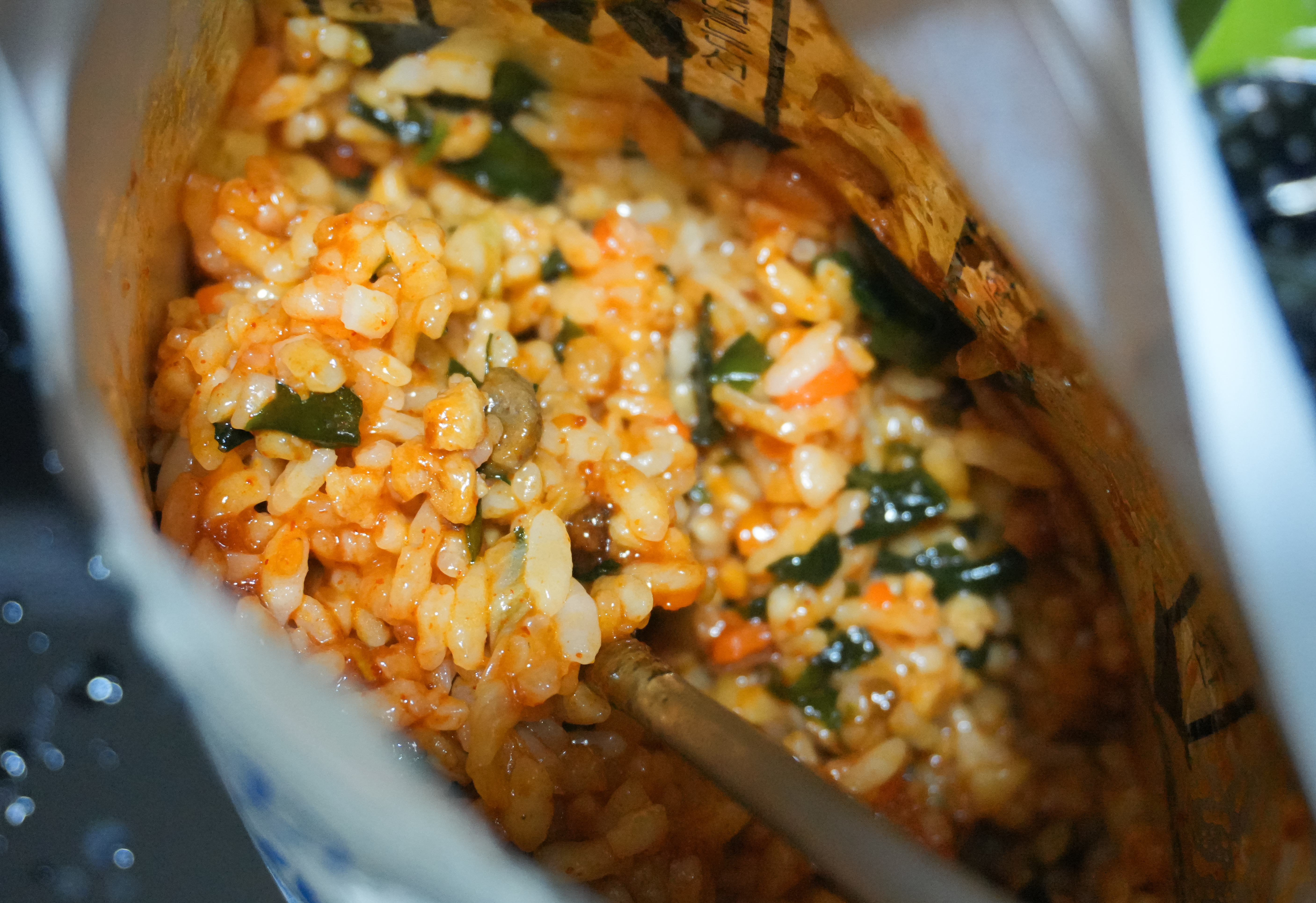 다 익은 밥의 모습입니다. 비빔장과 참기름을 넣어주고 잘 섞어서 먹으면 되었습니다. 제법 비빔밥의 향이 괜찮았고, 맛도 그럭저럭 먹을만했습니다. 저번에 라면애밥도 괜찮았는데, 저는 개인적으로 쇠고기비빔밥이 더 나았다고 느꼈습니다.