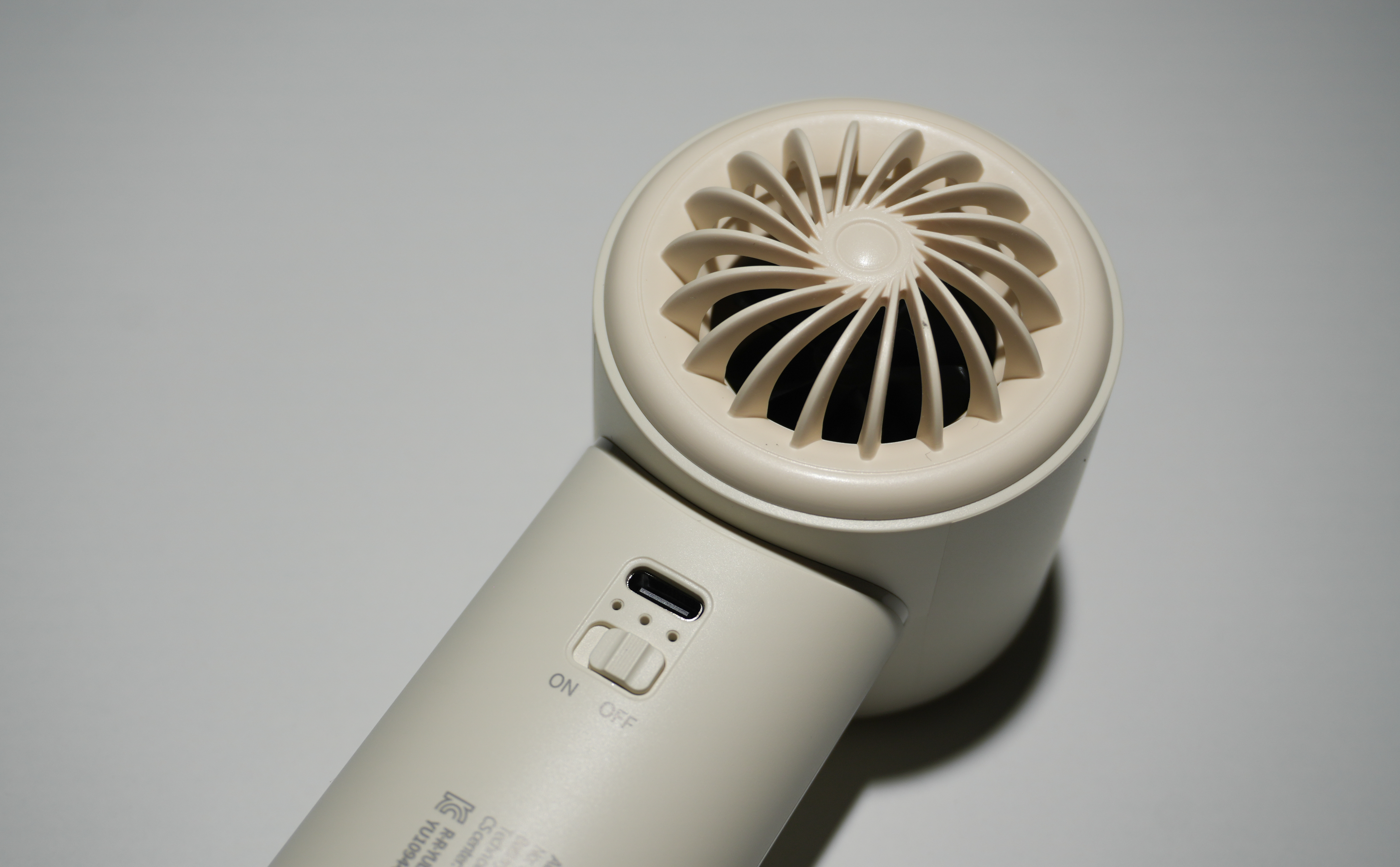 팬의 전면부는 냉각패드가 달려 있었고, 전원 스위치는 본체 뒷면에 ON/OFF 로 메인 전원을 켜고 끌 수 있도록 되어있었고, 뒷면의 스위치를 ON으로 바꾸고 전면의 FAN, ❄︎ 모양의 스위치를 통해 바람의 세기와 냉각패드 사용을 조절할 수 있었습니다. 선풍기 입구가 작아서 그런지 바람은 세고 좋은데, 대신에 선풍기 팬이 돌아가는 소음이 발생했습니다. 막 엄청 신경 쓰일 정도는 아니었지만, 조용한 환경에서는 사용할 때 눈치 보일 수도 있겠다는 생각이 들더라고요.