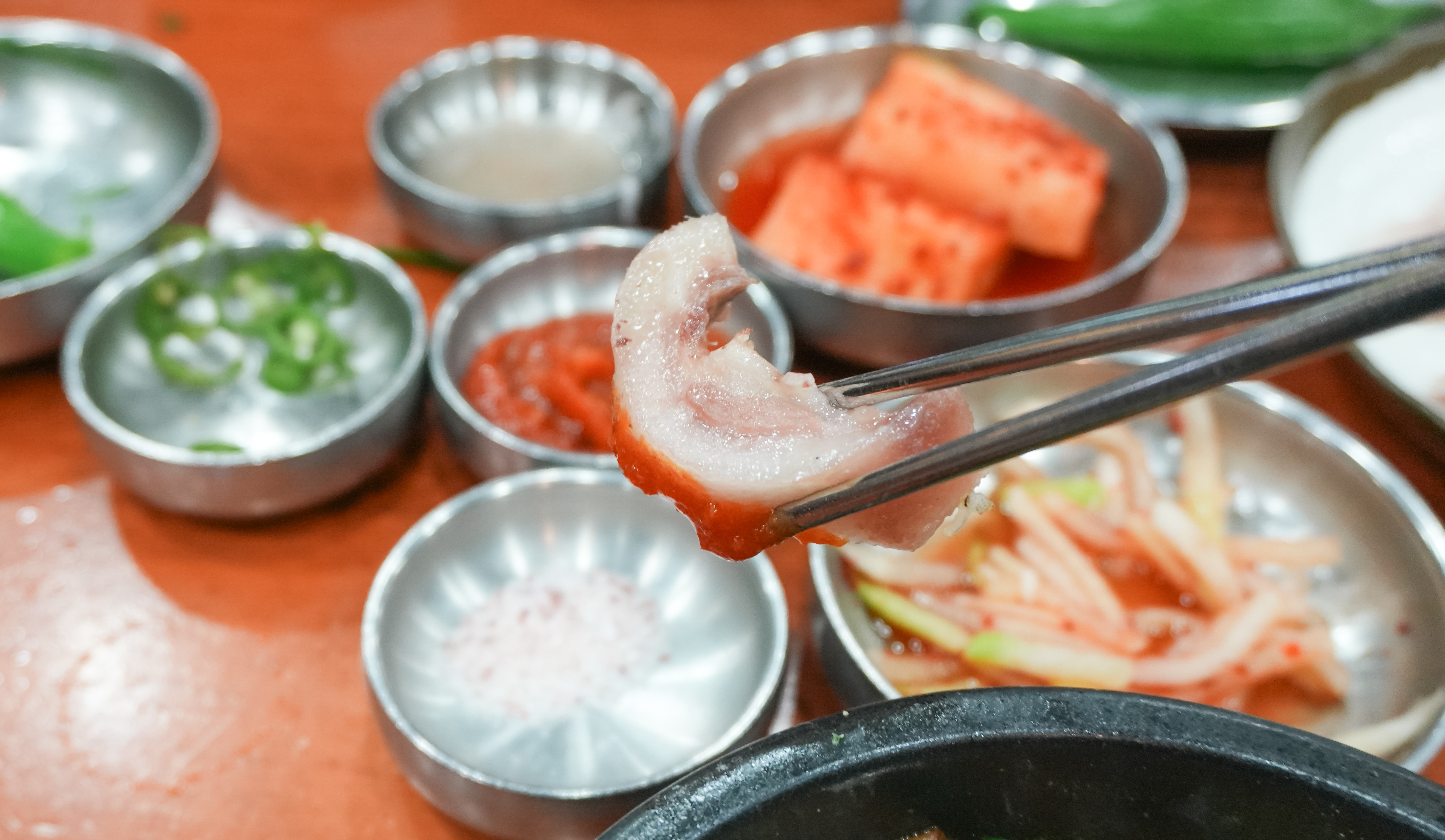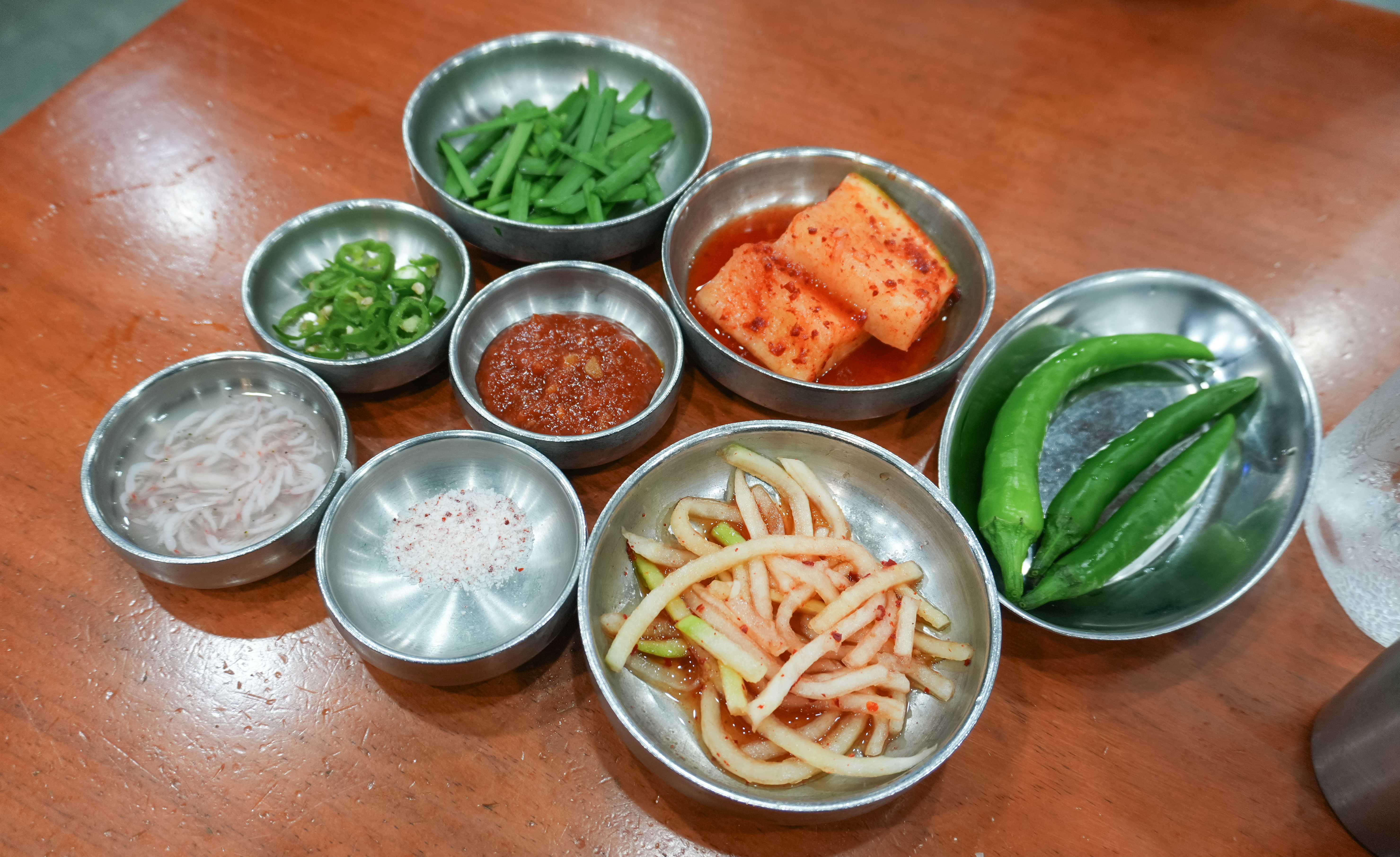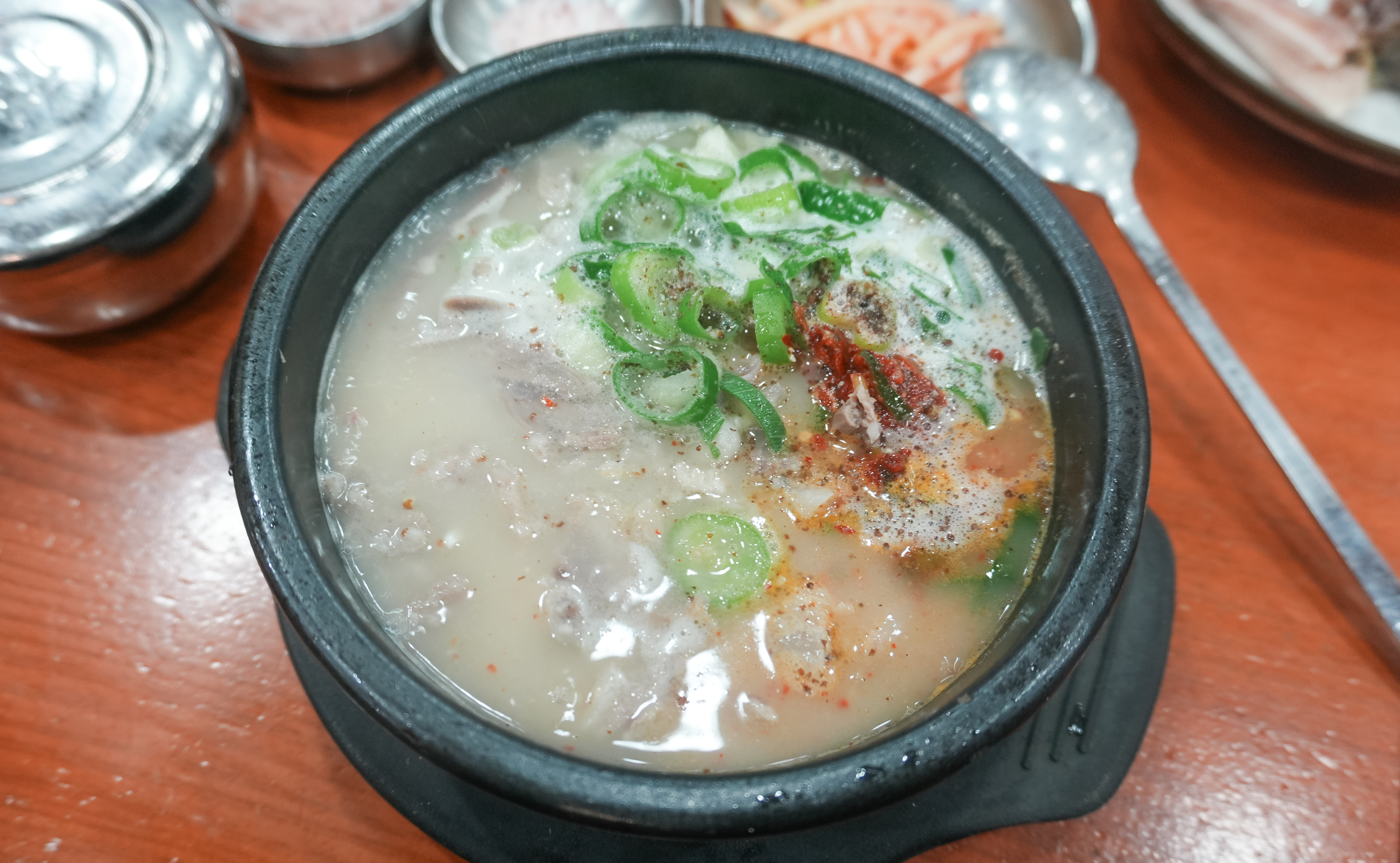 함경도찹쌀순대의 순대국정식은 위와 같이 나왔습니다. 정식에 나오는 수육과 순대 몇 가지 그리고 순대국이 나왔는데, 순댓국은 얼큰한 양념장이 들어있어 맛있었고, 부추와 섞박지, 무생채 같은 반찬들도 순대국과 같이 곁들이면 좋았습니다.