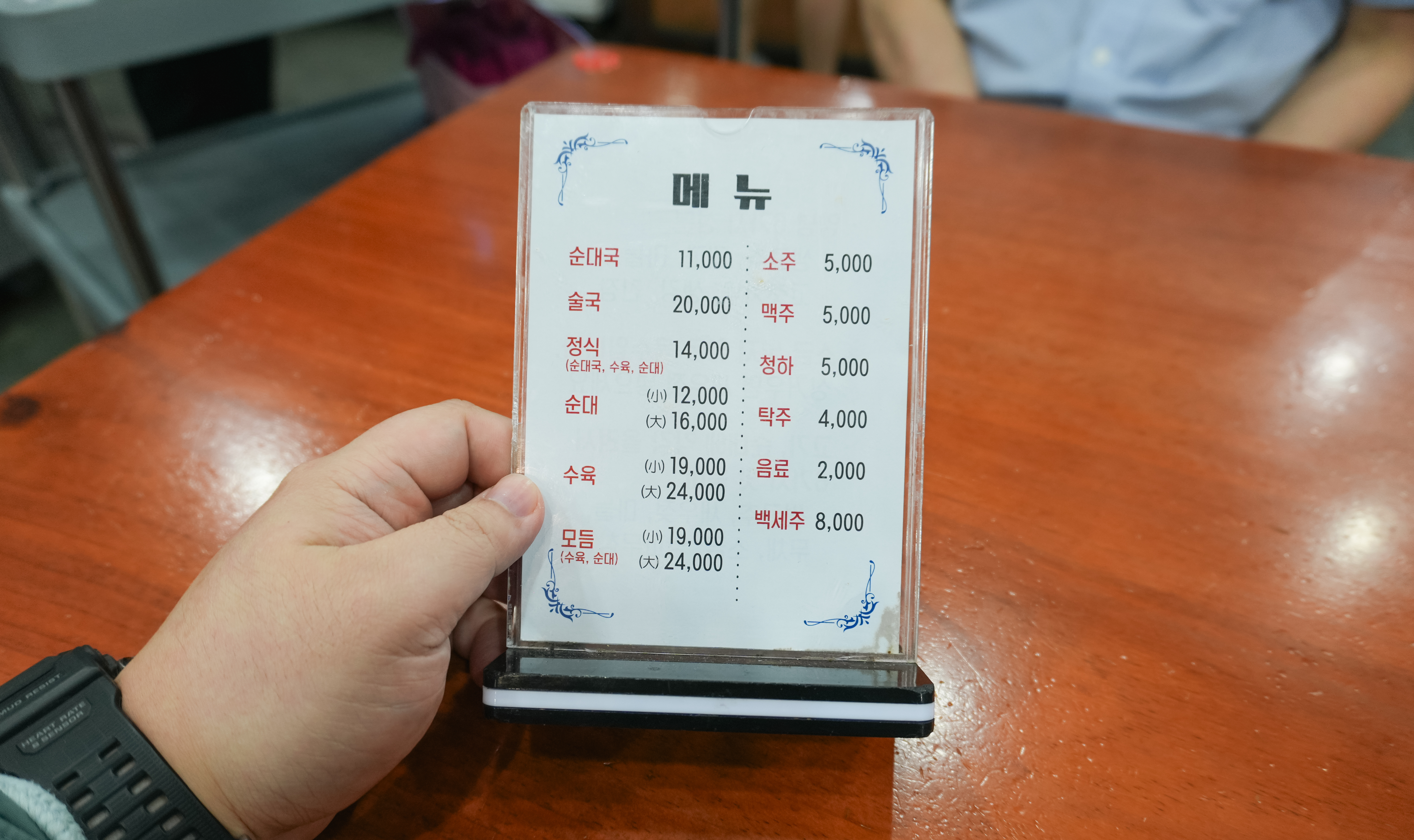 가락동 함경도찹쌀순대의 메뉴는 순대국, 술국, 정식, 순대, 수육, 모듬이 있었습니다. 저희는 순대국 하나와 순대국 정식을 주문했습니다. 정식은 14,000원순대국과 수육, 순대가 함께 나오는 메뉴였습니다. (정식 가격이 2024년 리뷰에 비해서 1,000원 인상되었더라고요.)
