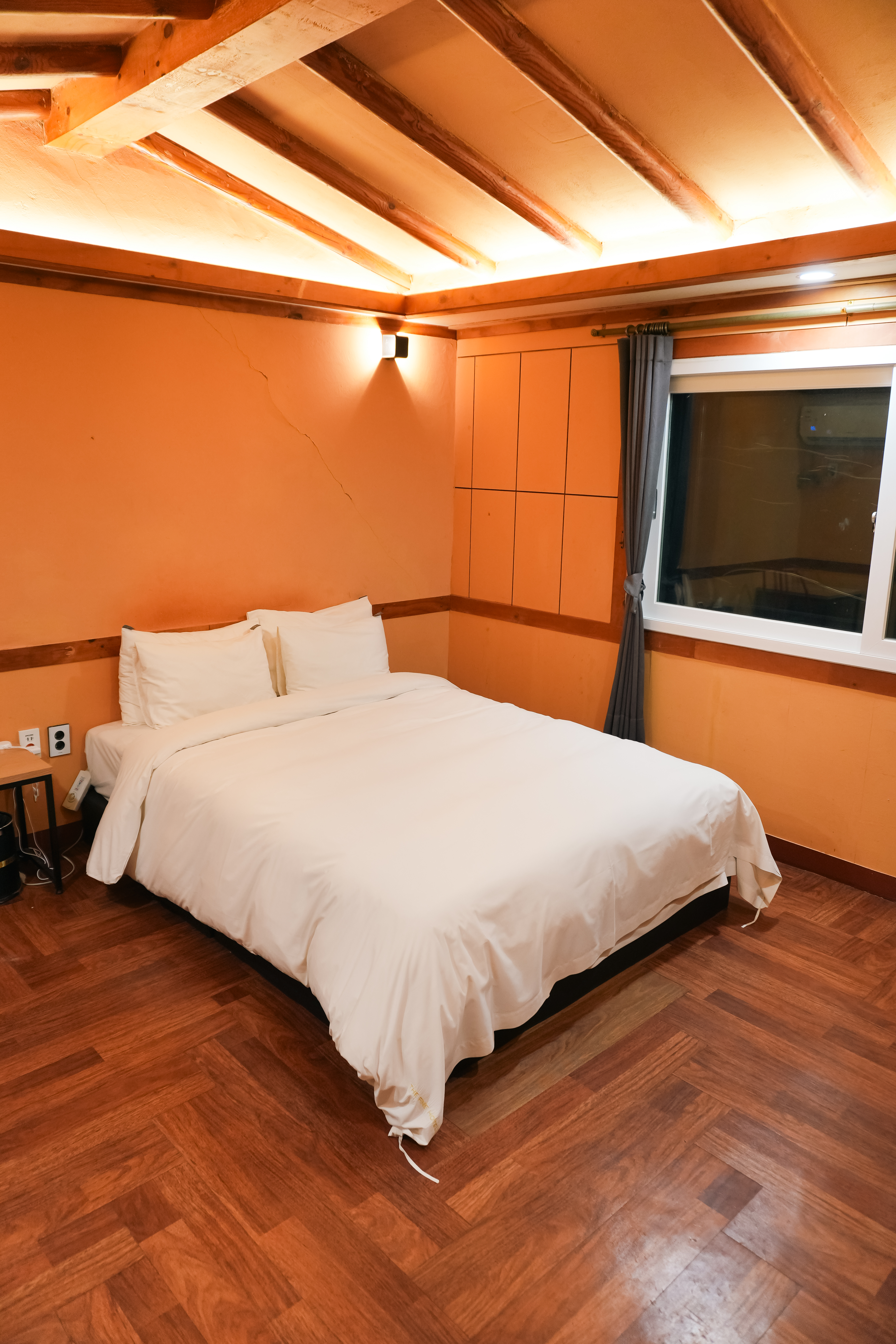 쁘띠호텔 침실의 모습은 위와 같았고, 방의 크기는 혼자서 숙박하기엔 꽤 넓은 편이었습니다. 특히 황토방처럼 되어있는 호텔의 방은 나름 분위기도 아늑했고, 따뜻한 느낌이 들어서 좋았습니다.