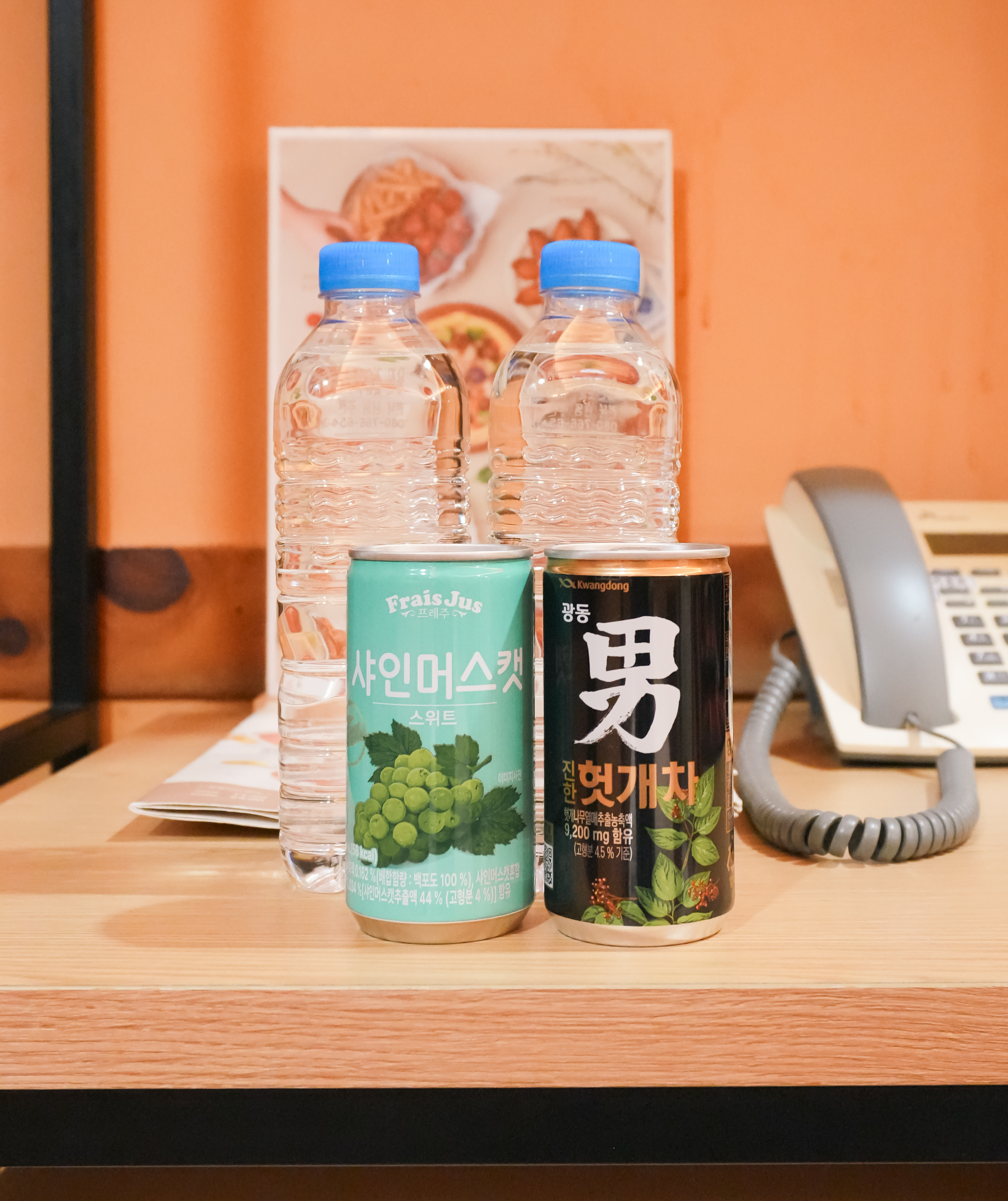 방에는 숙박하면서 입을 가운과 냉장고에 생수와 음료 두 가지가 제공되고 있었습니다. 쁘띠호텔에는 간단한 어매니티가 제공되고 있었는데, 면도기, 칫솔, 치약, 세면용품 등이 들어있었습니다. 에어컨을 틀어보니 깨끗하게 관리되어 있어서 마음 놓고 이용할 수 있었습니다.