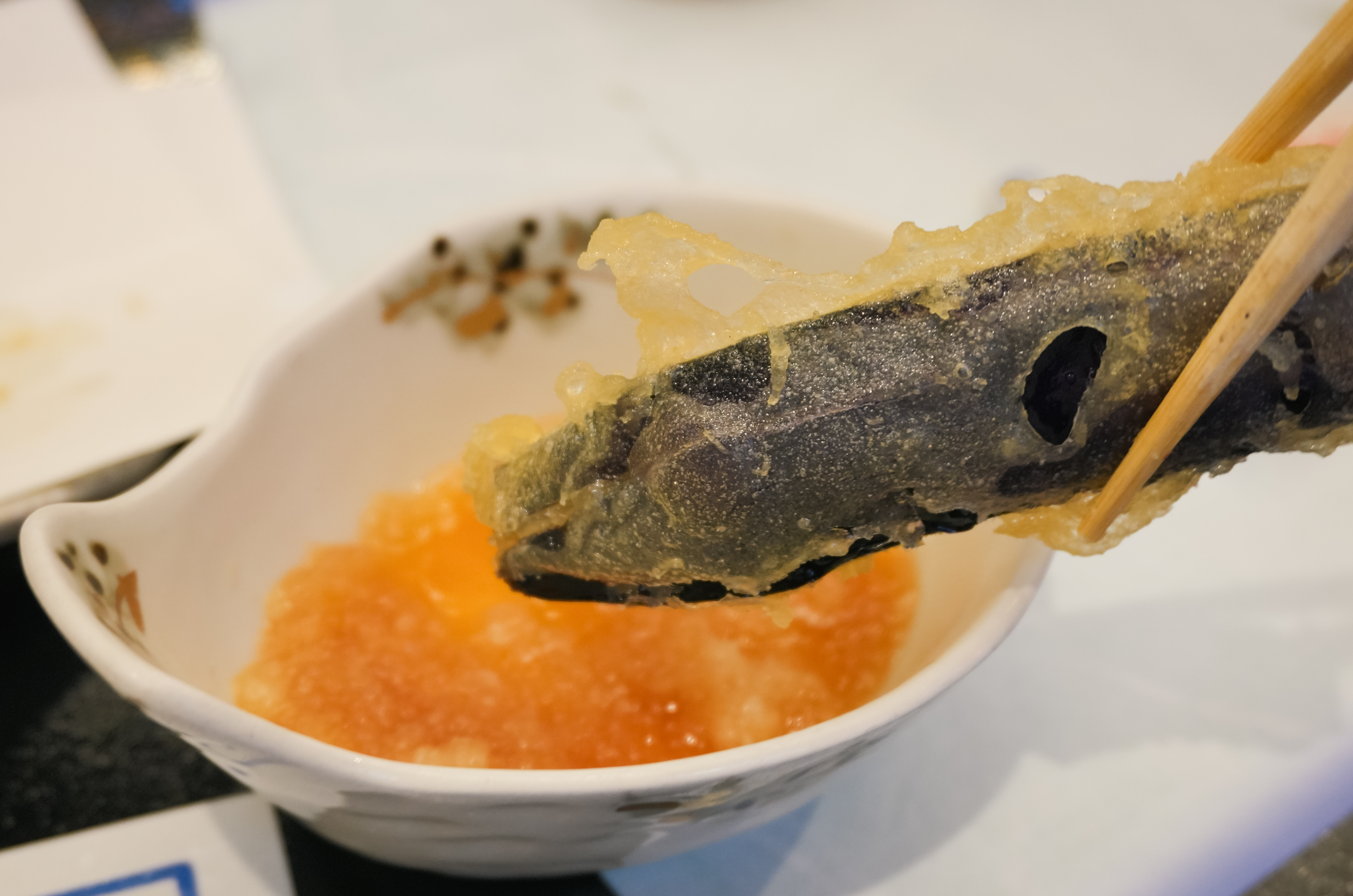 메뉴는 위와 같이 코스로 하나씩 나왔습니다. 애피타이저부터 사시미 등 다양하게 메뉴들이 나왔습니다. 다음으로 덴푸라(튀김)이 나오기 시작했는데, 새우튀김부터 시작해 다채로운 구성으로 나왔습니다.