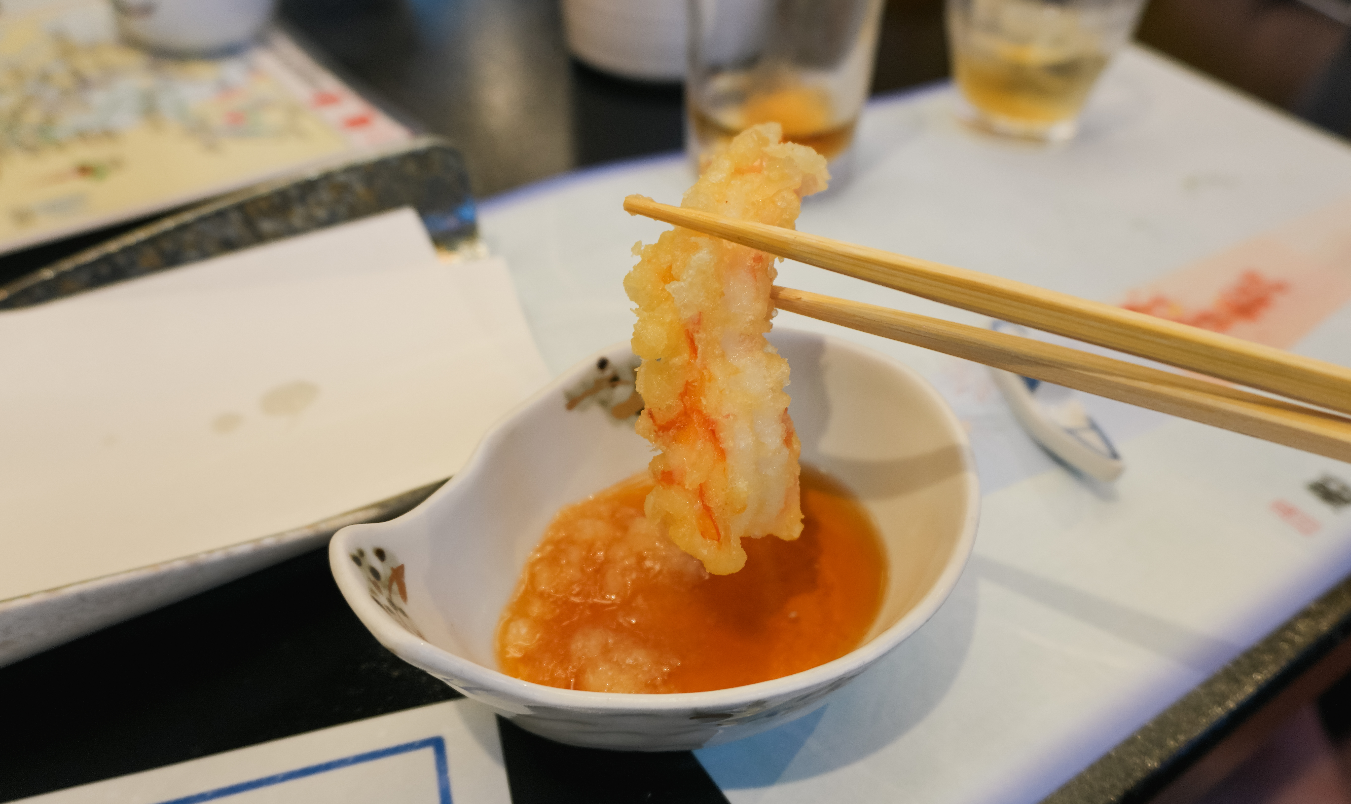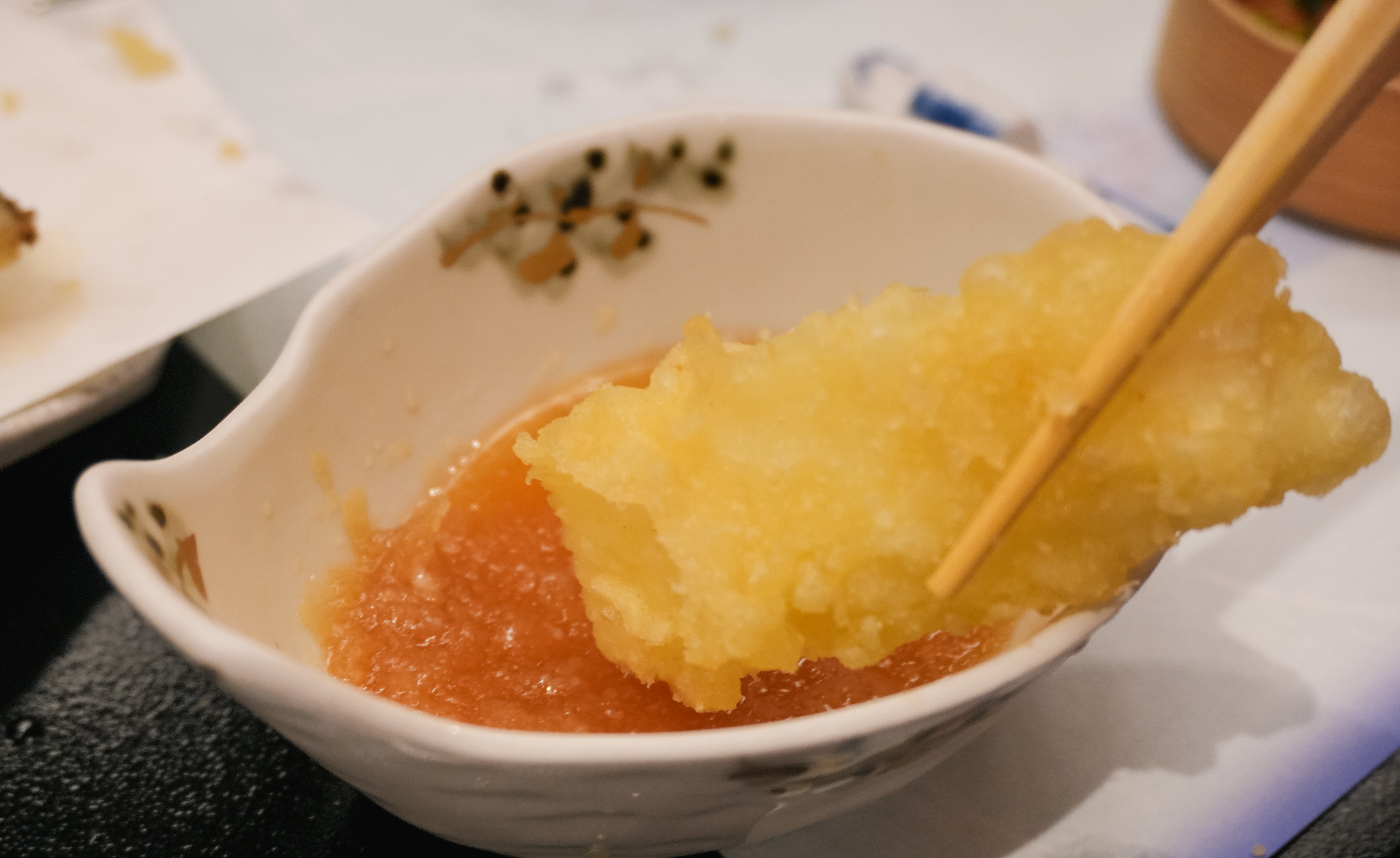 메뉴는 위와 같이 코스로 하나씩 나왔습니다. 애피타이저부터 사시미 등 다양하게 메뉴들이 나왔습니다. 다음으로 덴푸라(튀김)이 나오기 시작했는데, 새우튀김부터 시작해 다채로운 구성으로 나왔습니다.