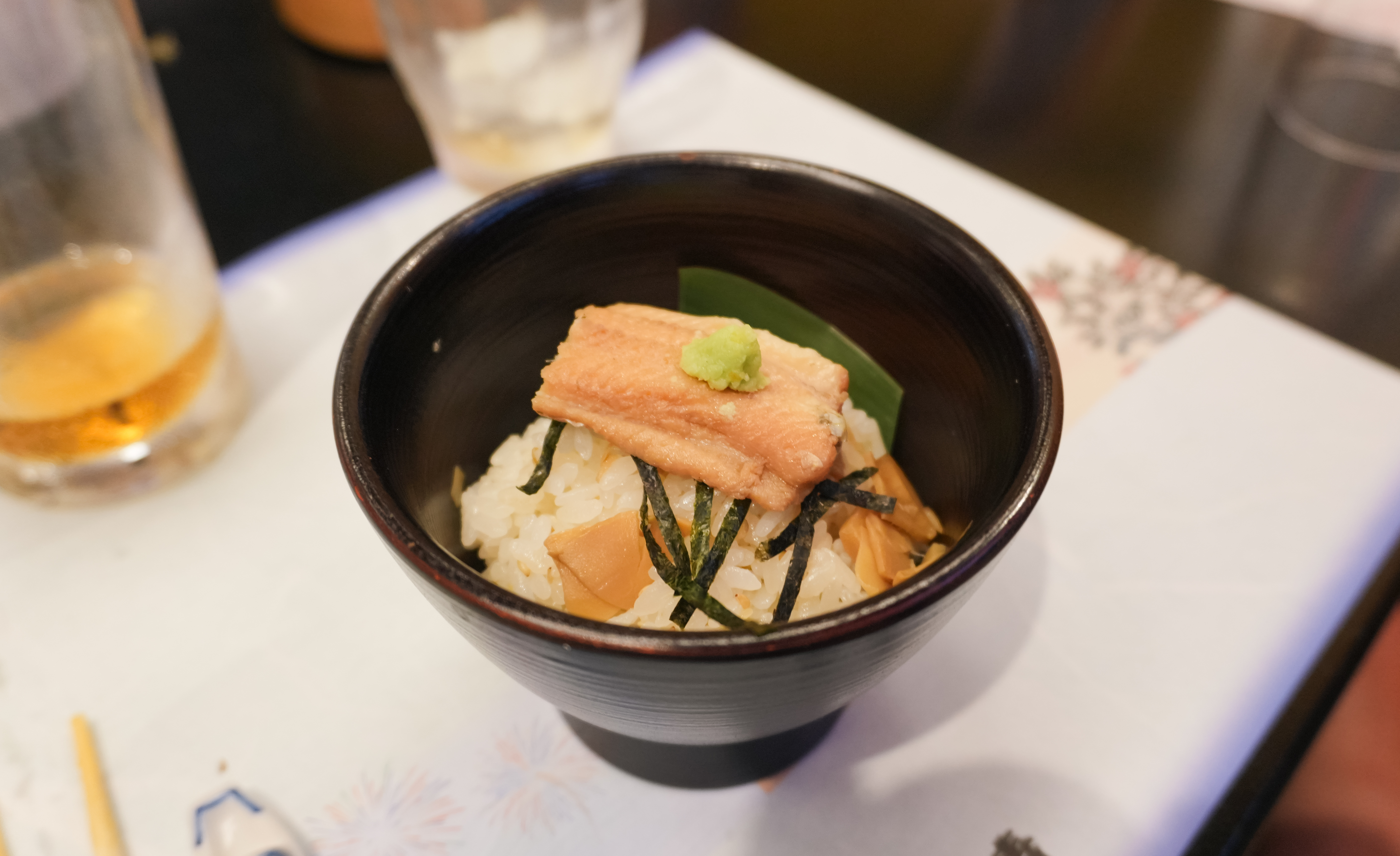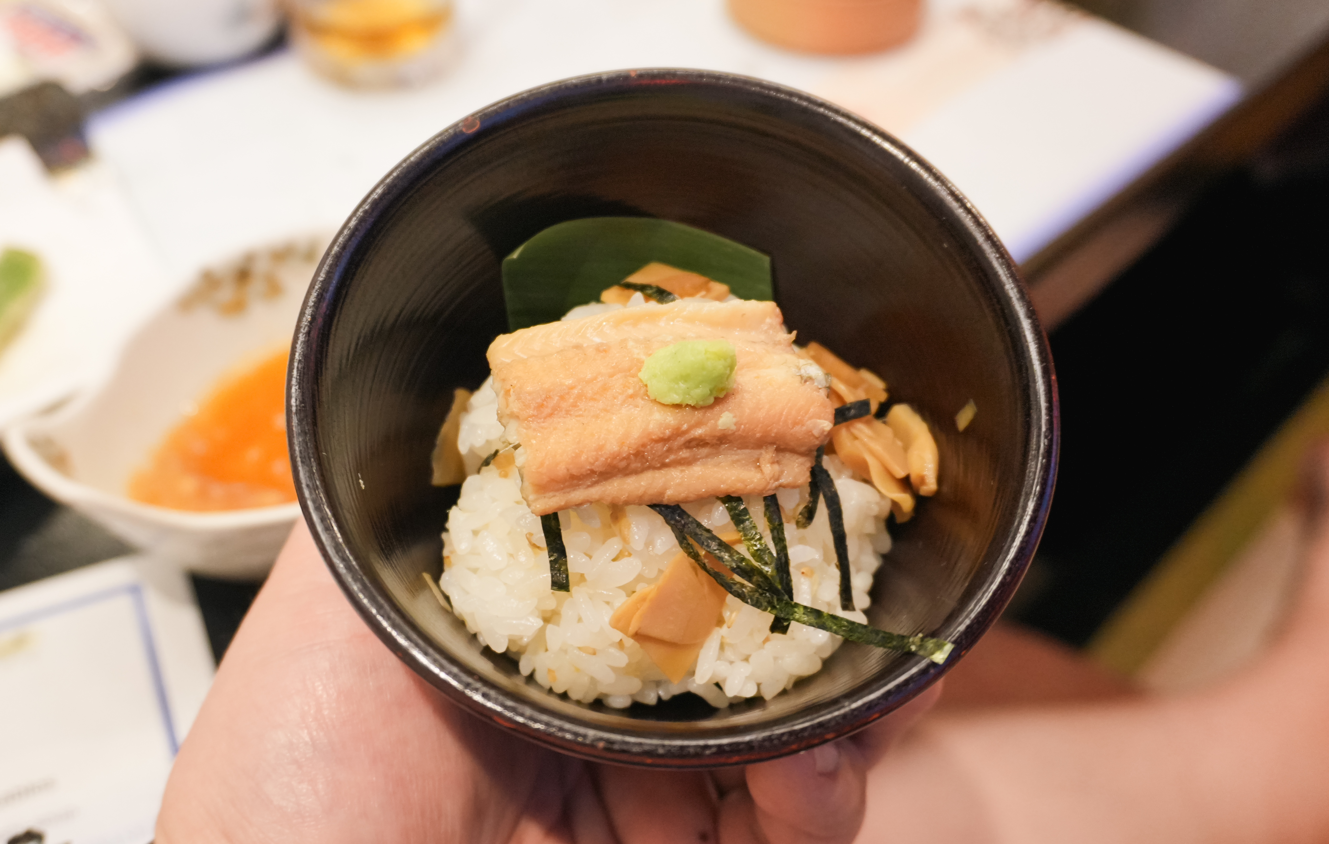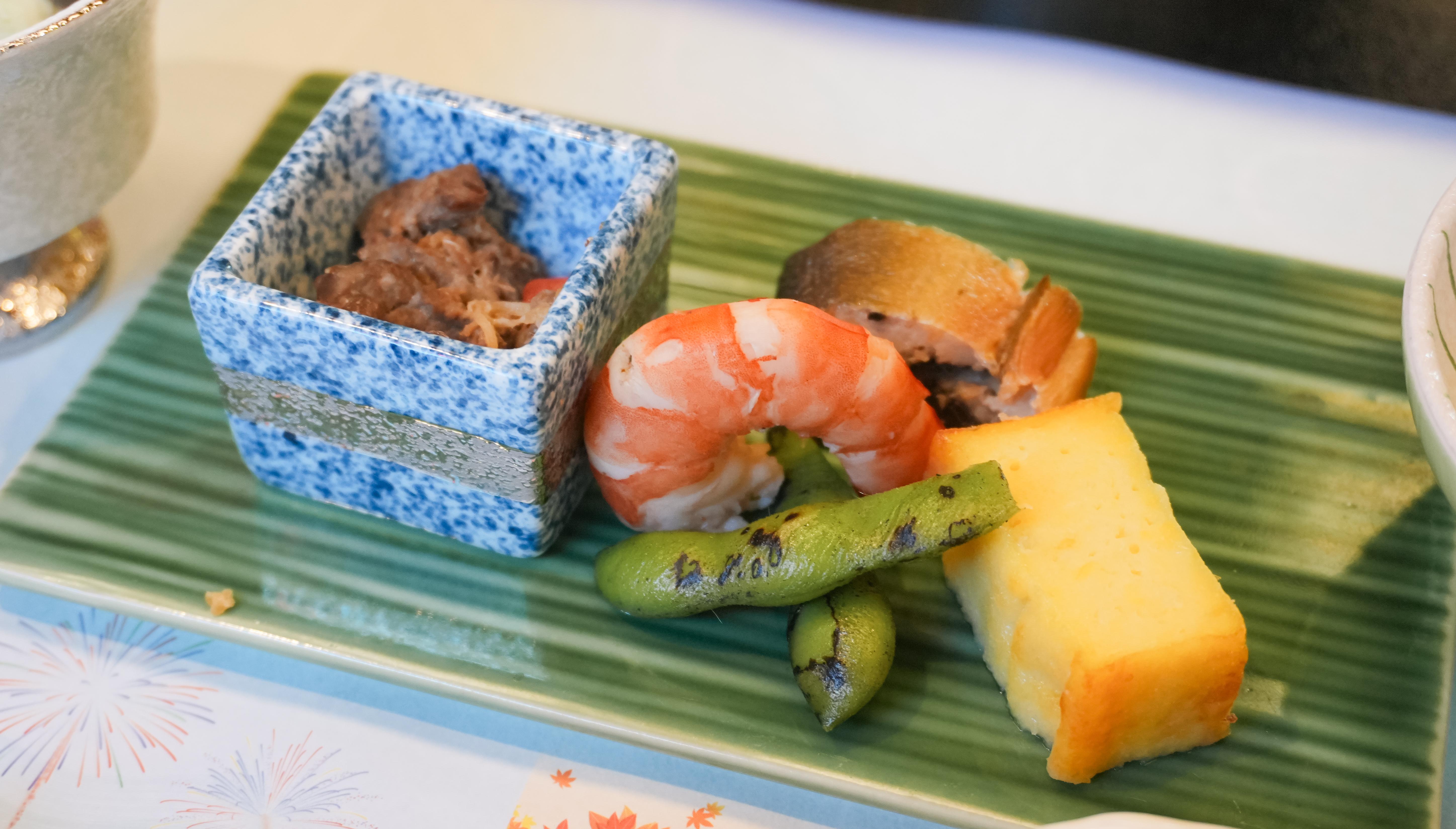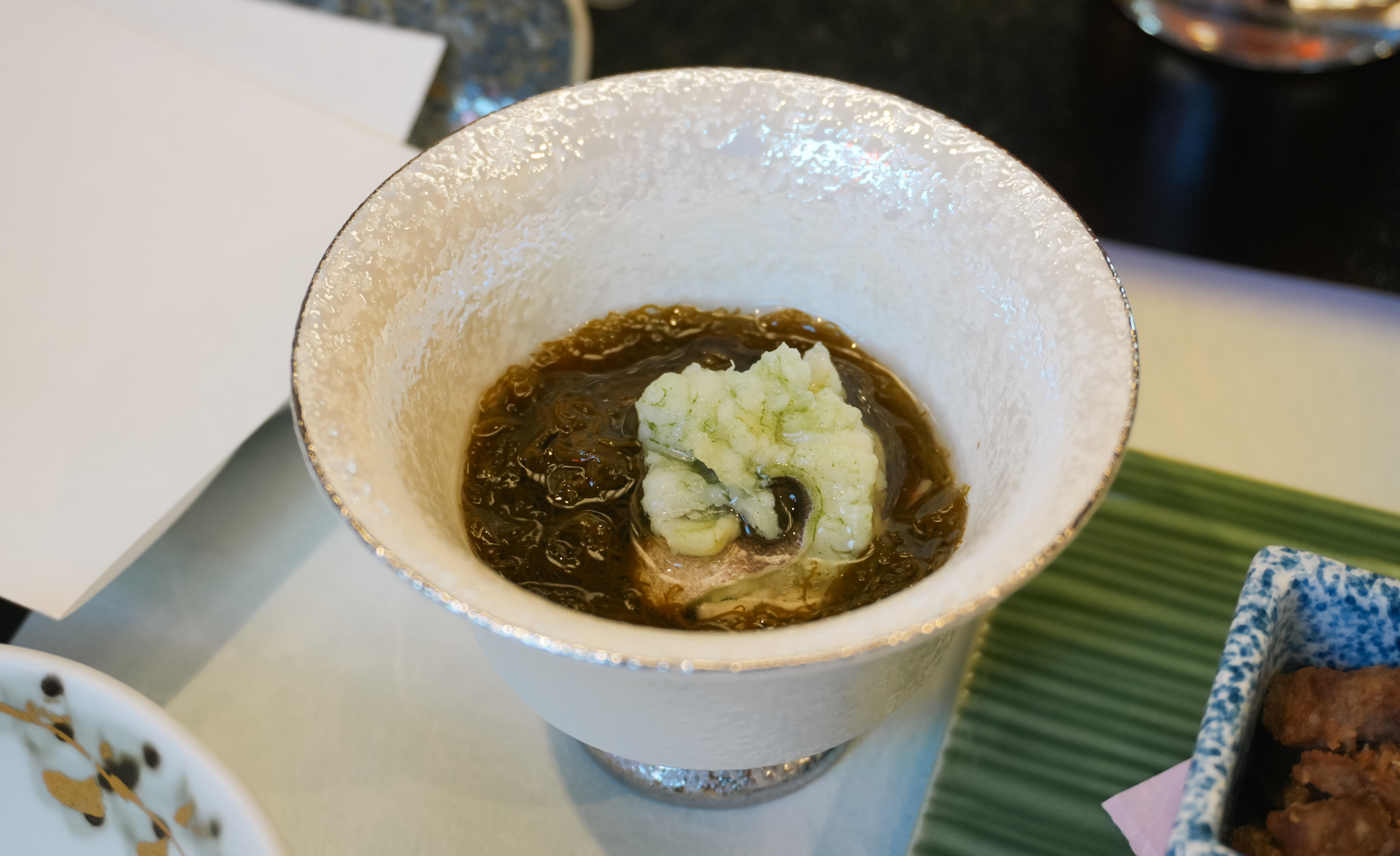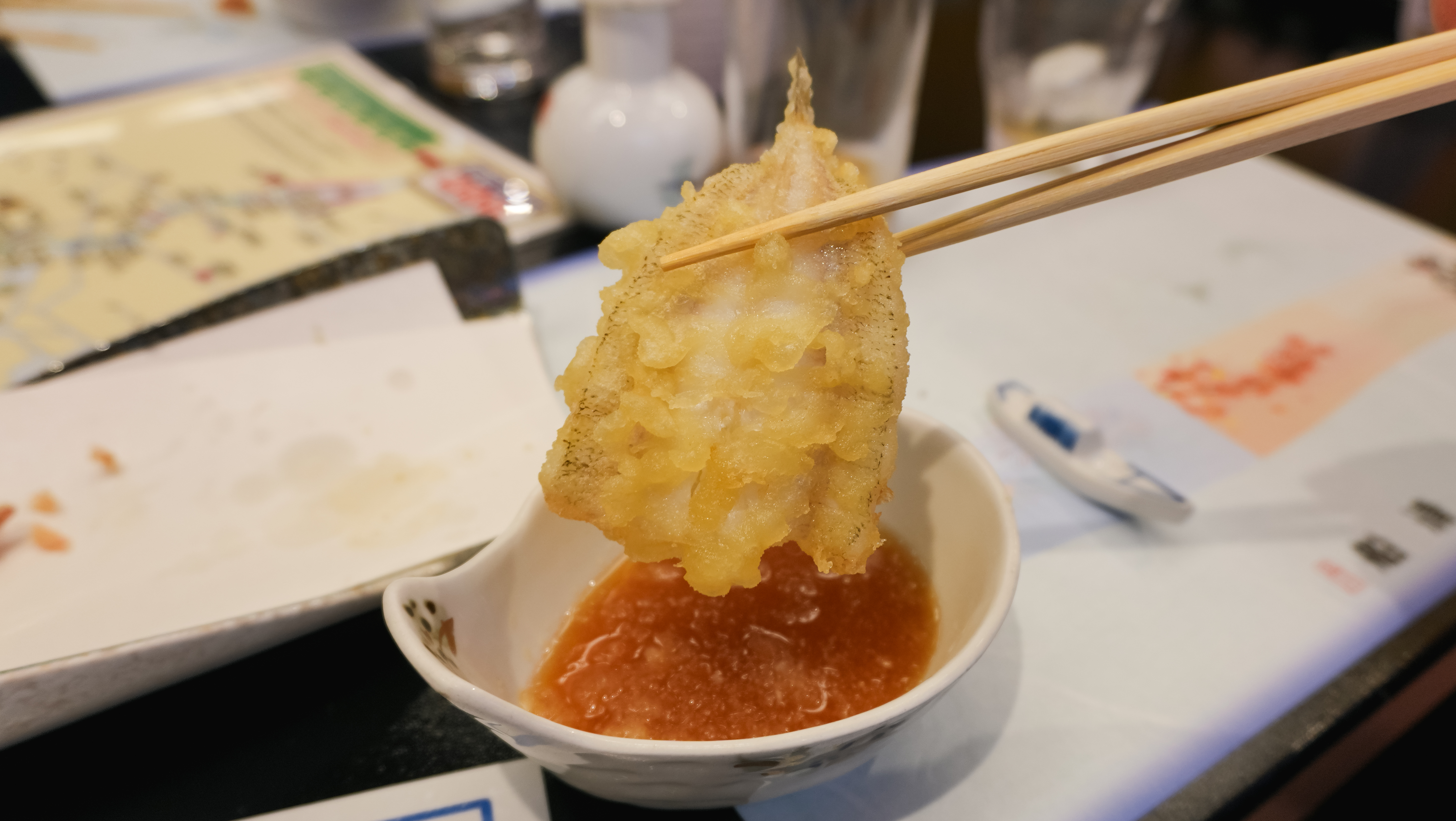 새우튀김, 가지튀김, 흰살생선, 장어, 오징어 등 다채롭게 나왔습니다. 특히 갓 튀겨낸 튀김은 바삭하고 색깔도 예뻐서 맛있었습니다. 중간에 밥도 나왔습니다.