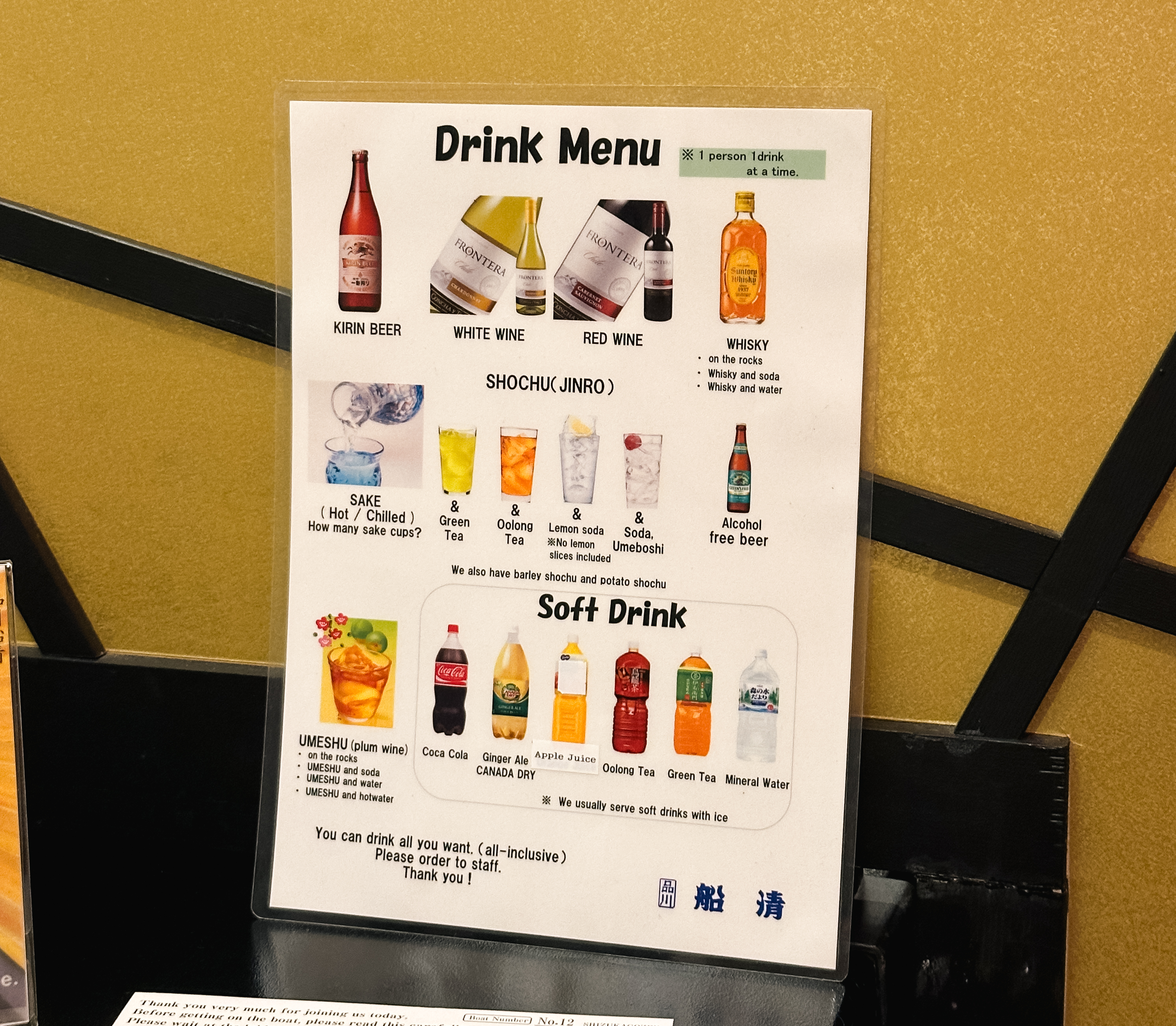 특히 이 디너크루즈는 모든 음료가 무제한으로 제공되고 있어서, 편하게 QR 로 웹에 접속하여 주문할 수도 있었고, 직원을 호출하여 직접 주문해도 되었습니다. 저희는 맥주와 우메슈라 불리는 매실와인을 곁들였습니다. 평소 저는 술을 잘 안 마셔서 우메슈 온더락으로 먹었는데, 그나마 좀 부드러워서 가장 맛있더라고요. 사케는 생각보다 제 입맛에 잘 안 맞더라고요.