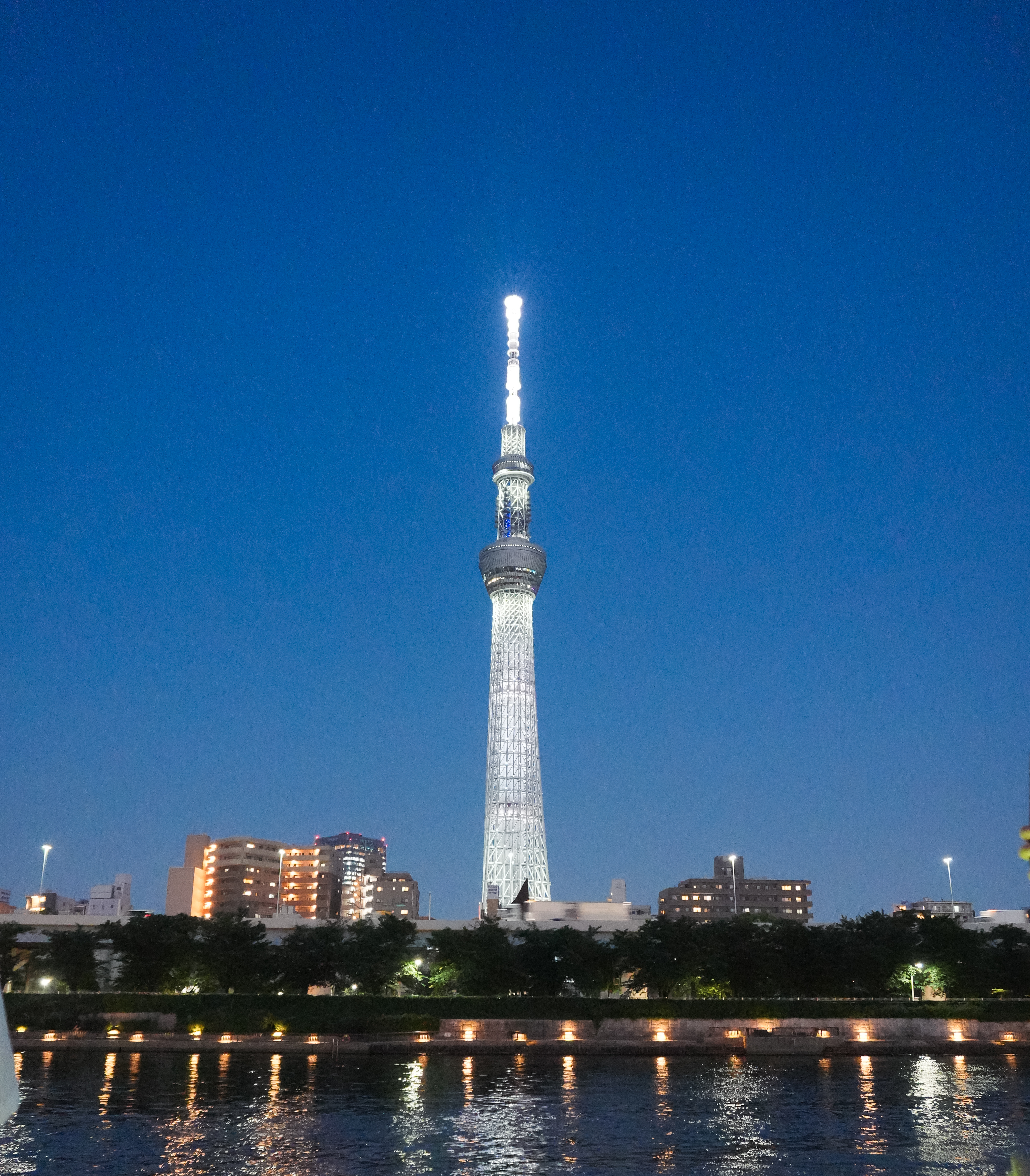 중간에 정박 포인트에서 사진을 찍었습니다. 어머니랑 사진도 찍고 주변에 풍경들도 사진을 찍었습니다. 특히 강 편에서 바라보는 스카이트리는 가리는 부분도 없고, 탁 트여있어 멋진 뷰를 보여주었습니다. 한참을 강바람을 맞으며 멍 때리다가 다시 배 안으로 들어오라는 지시에 들어갔습니다.