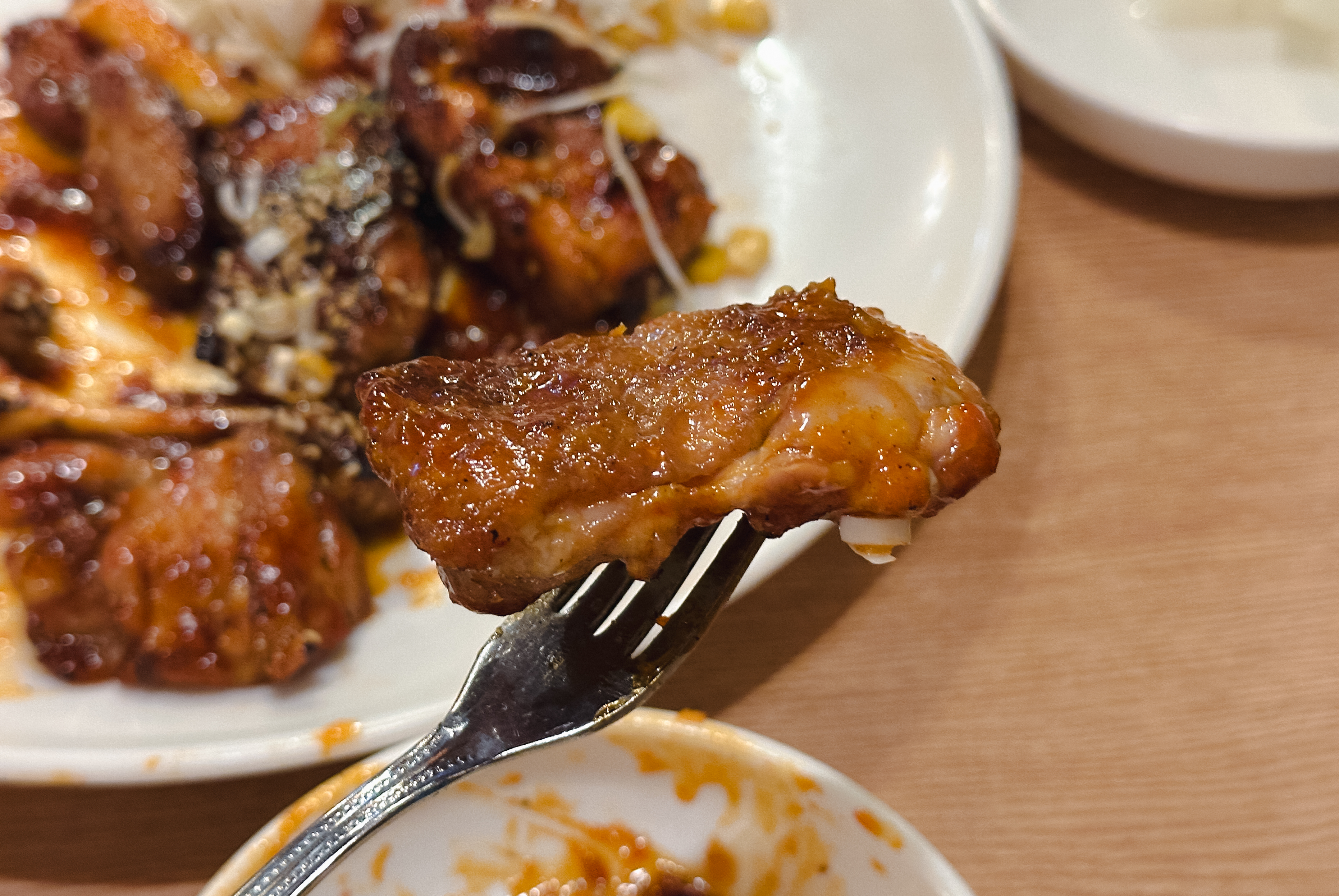 숯불에 굽는 치킨은 사실 손도 많이 가고 번거로운데, 20,000원의 가격은 요즘에 느끼지만 크게 부담스러운 금액은 아니라고 생각합니다. 치킨은 은은하게 숯불향이 배어있어 담백하면서도 고소했습니다. 치킨과 함께 제공되는 떡도 맛있었고요. 보통의 후라이드치킨은 기름지고 느끼할 수 있는데, 숯불바베큐치킨은 확실히 담백한 게 매력인 듯합니다.