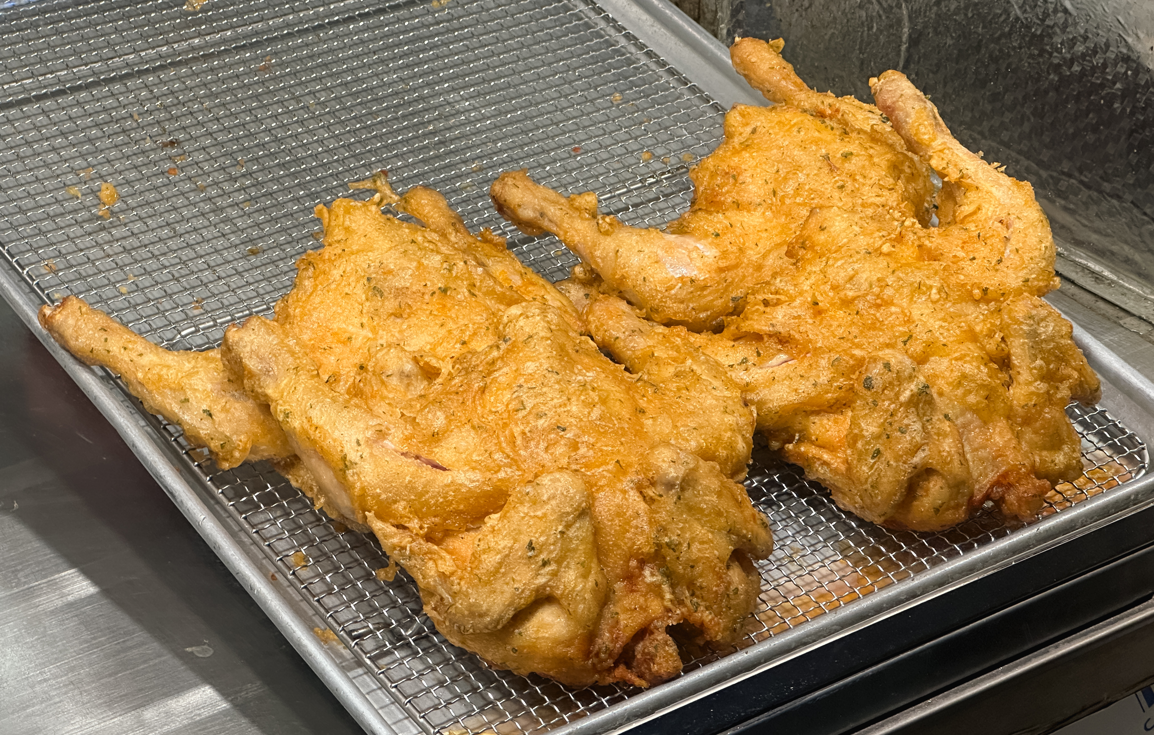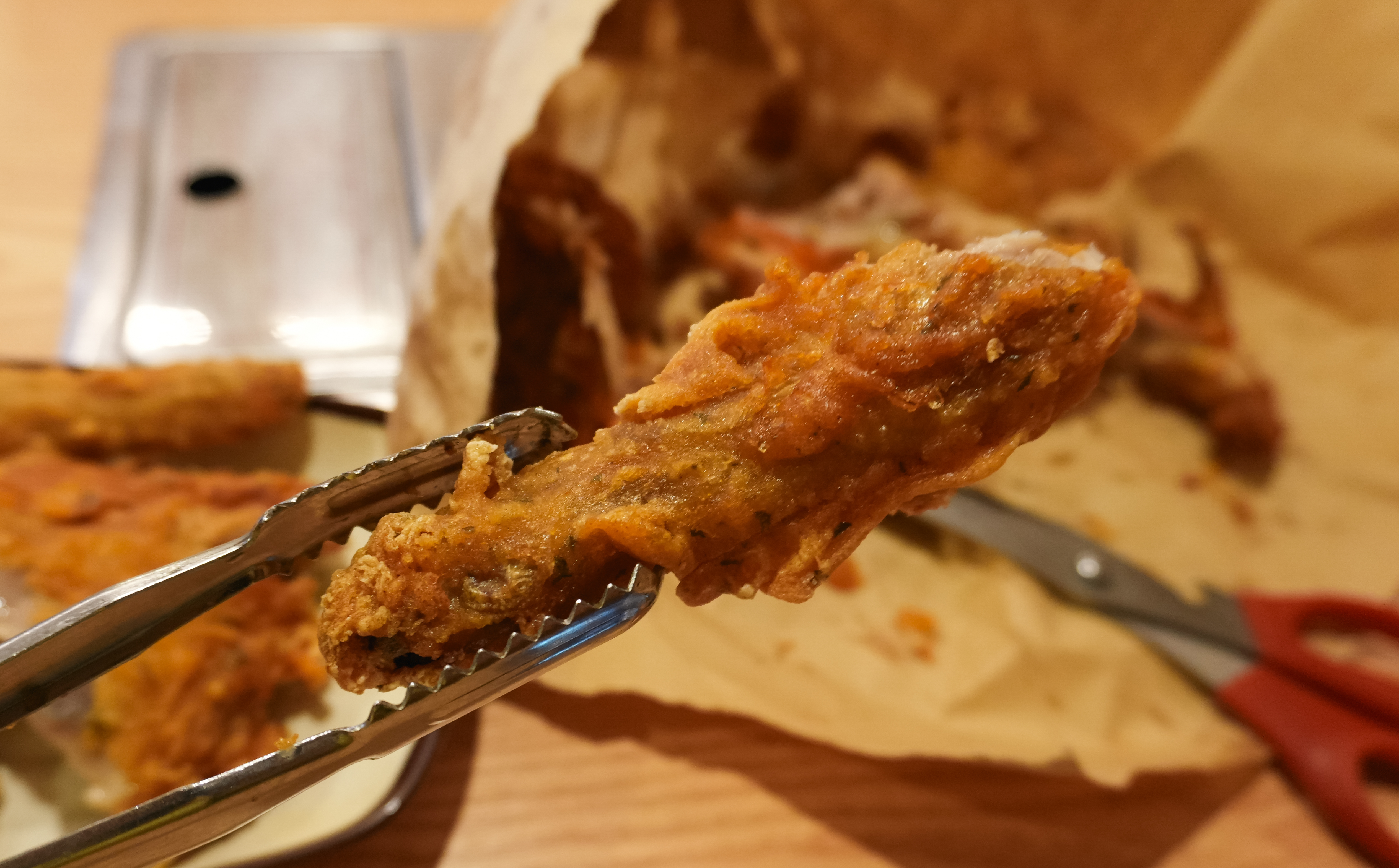 강사내통닭은 옛날통닭답게 통째로 튀김옷을 입혀서 닭을 튀겼고, 제가 따로 먹기 좋게 조각내서 먹었습니다. 확실히 치킨은 매콤해서 맛있었고, 튀김옷도 얇고 바삭했고 닭고기는 야들야들 맛이 좋았습니다.