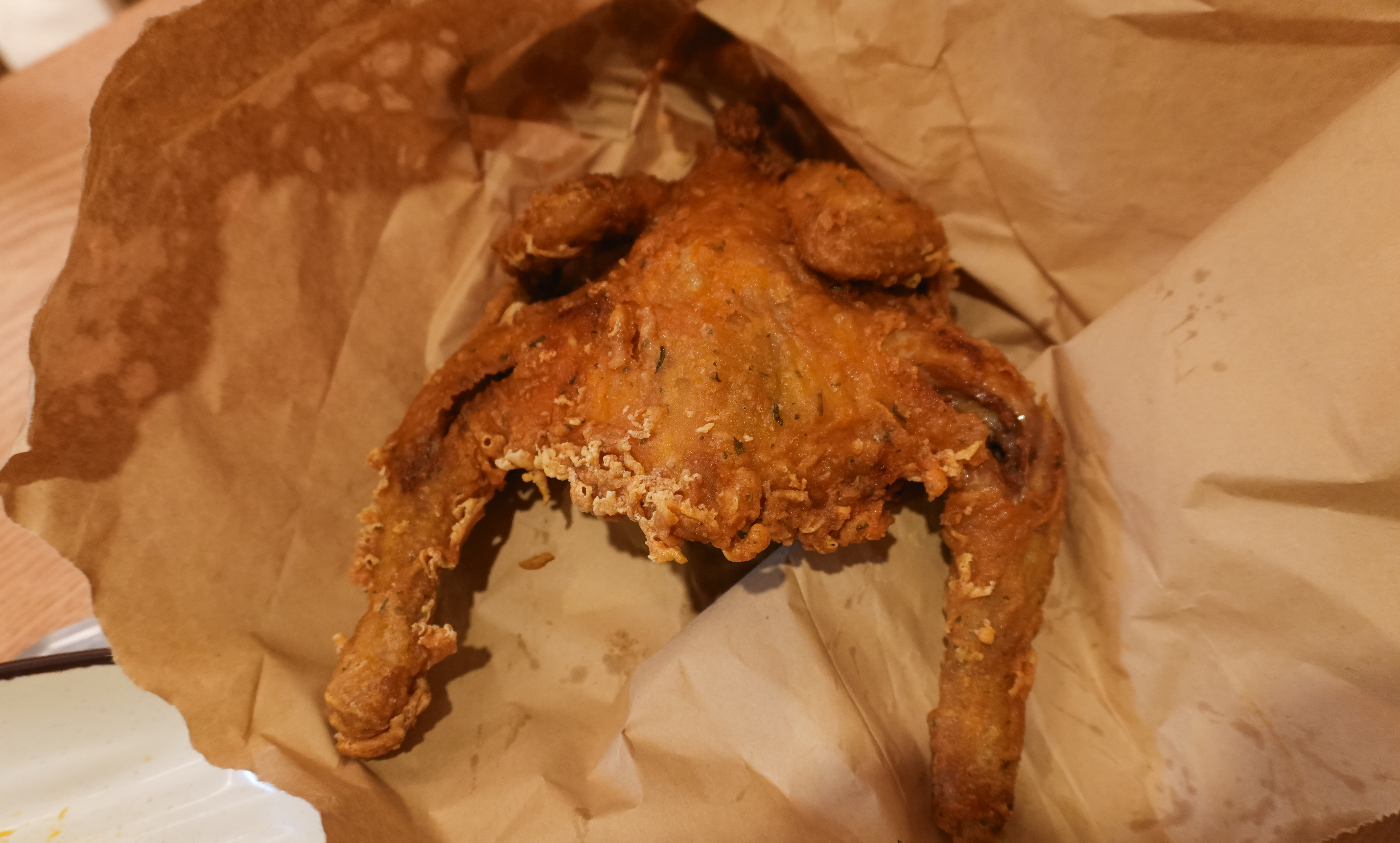 강사내통닭은 옛날통닭답게 통째로 튀김옷을 입혀서 닭을 튀겼고, 제가 따로 먹기 좋게 조각내서 먹었습니다. 확실히 치킨은 매콤해서 맛있었고, 튀김옷도 얇고 바삭했고 닭고기는 야들야들 맛이 좋았습니다.