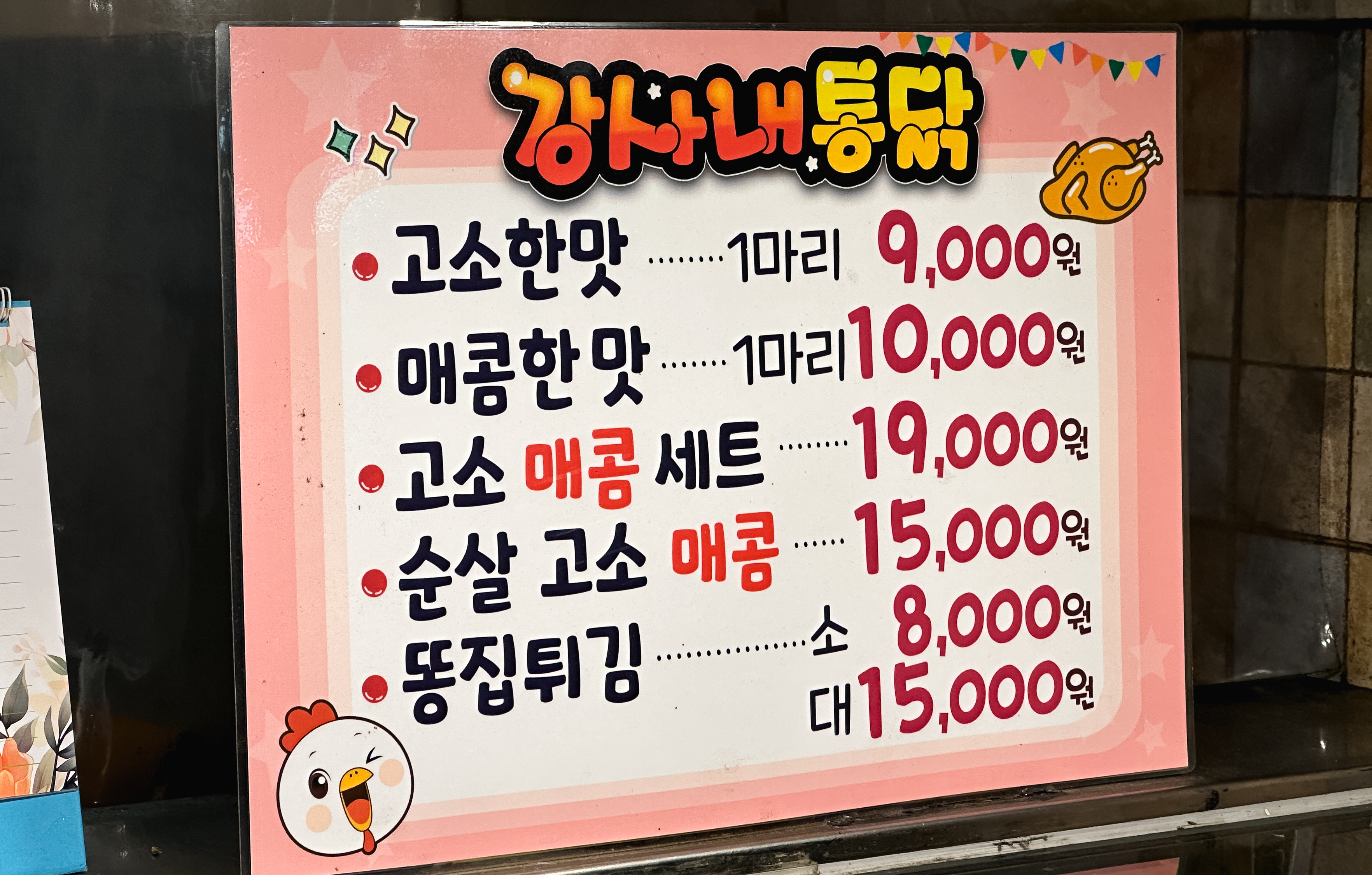 여기도 꽤 오래된 가성비 치킨 맛집인데요, 제가 2017년에 처음 리뷰(링크)하고, 종종 방문했는데 2025년 현재. 정말 오랜만에 다시 다녀와 리뷰를 합니다. 제가 2017년에 처음 갔을 때는 통닭 한 마리에 7,000원 이랬었는데, 요즘엔 가격이 좀 오른 것 같더라고요. 그럼 이제 강화 강사내통닭 리뷰를 시작하겠습니다.