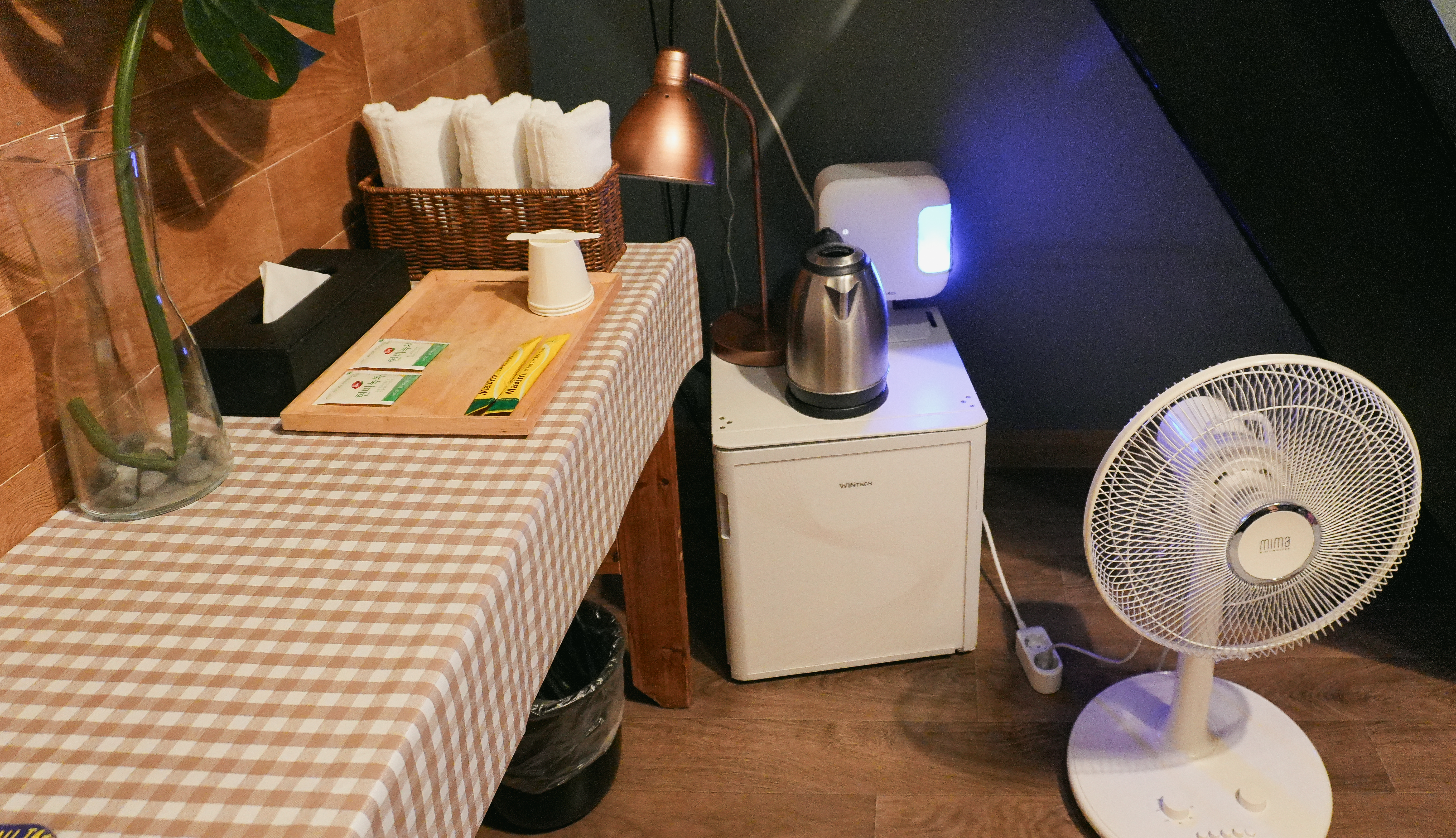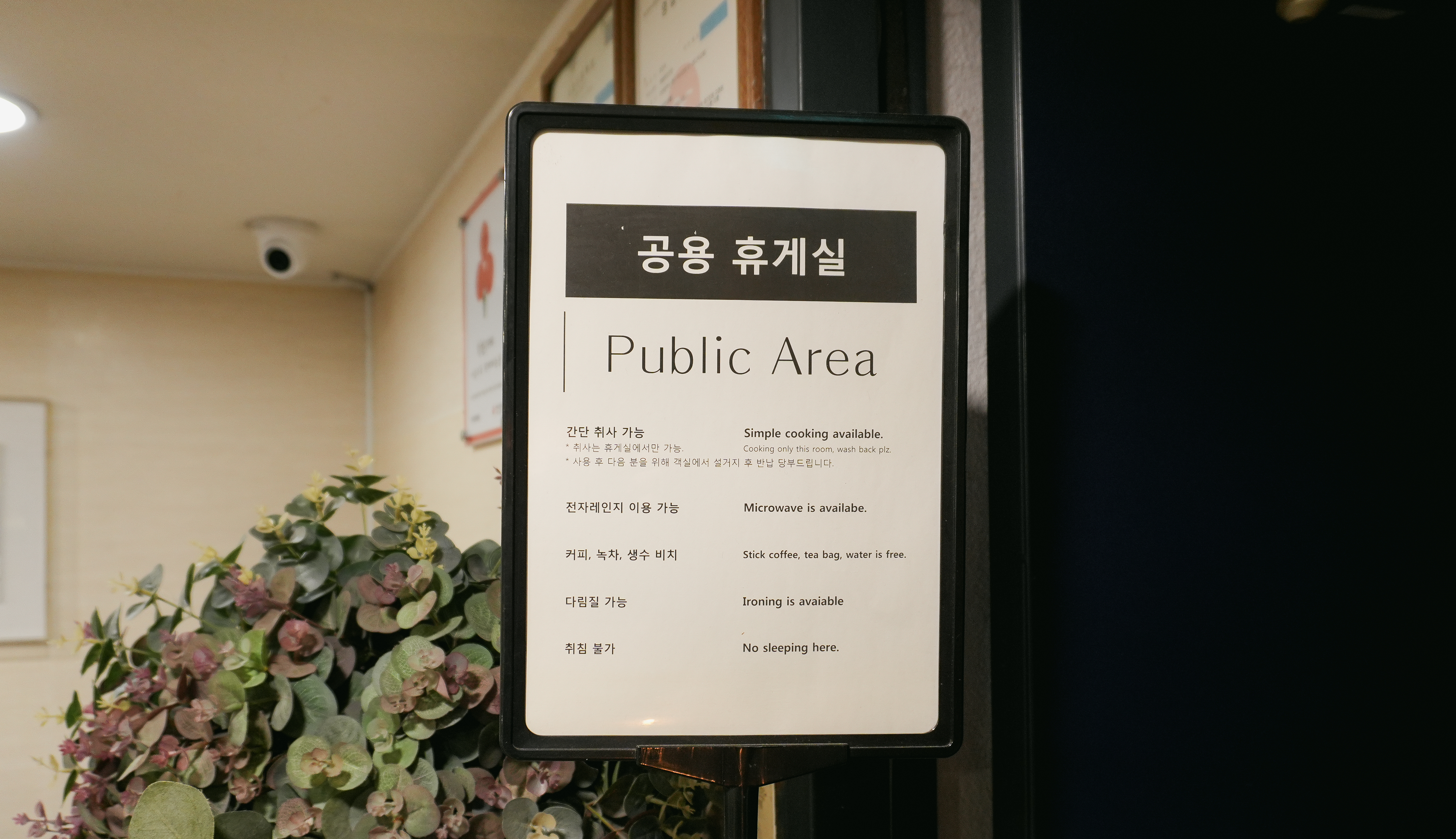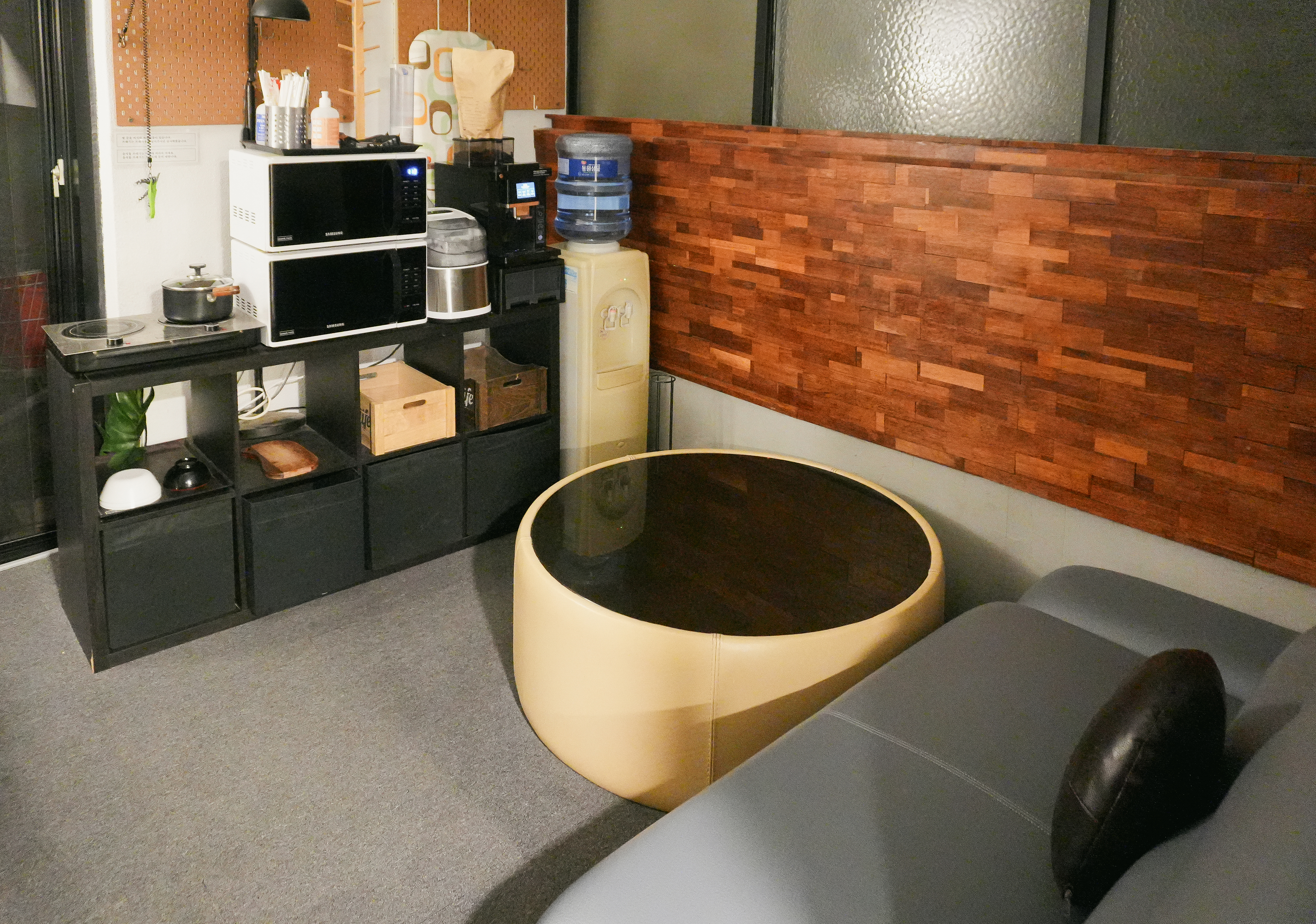 1층 공용공간에는 전자레인지와 커피머신, 정수기, 인덕션이 있었습니다. 저는 저녁을 이미 먹고 간단히 휴식만 하고 다음날 출국할 예정이라 이 공간을 사용하지는 않았습니다.