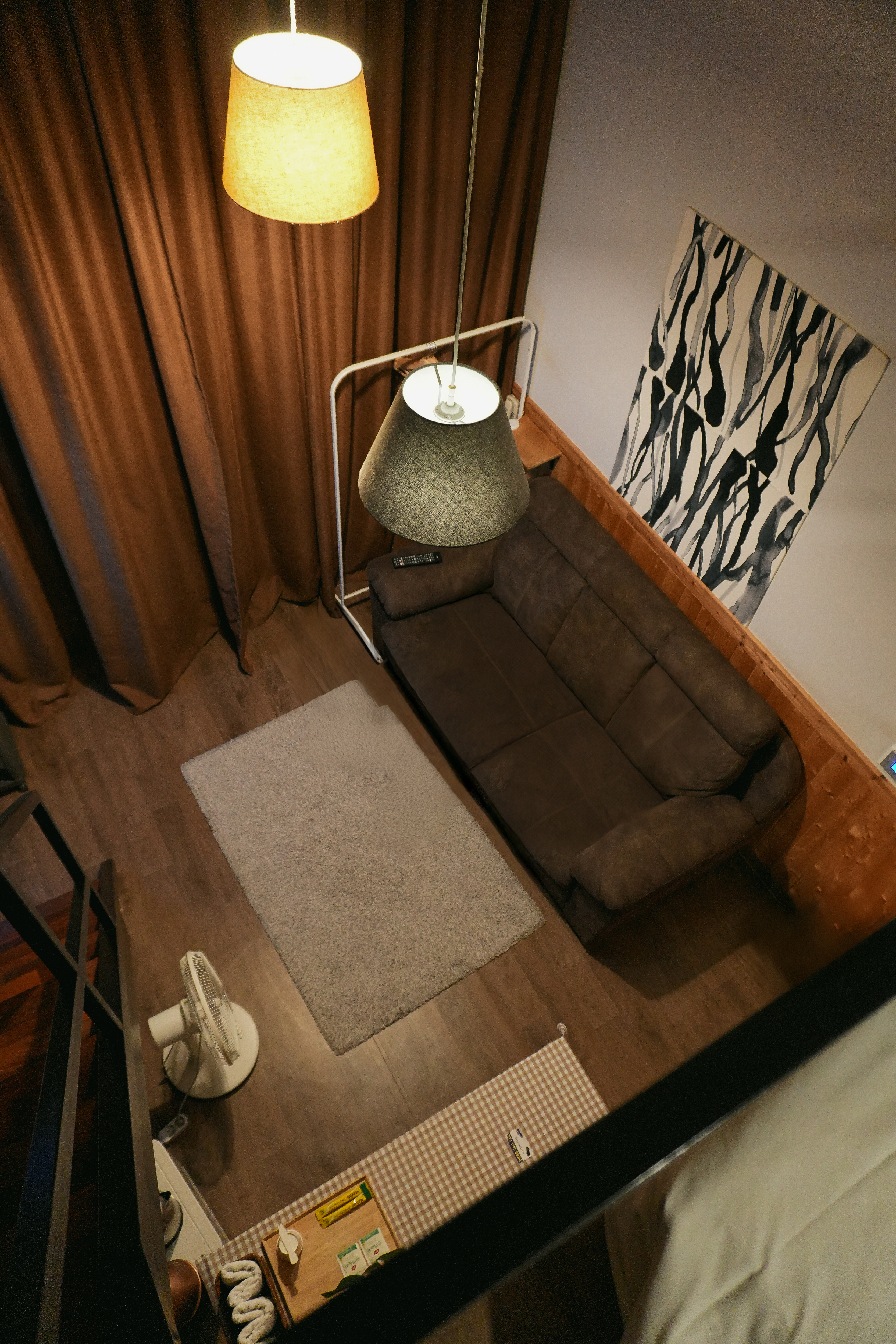 호텔휴로프트는 객실들이 전체적으로 복층공간으로 이루어져 있었고, 막 '엄청 좋다' 까지는 아니어도 '나름 잘 꾸며져 있다' 는 느낌을 받을 수 있었습니다. 1층에는 소파와 TV, 냉장고 등이 있었고, 2층에는 침대가 놓인 방이 있었습니다.
