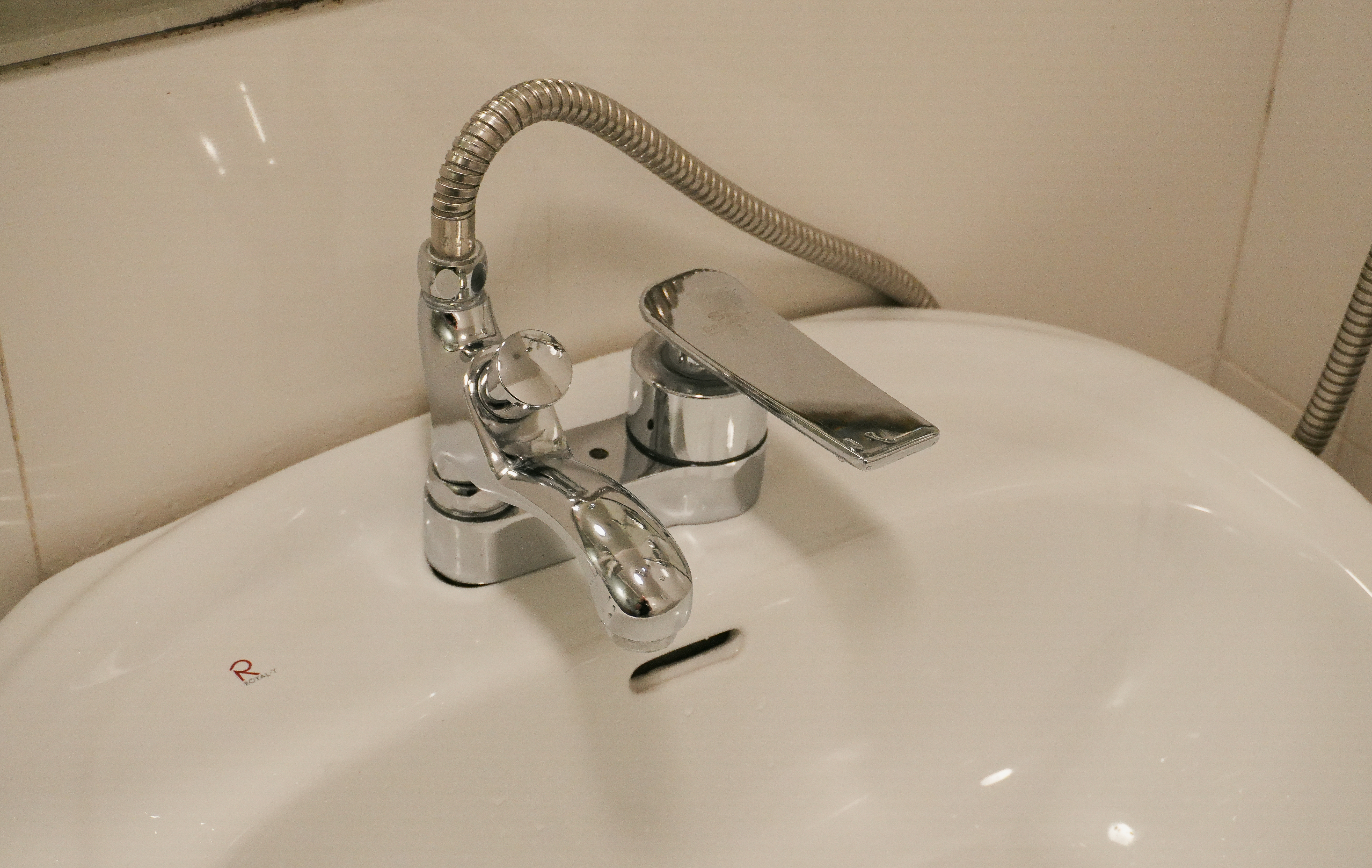 욕실에는 수전과 수전에 연결된 샤워기가 있었고, 일체형으로 샴푸, 컨디셔너, 바디워시가 있었습니다. 수건들도 여유 있게 배치되어 있어서 샤워하고 준비하는데 부족하지 않았습니다.