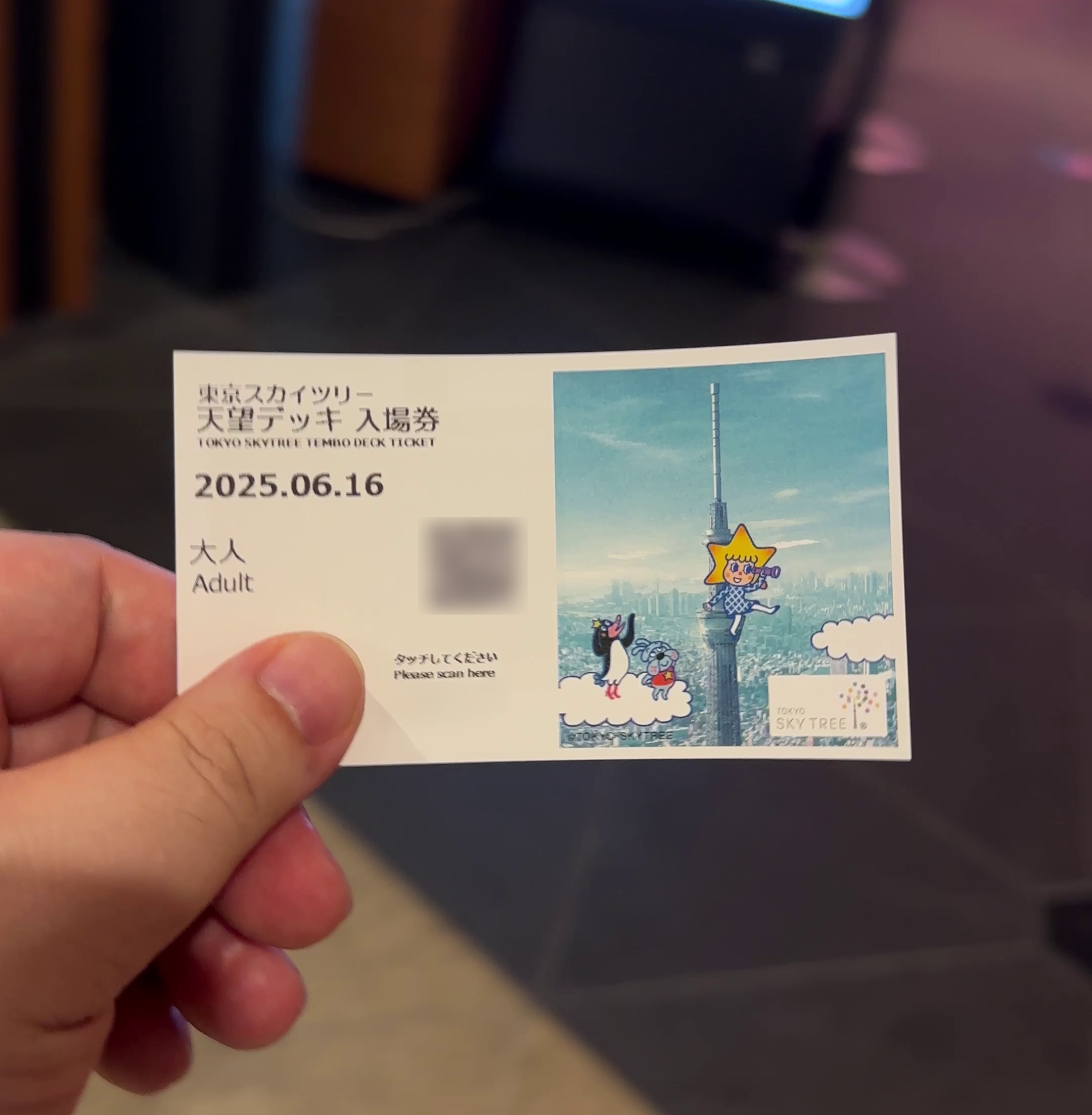 이번 스카이트리 예약은 여기어때 앱을 통해 예약했습니다. 원래는 2025년6월16일 18:30 450m 전망대로 예약을 했다가, 중간에 실수를 했는지 2025년6월16일 16:00 350m 로 예약을 했더라고요. 아쉬운 대로 공항에서 내리자마자 예약한 료칸 아사쿠사 시게츠(링크)에 짐을 놔두고, 근처 스카이트리로 바로 향했습니다.