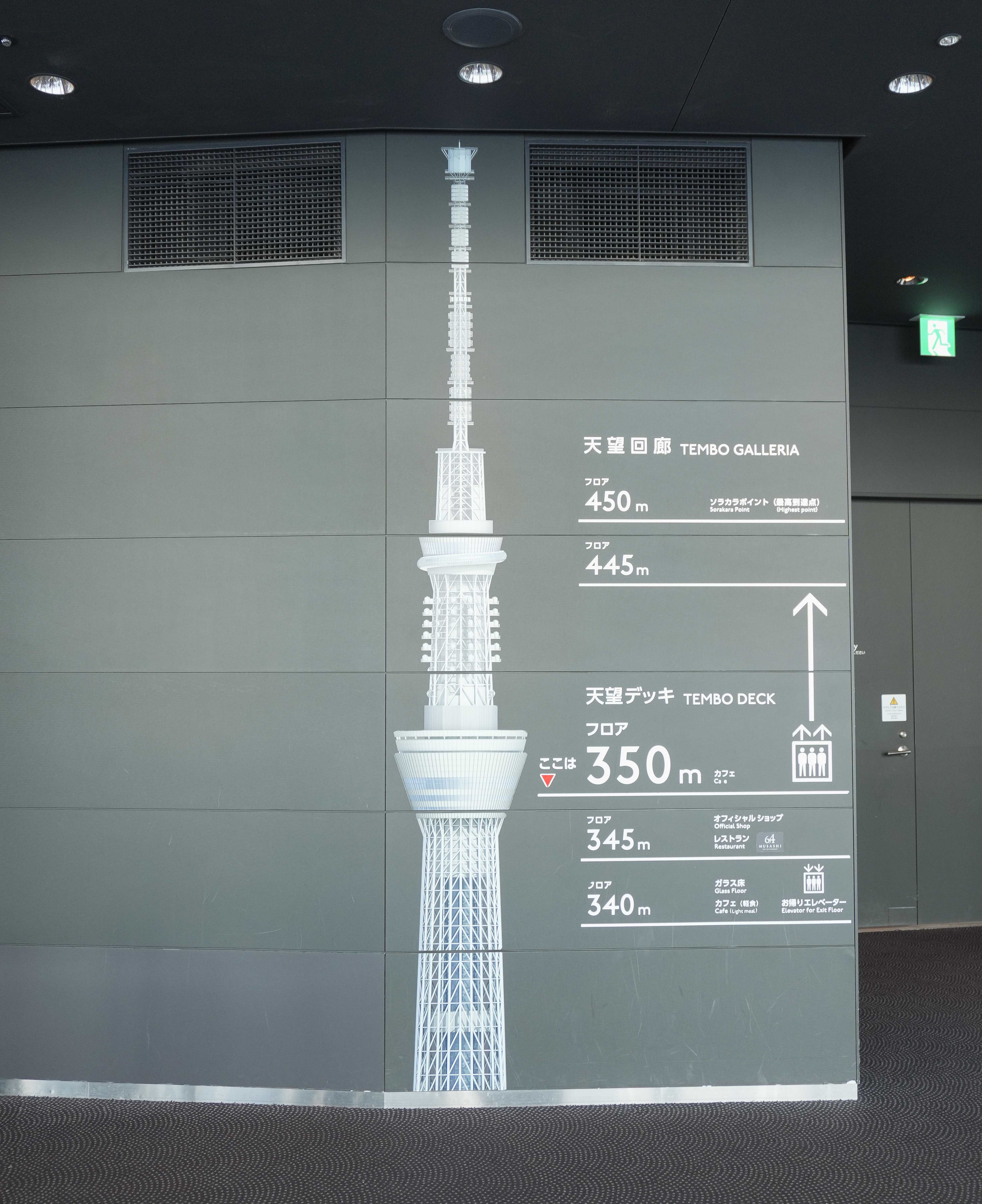 스카이트리는 일반인에게 공개된 곳은 450, 350m 두 곳. 높이만 놓고 보면 634m로 세계에서 가장 높은 타워라고도 불립니다. 원래는 도쿄타워가 전파탑으로 역할을 해오다가, 도시에 초고층빌딩이 많이 들어서면서부터 현재는 도쿄스카이트리가 그 역할을 대신한다고 하더라고요.