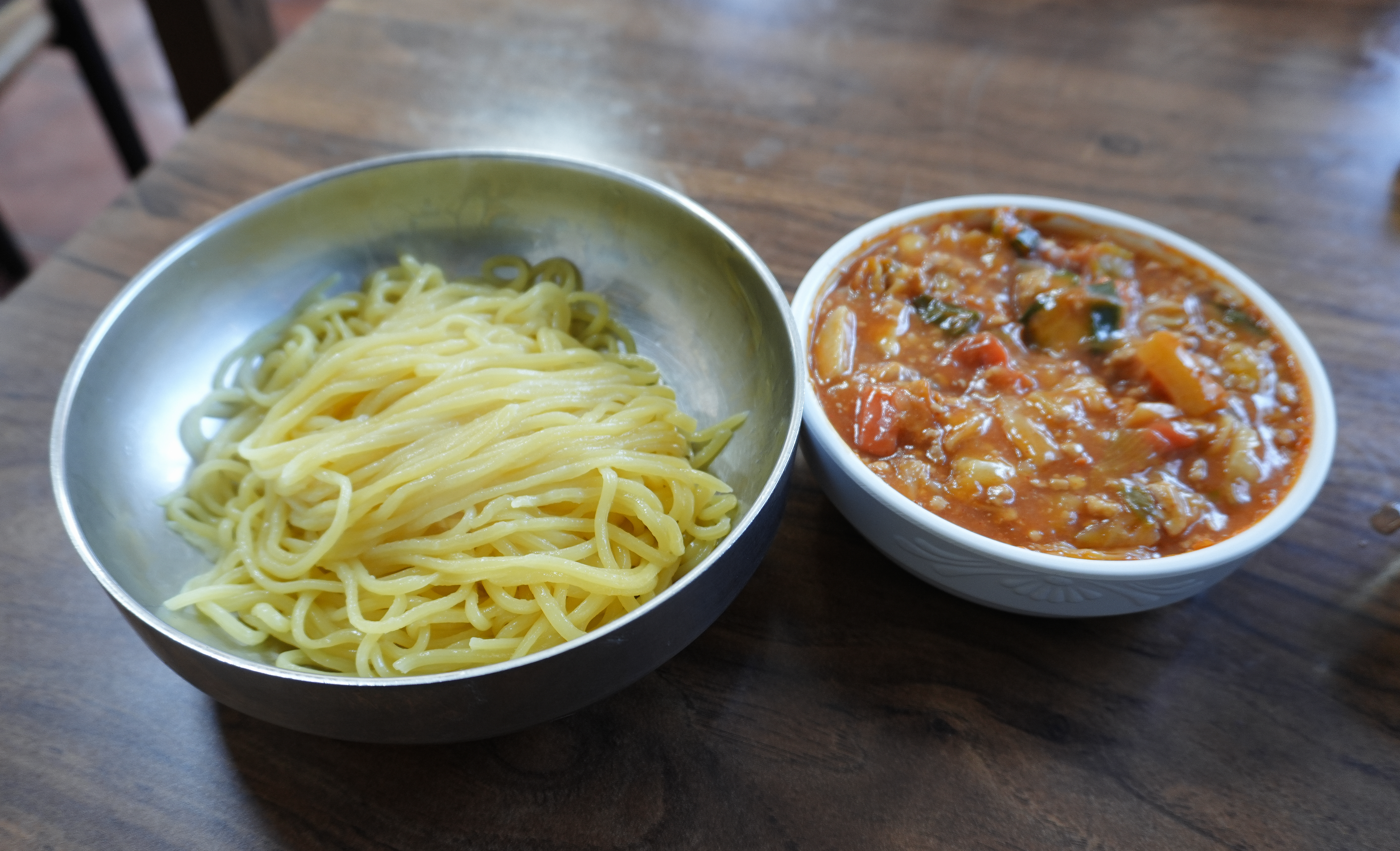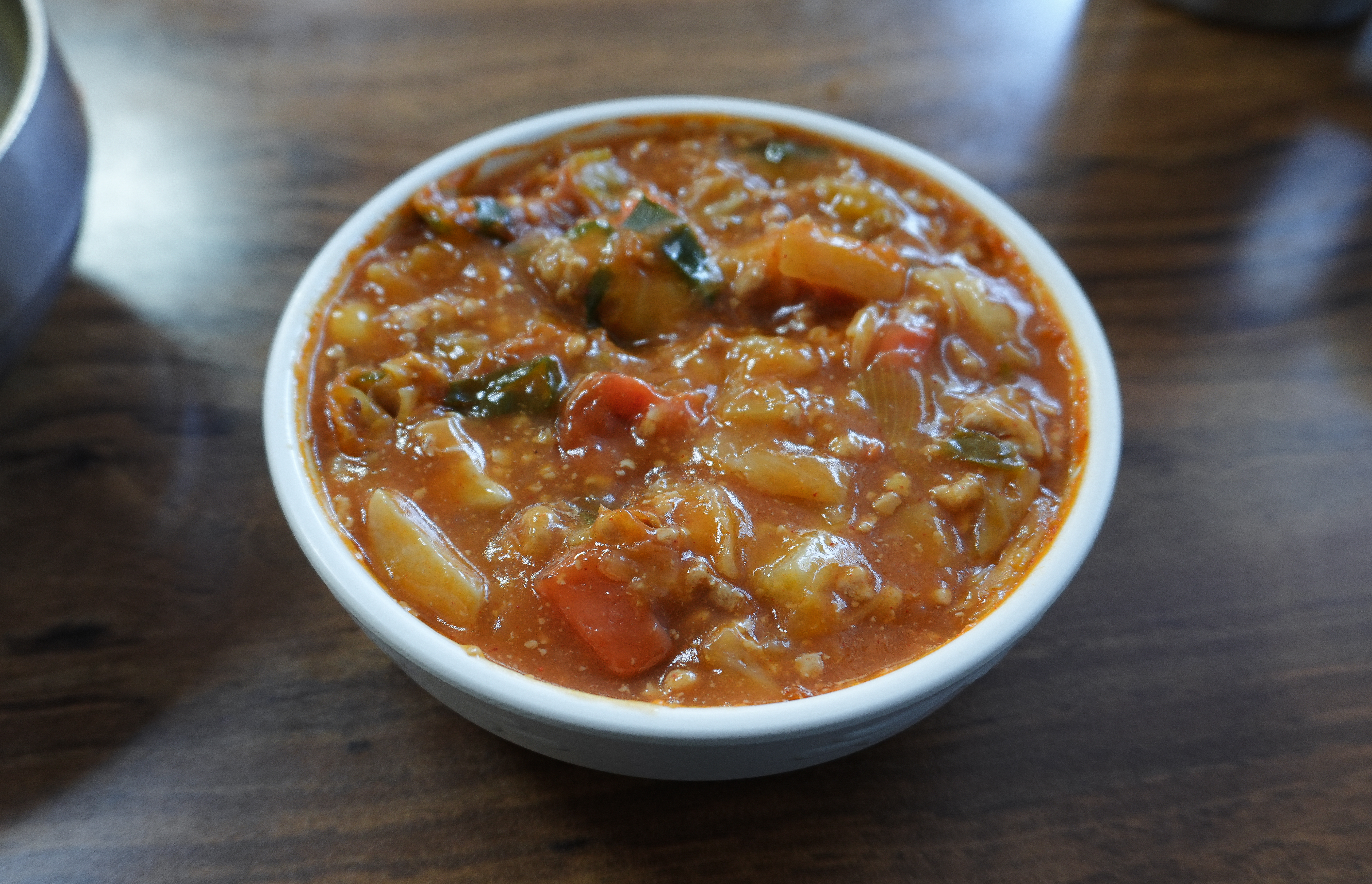 곧이어 된장해물짜장(된장해물자장)이 나왔습니다. 된장해물짜장에는 각종 채소와 해산물 돼지고기 등이 들어있었는데, 약간 해물된장찌개 먹는 느낌도 들더라고요. 기존 방식의 춘장 짜장이랑 다른 맛은 된장의 맛이라 조금 더 구수한 맛이 있었습니다. 맛이 조금 색다른 것을 제외하면 이상해서 못 먹겠거나 하지 않았습니다.