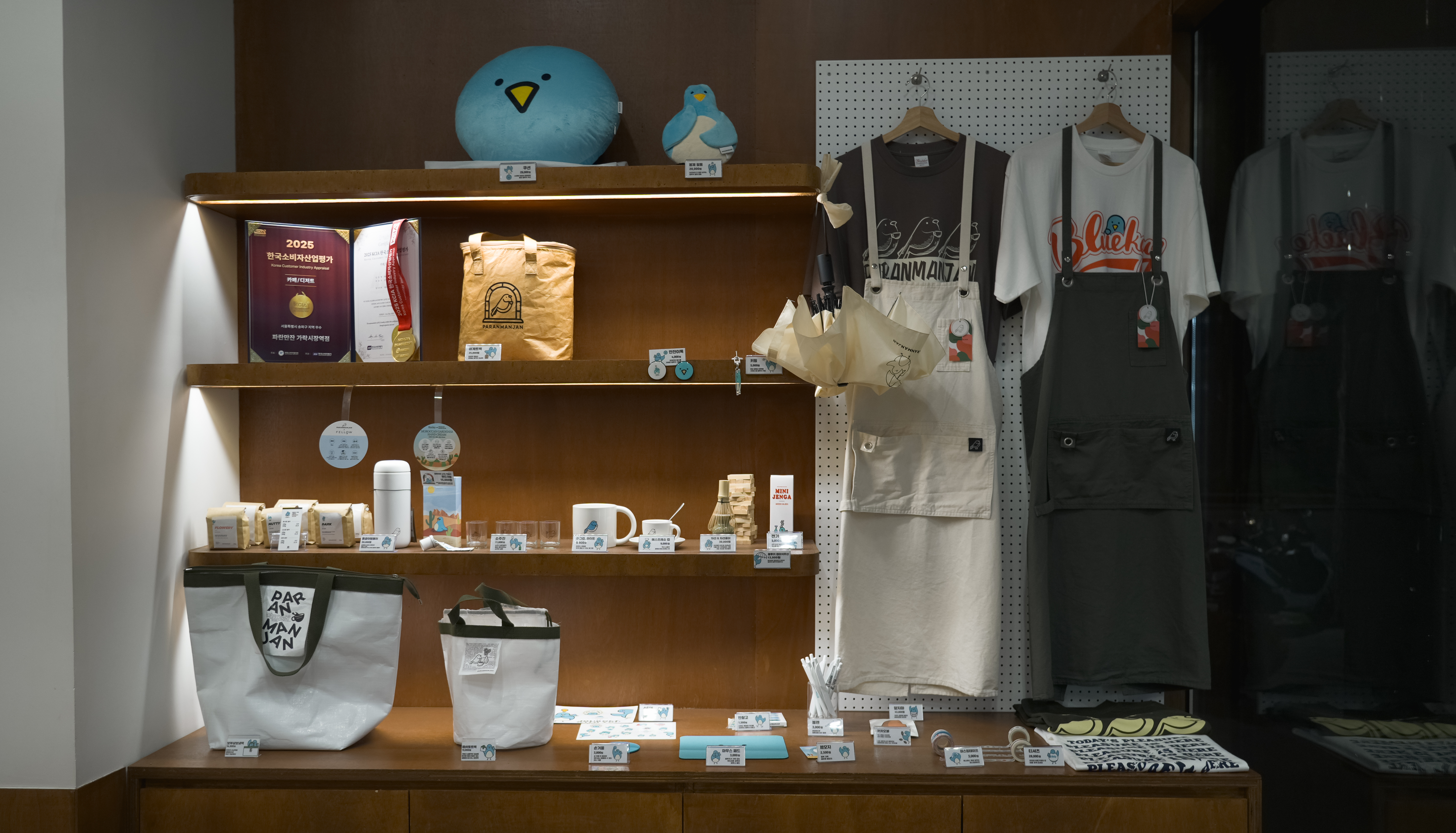 파란만잔 가락시장역점은 서울 송파구 중대로 109, 1층 101호에 위치해 있었습니다. 주차는 건물내 하면 되었는데, 제가 이용한 시간에는 마감시간 근처라 그런지 주차가 무료라고 안내해주고 있었습니다. 가게 한편에는 파란만잔의 굿즈를 판매하는 공간도 마련되어 있더라고요.
