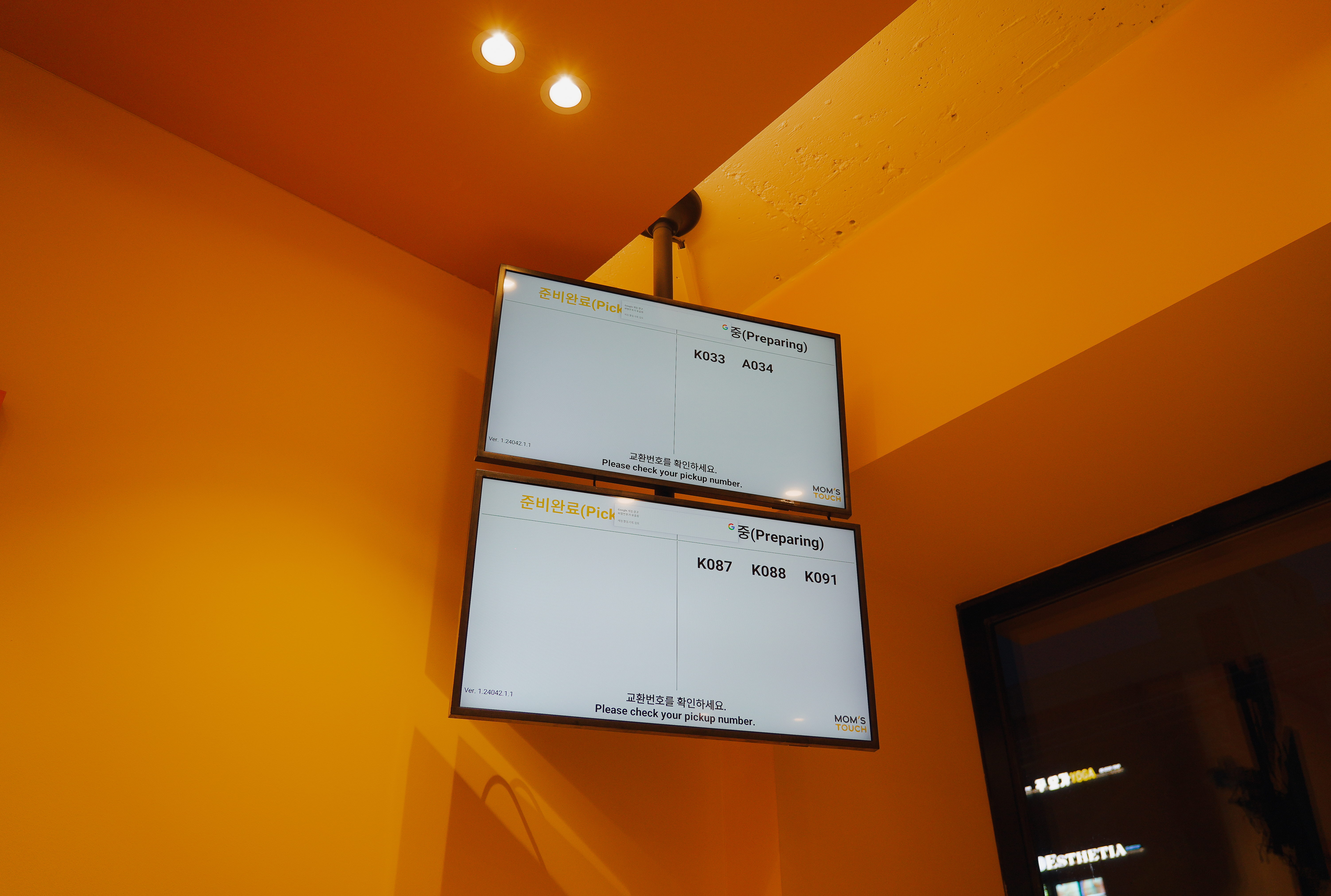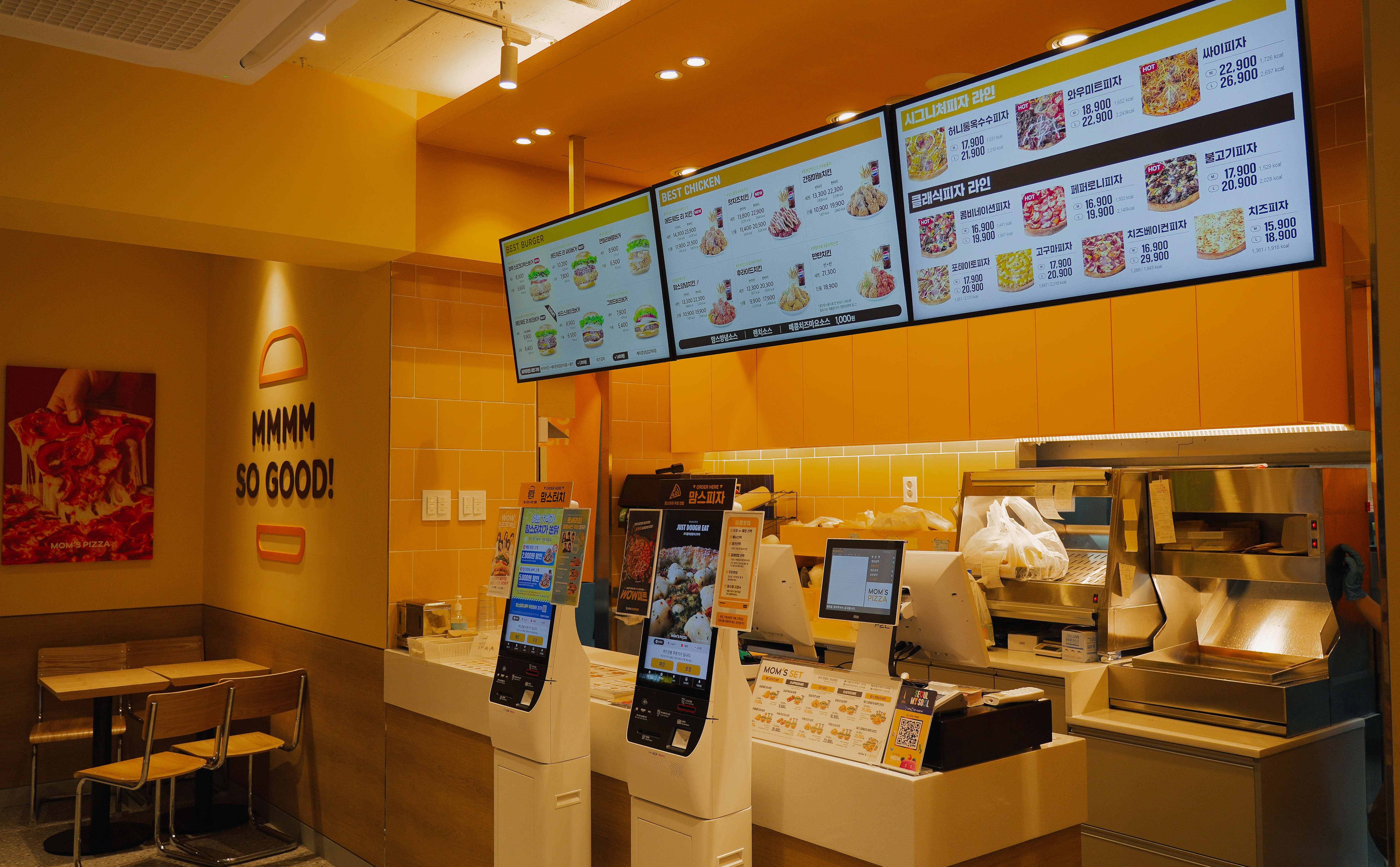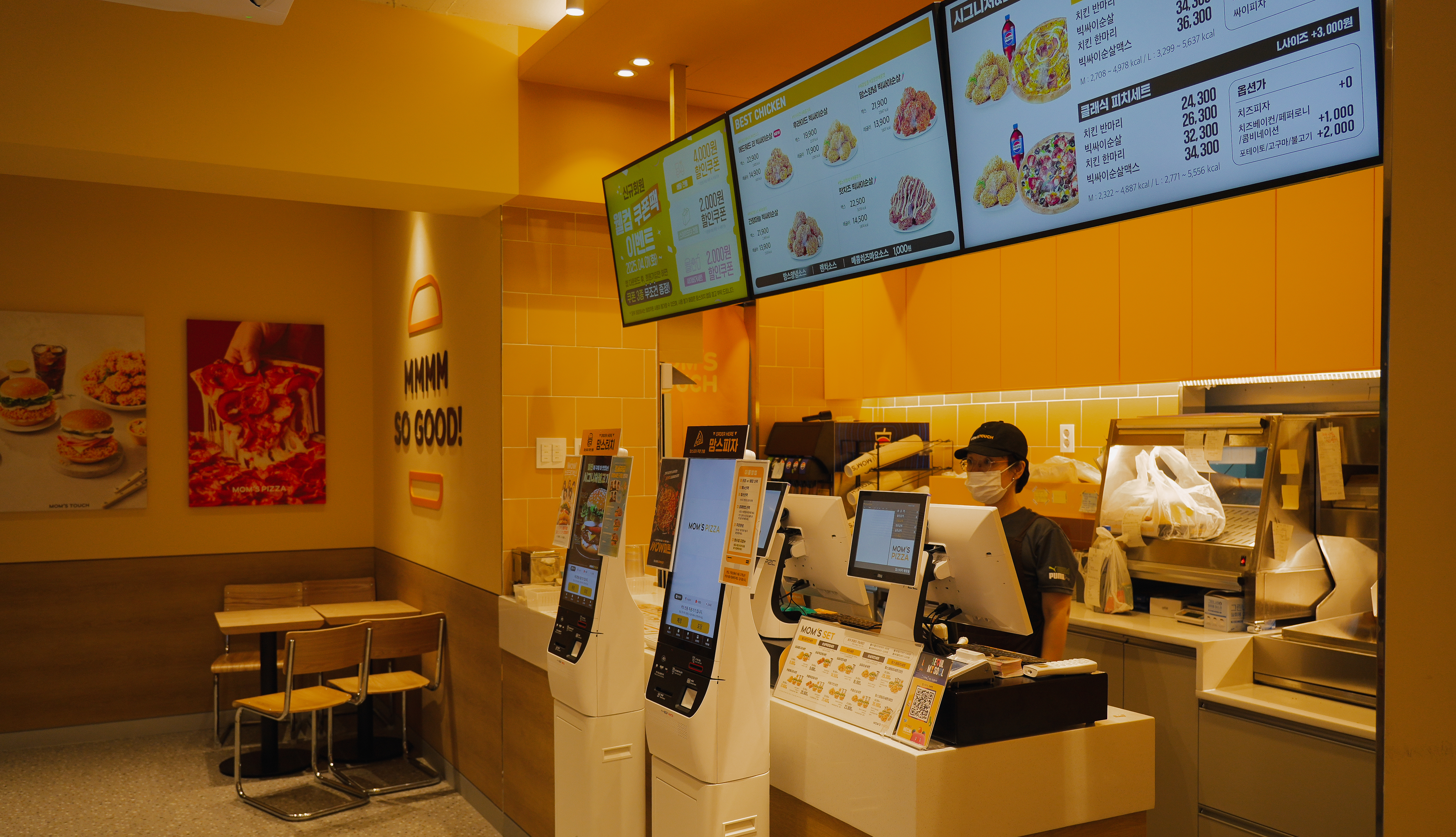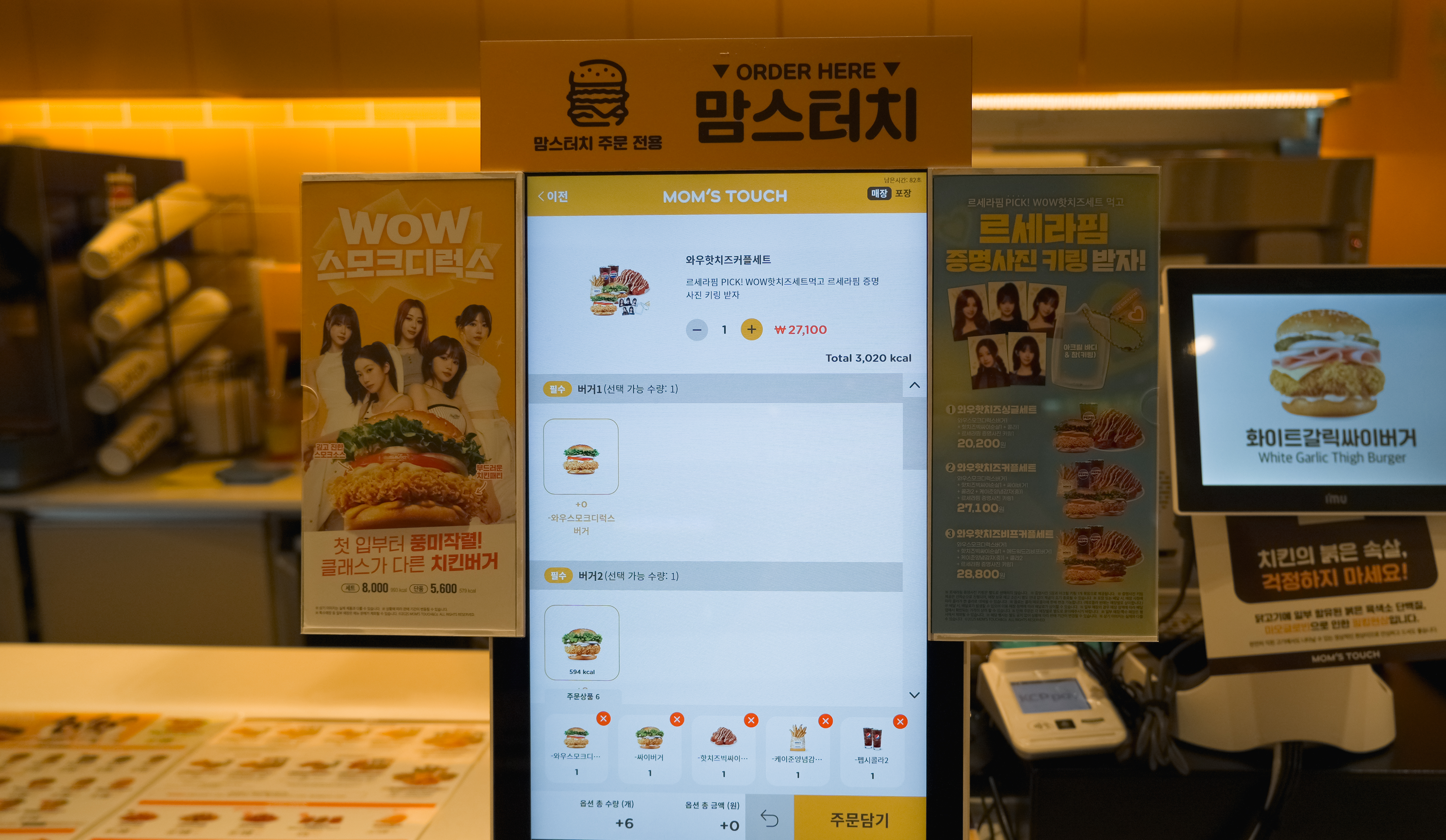 매장은 독특하게 키오스크가 전면에 두 개가 놓여있는데, 하나는 맘스피자, 다른 하나는 맘스터치의 메뉴를 선택할 수 있었습니다. 하나의 키오스크로 모든 메뉴를 주문할 수는 없었고, 버거와 피자를 먹는다고 하면 두 번 결제를 해야 한다는 뜻이겠죠?