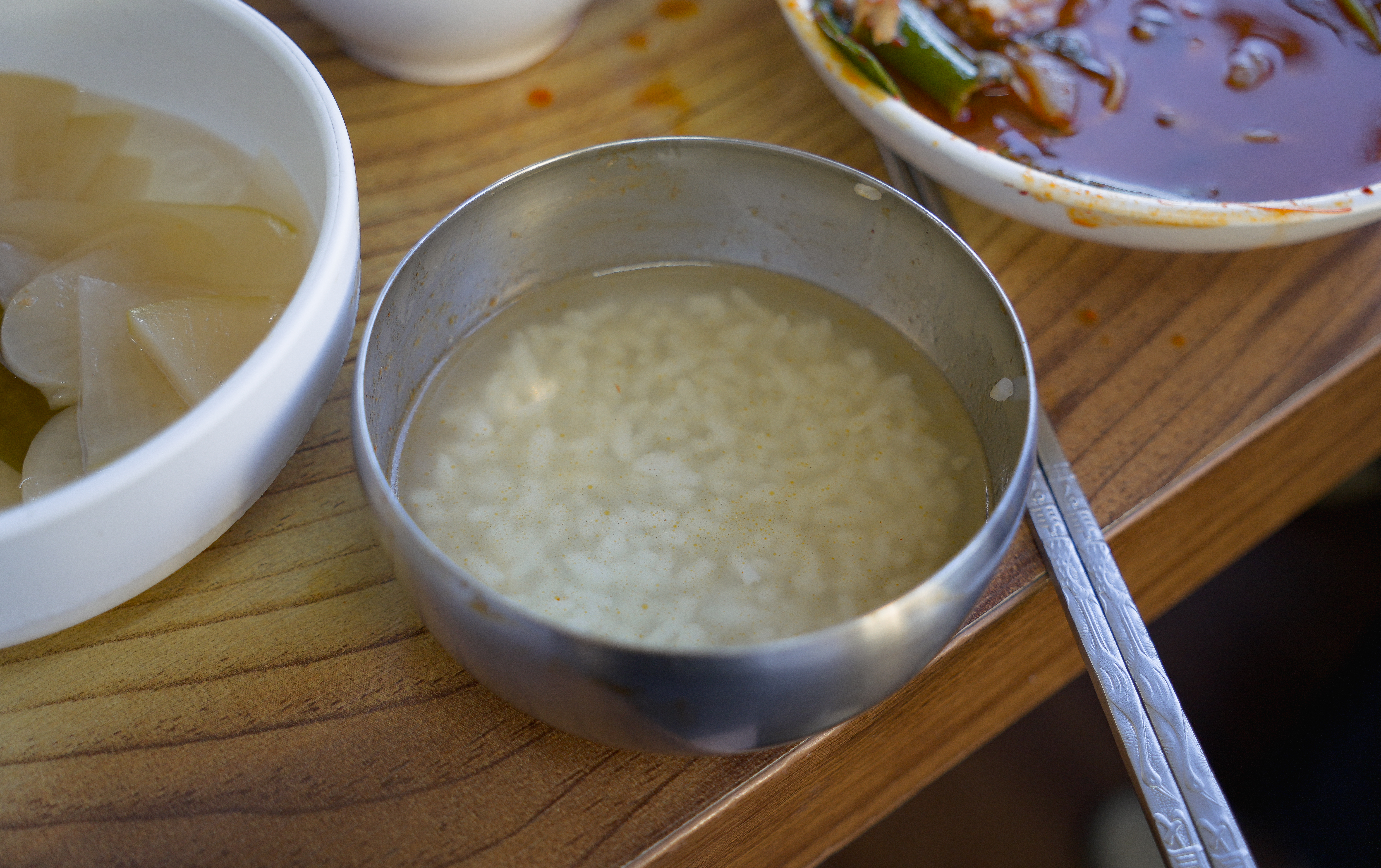 메기매운탕 속 메기가 꽤 넉넉히 들어있어 좋았고, 솥밥으로 갓 지어 나온 따뜻한 밥에 같이 먹으면 더 맛있었습니다. 메기매운탕 속 메기는 살이 부드럽고 흙내가 없어서 거부감이 없었고, 맛도 텁텁하지 않아서 좋았습니다. 끝에 밥을 지었던 솥에 물을 넣어 숭늉까지 먹으니 개운하더라고요.
