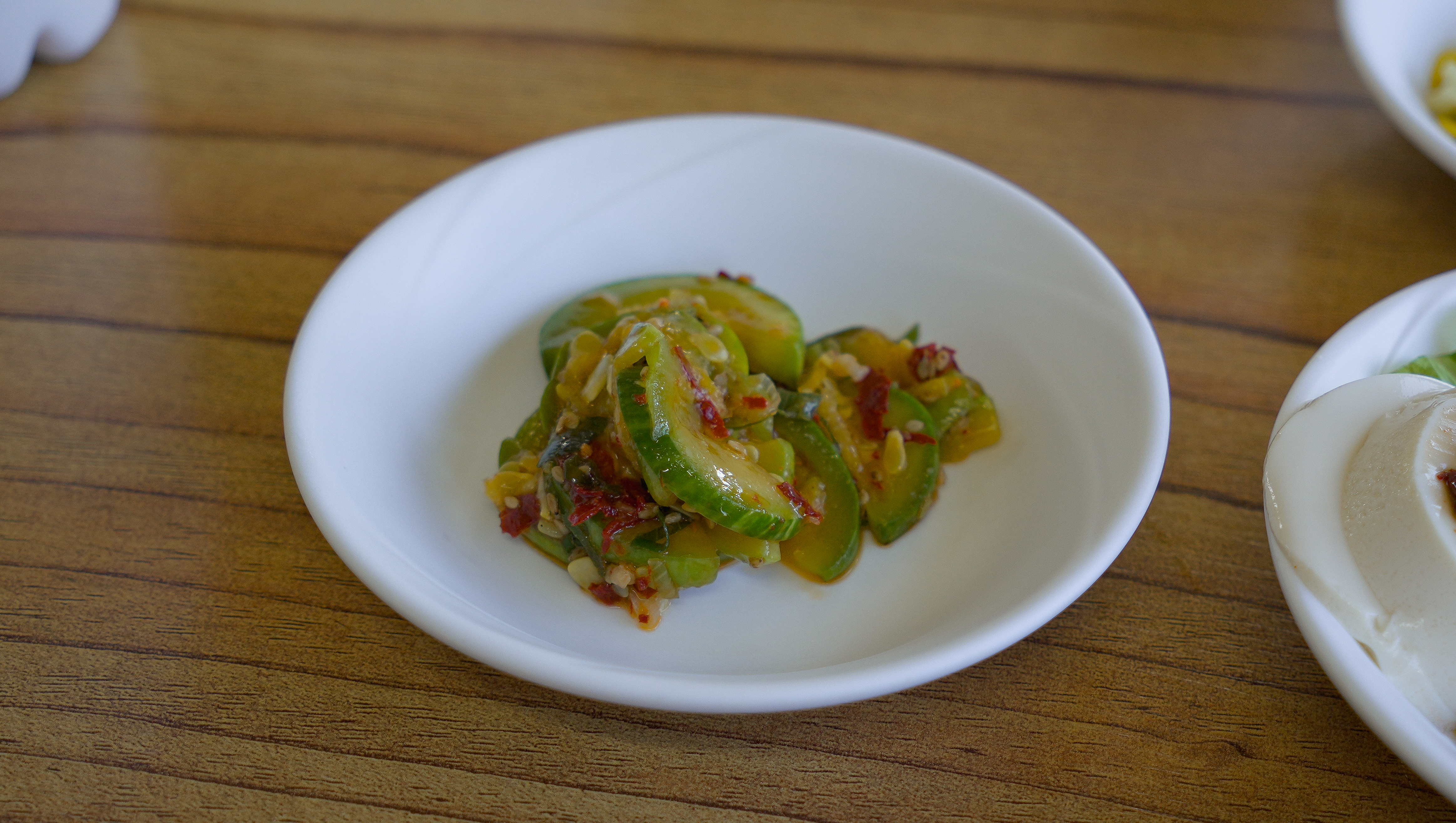 반찬으로 나온 마늘종새우볶음과 두부, 호박무침 등 맛이 좋았는데요. 이중에 일부 농산물은 자가경작 한다고 하니, 더 맛있게 느껴졌던 것 같습니다. 같이 나온 동치미도 시원하고 맛있었습니다.
