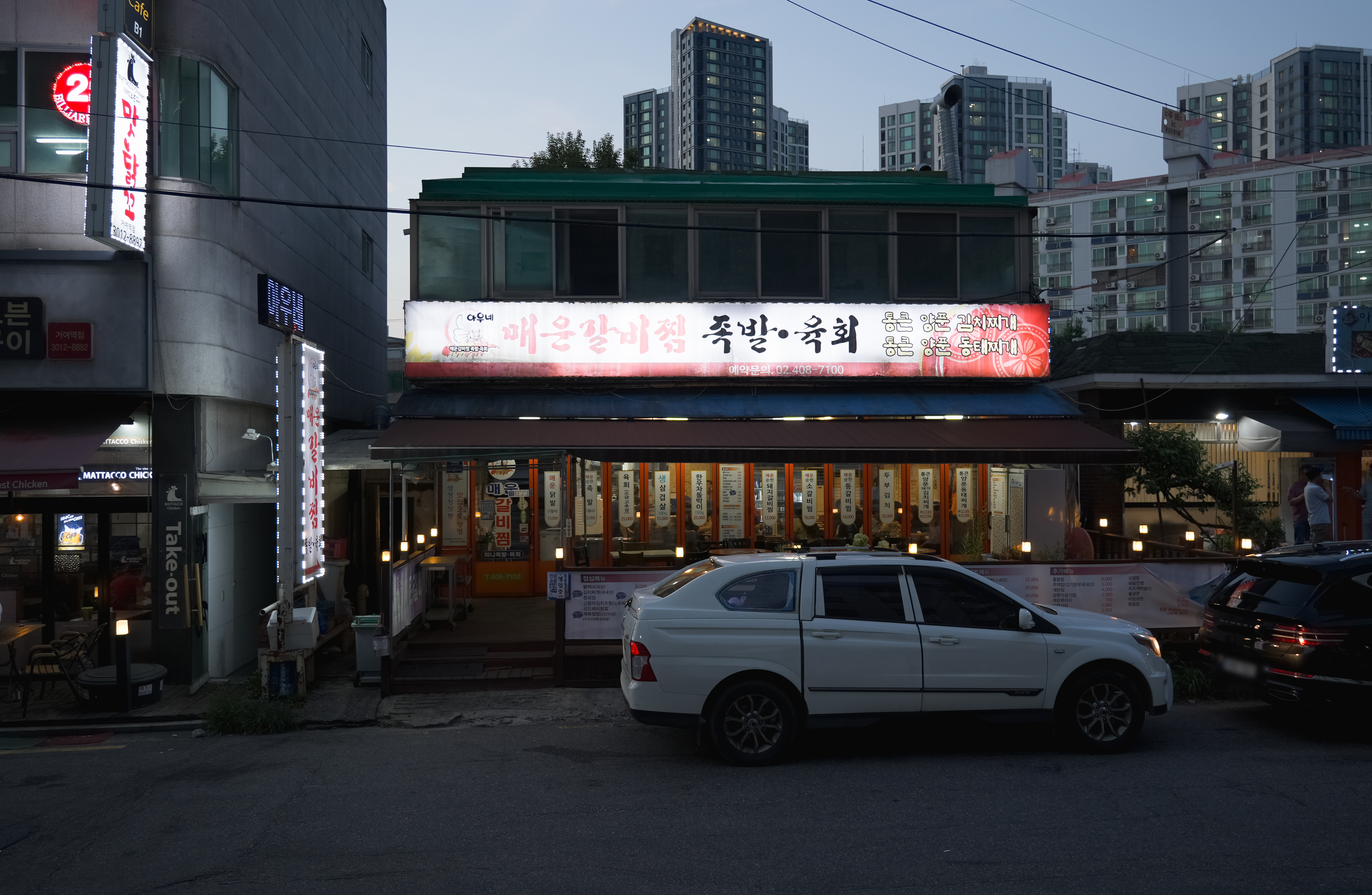 아우네매운갈비찜은 서울 송파구 거여동 40-2, 1층에 위치해 있었습니다. 가게 간판에는 아우네매운갈비찜 족발・육회 통큰 양푼 김치찌개, 통큰 양푼 동태찌개라고 적혀있었습니다. 주차는 그냥 도로변에 하면 되더라고요.