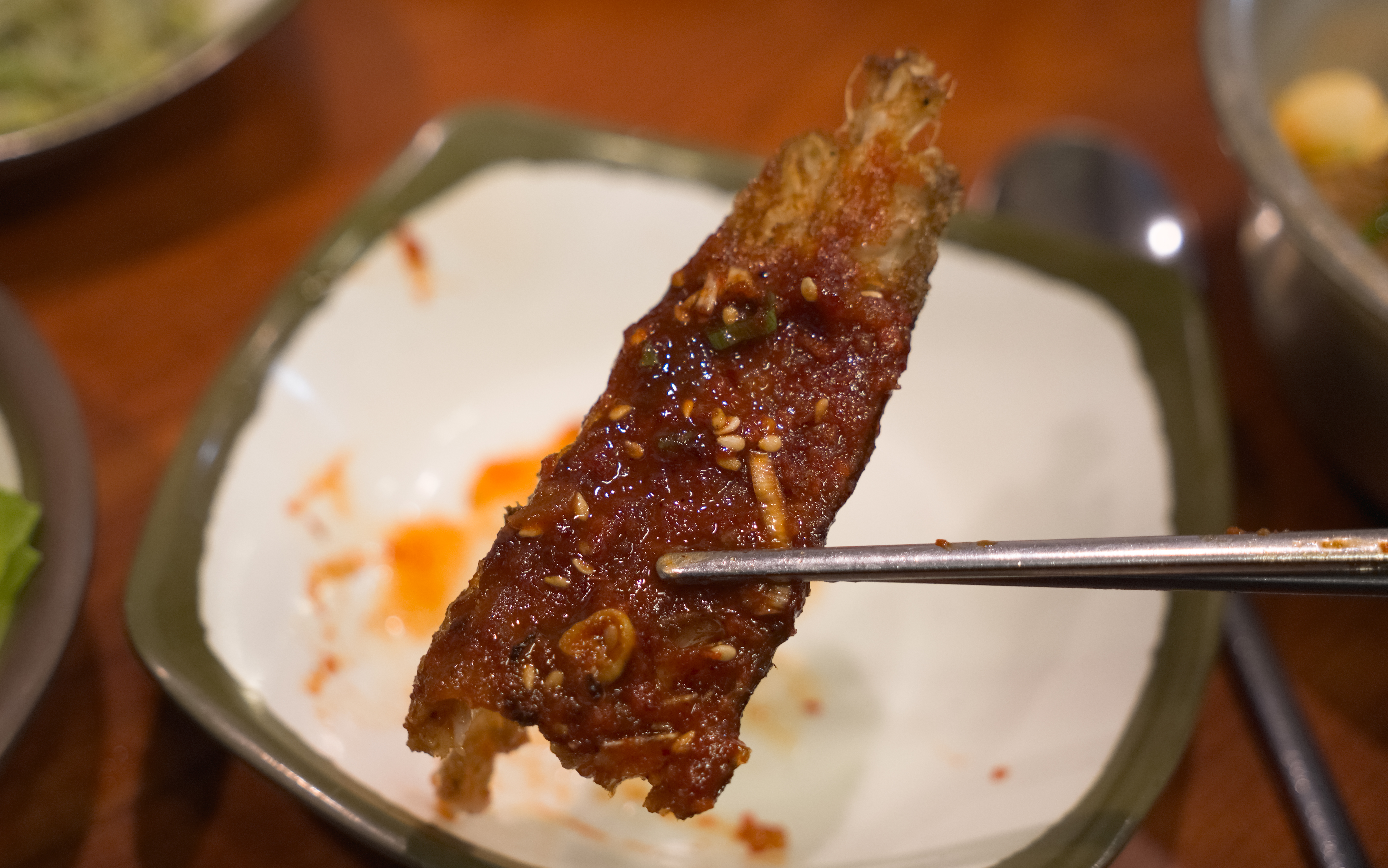 코다리정식의 코다리는 구이 형태에 양념을 덧바른 느낌이었는데, 솔직히 코다리의 크기가 너무 작은 것 아닌가 싶더라고요. 발라 먹을 살이 별로 없어서 아쉬웠습니다. 추가로 곁들인 계란찜도 약간 심심한 느낌이었는데, 무난하게 먹을만했습니다.