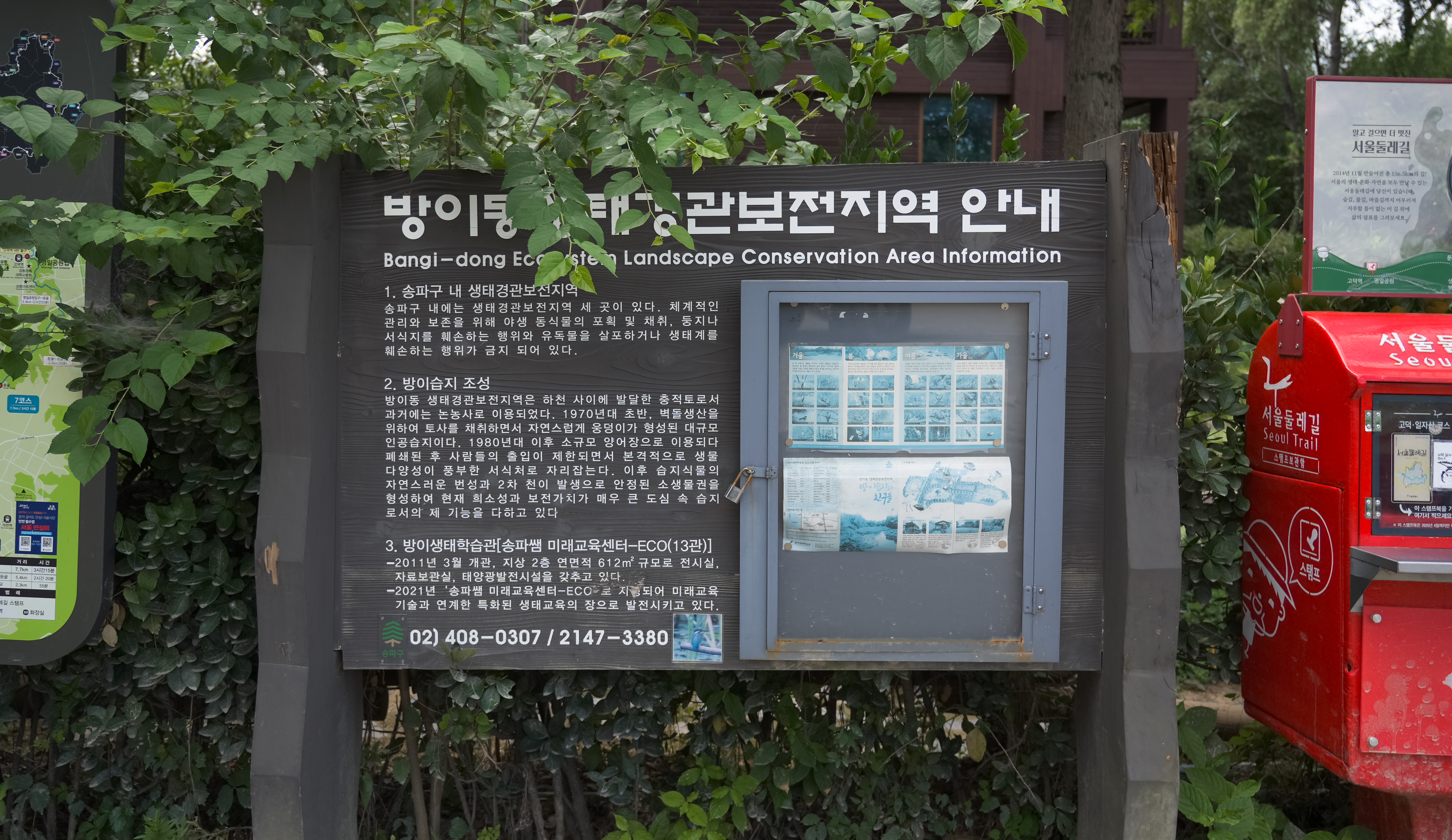방이습지를 둘러보기 위해서는 우선 생태학습관을 거쳐가야 합니다. 생태학습관의 주소는 서울 송파구 동남로 397 이며, 저는 월요일에 방문했었는데, 월요일은 휴관일이라 화요일에 다시 찾아갔습니다. 방이습지는 1970년대 벽돌생산을 위해 토사를 채취하면서 생긴 웅덩이에 자연스럽게 형성된 인공습지라고 합니다.