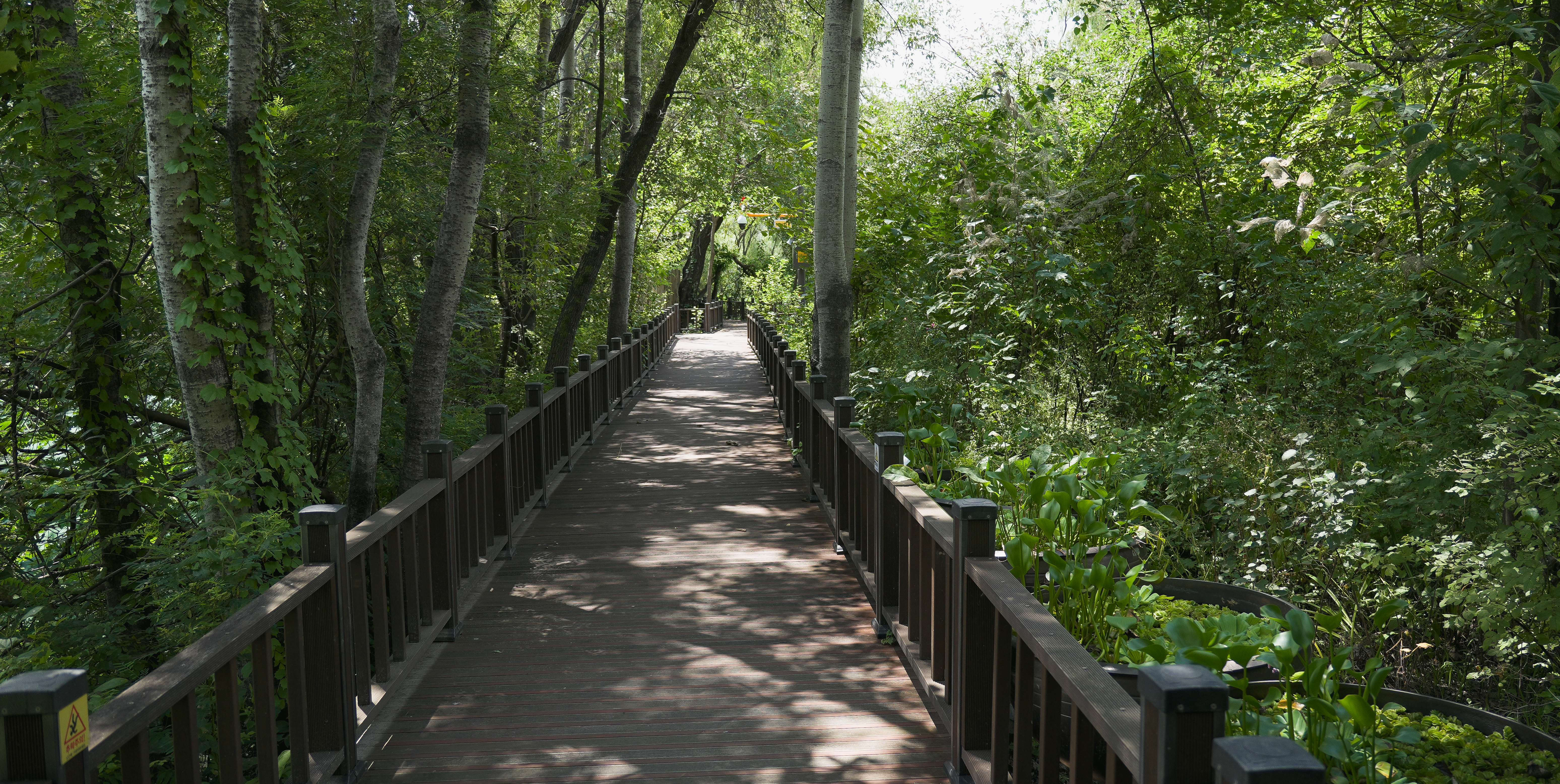 방이습지를 본격적으로 살펴보겠습니다. 산책로를 따라서 걸어보았는데 '서울에 이런 곳이 있었어?' 라는 생각이 들 정도로, 자연경관이 잘 보전되어 있어서 좋더라고요. 특히, 도시에 살다 보면 녹지 보는 것이 쉽지 않은데, 이곳은 사방이 푸르른 나무와 잎사귀들로 눈이 정화되는 느낌이 들었습니다.