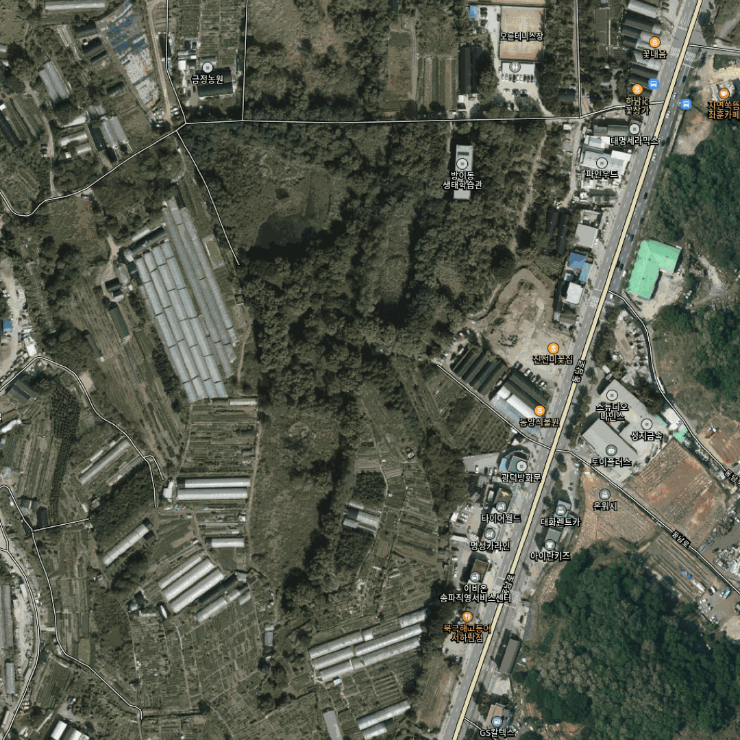 방이습지 생태경관보전지역은 서울둘레길 7코스에 해당하는 지역이었고, 올림픽공원과 가까운 거리에 위치해 있는것을 알 수 있습니다. 위성 사진으로 보면 위와같은 규모로 구성되어있는 것을 알 수 있었습니다.