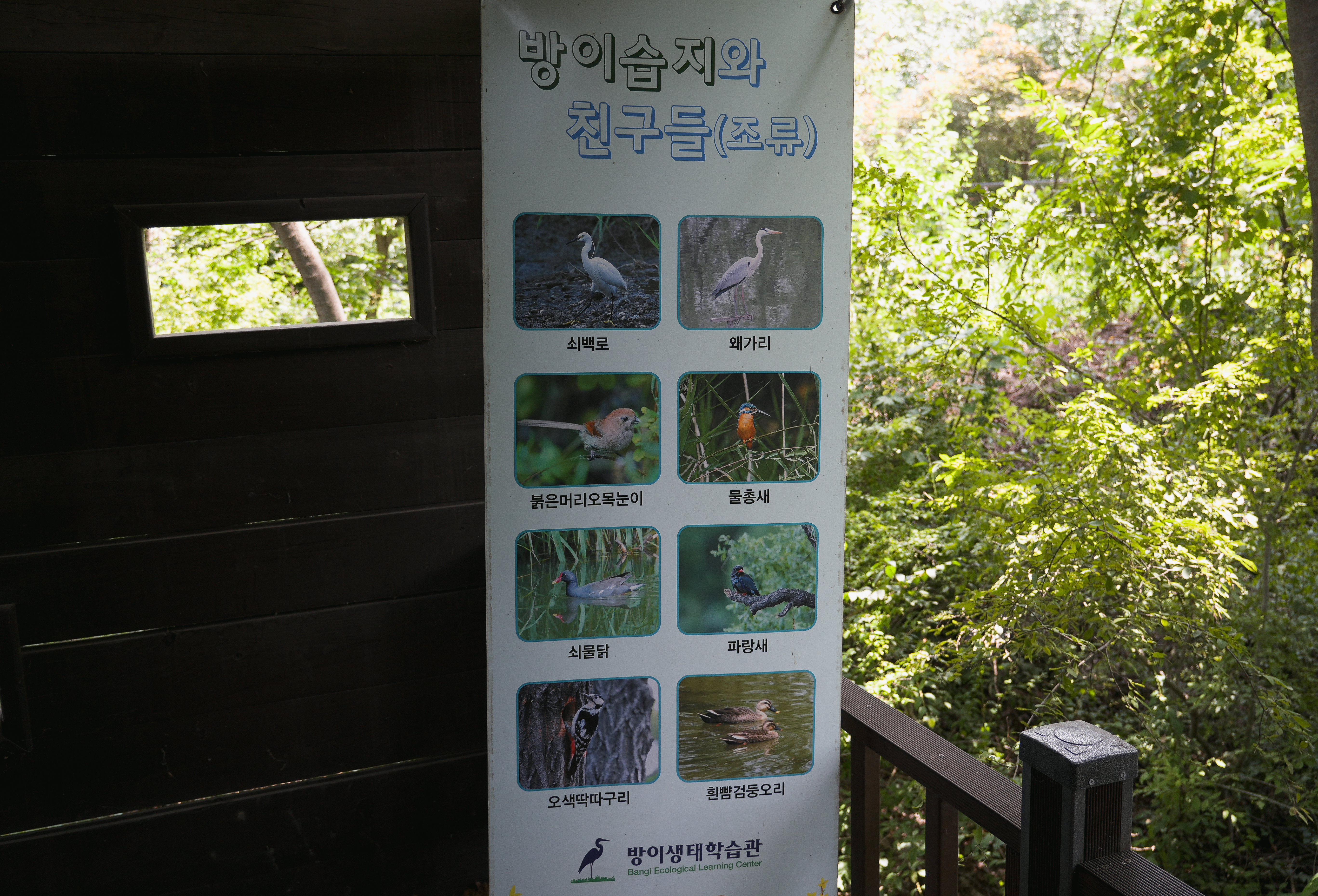 전망대 쪽에 계신분 중 한 분이 저에게도 알려주셔서 사진을 좀 찍어보았는데, 저는 아쉽게도 망원 렌즈가 없어서 거의 풍경사진만 나왔습니다. 하지만, 어르신들이 촬영 중인 카메라의 모니터를 통해 새들을 간접적으로나마 관찰할 수 있었습니다. 이곳에서는 쇠백로, 왜가리, 붉은머리오목눈이, 물총새, 쇠물닭, 파랑새, 오색딱따구리, 흰뺨검둥오리 등의 조류를 관찰할 수 있다고 합니다.