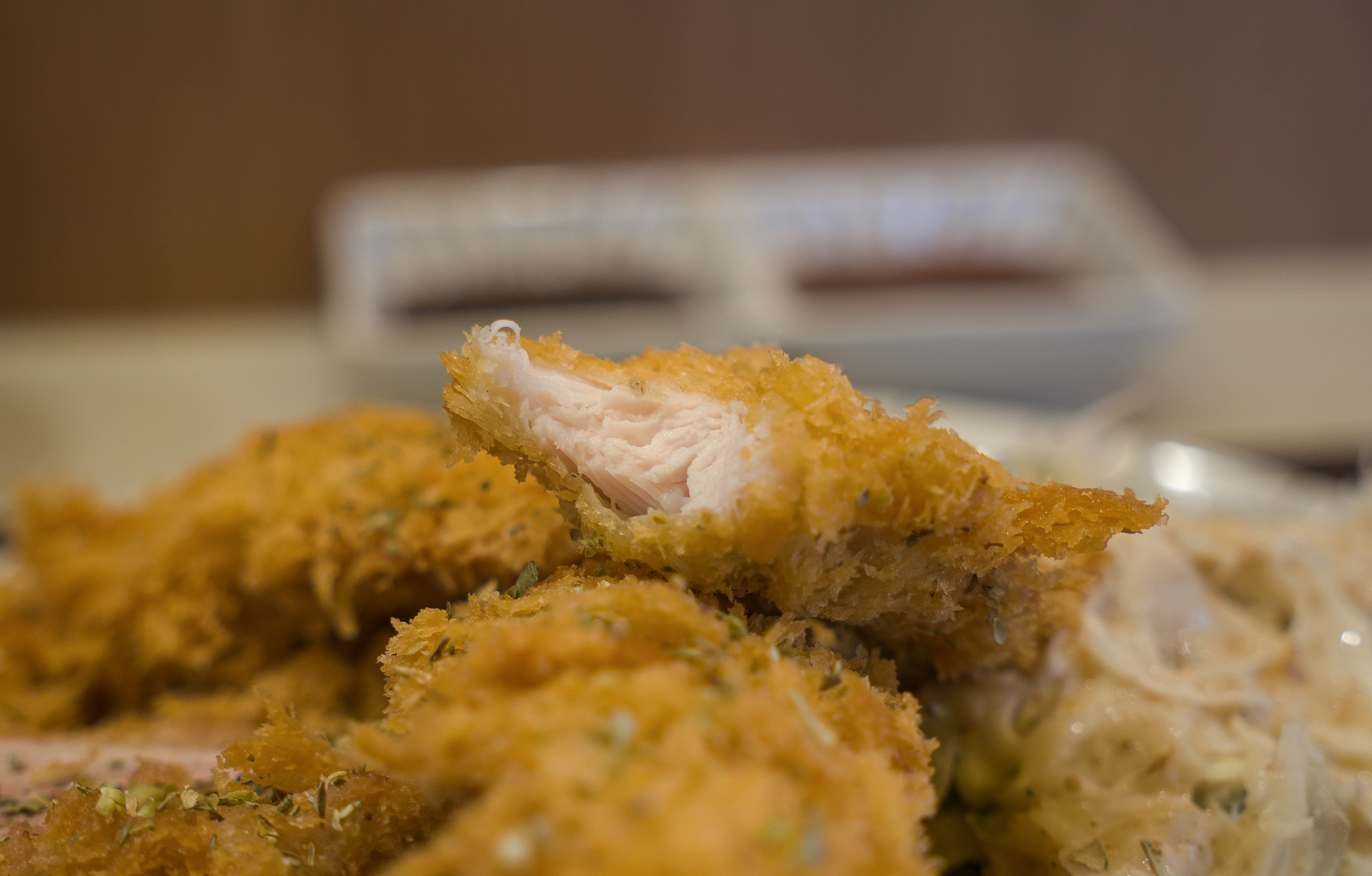 바삭한식당의 치킨까스는 치킨 같은 느낌이라기보다는 치킨텐더(?) 비슷한 느낌이 났습니다. 이 역시 마찬가지로 부드럽고 바삭한 식감에 맛있었습니다. 종종 바삭한식당에서 먹어보면 참 매력적인 맛이라고 생각이 듭니다.