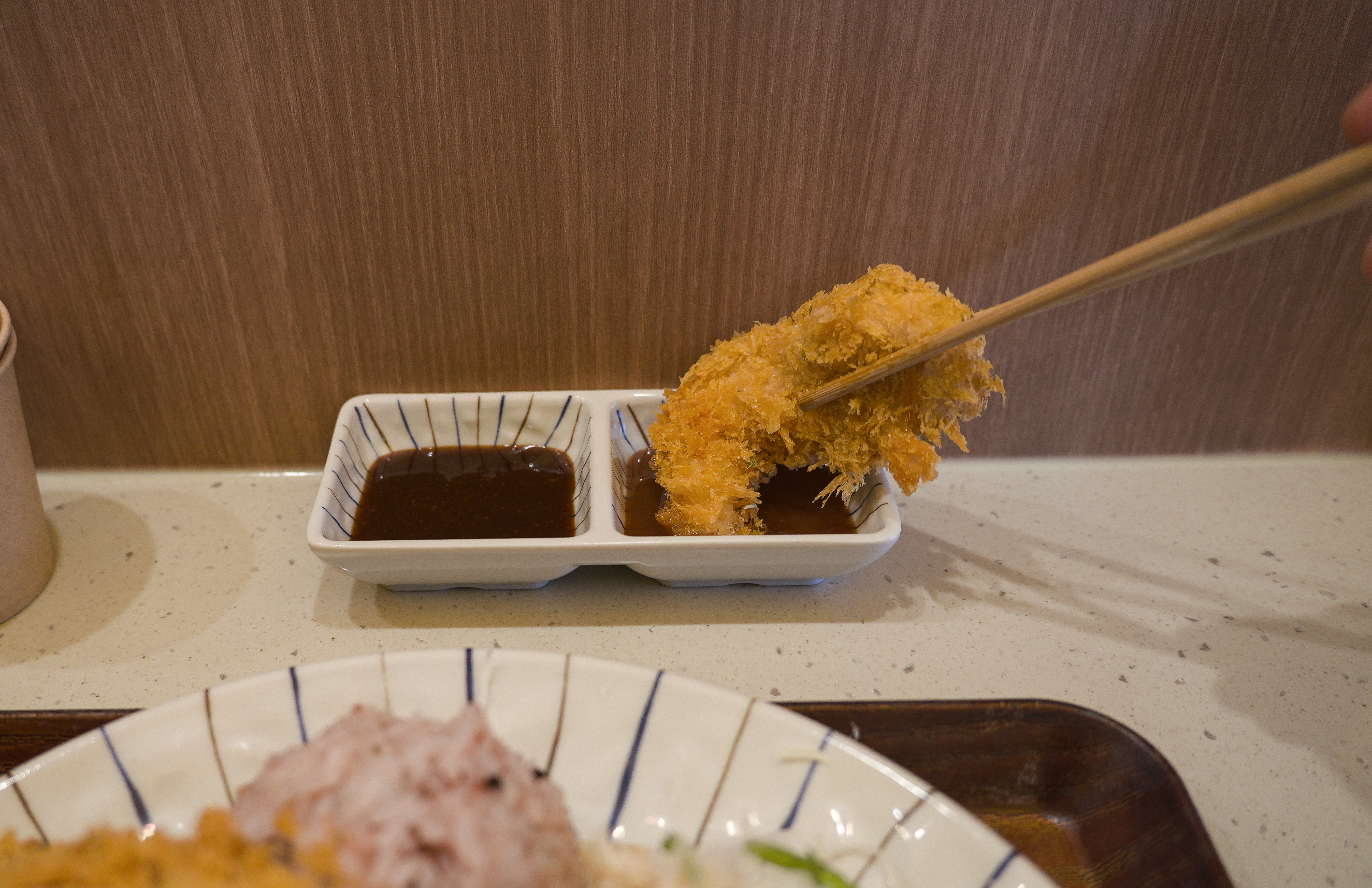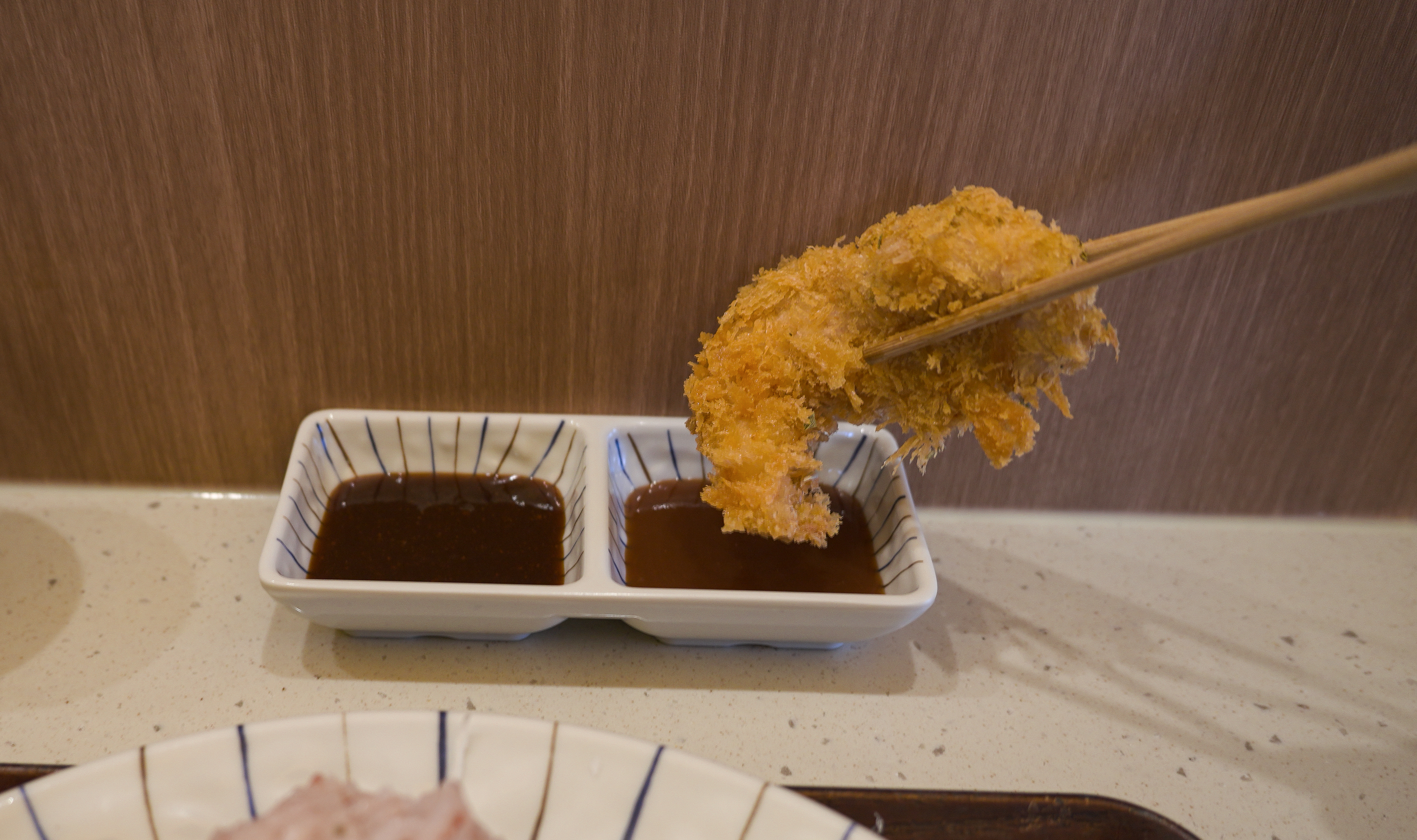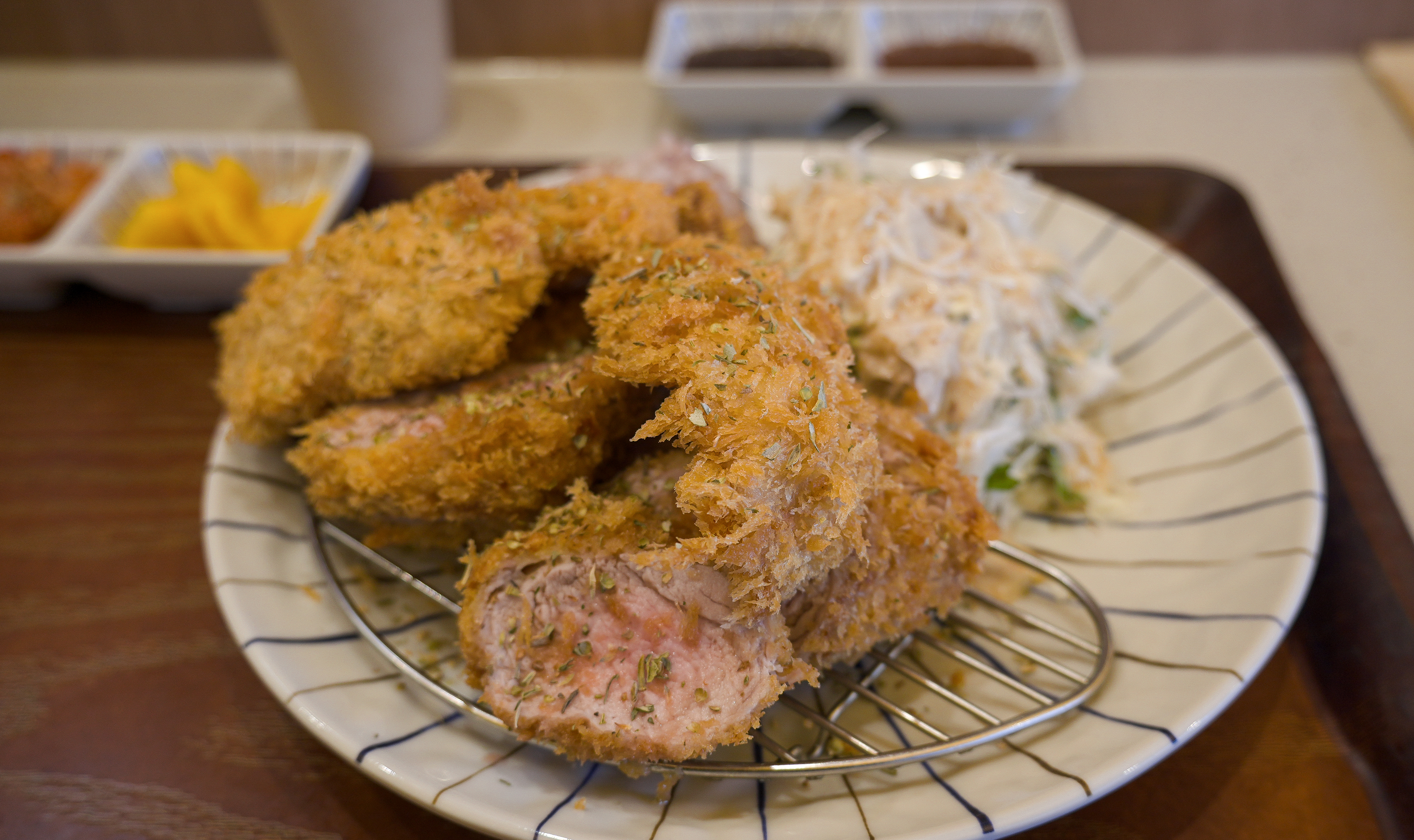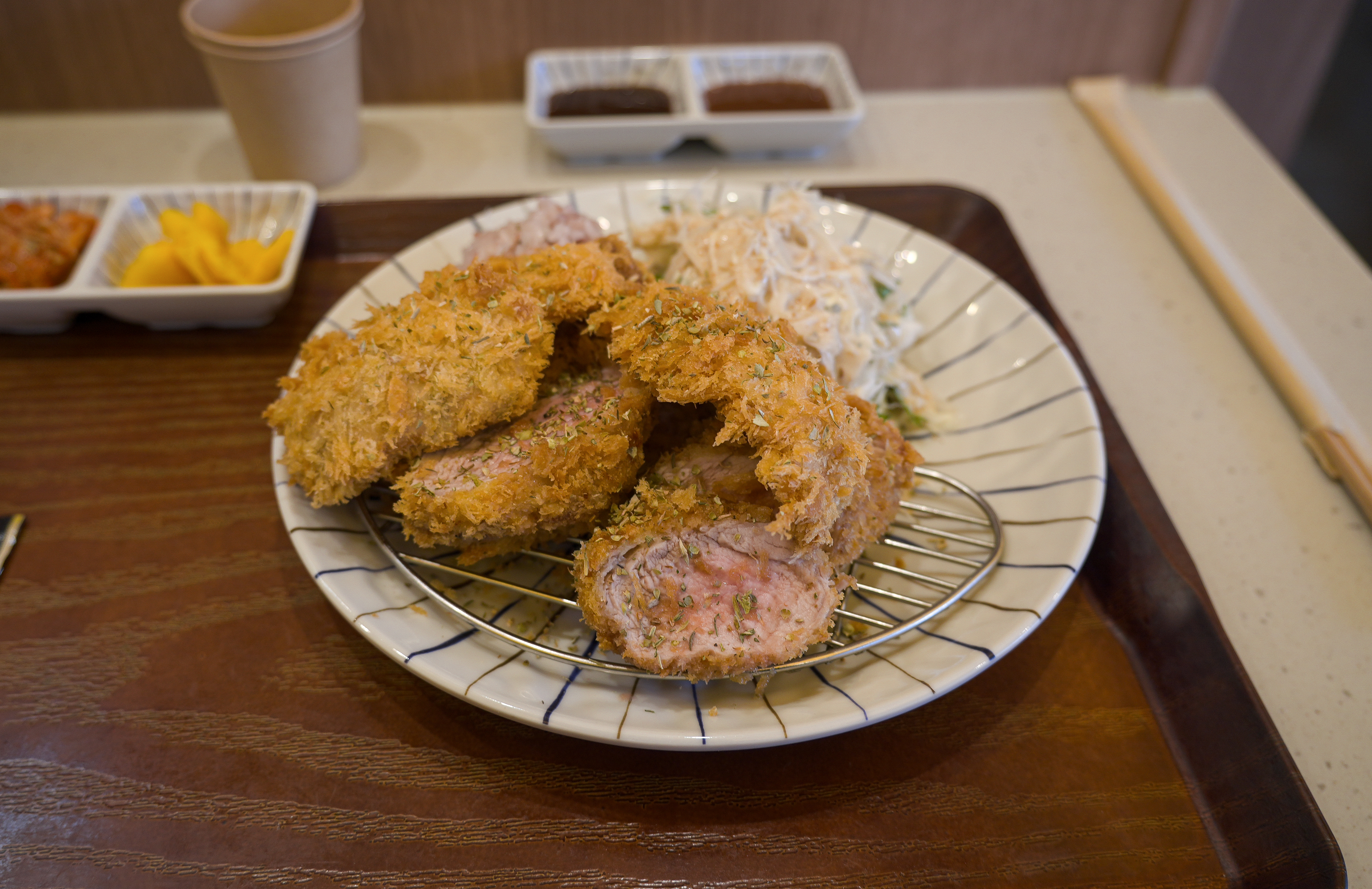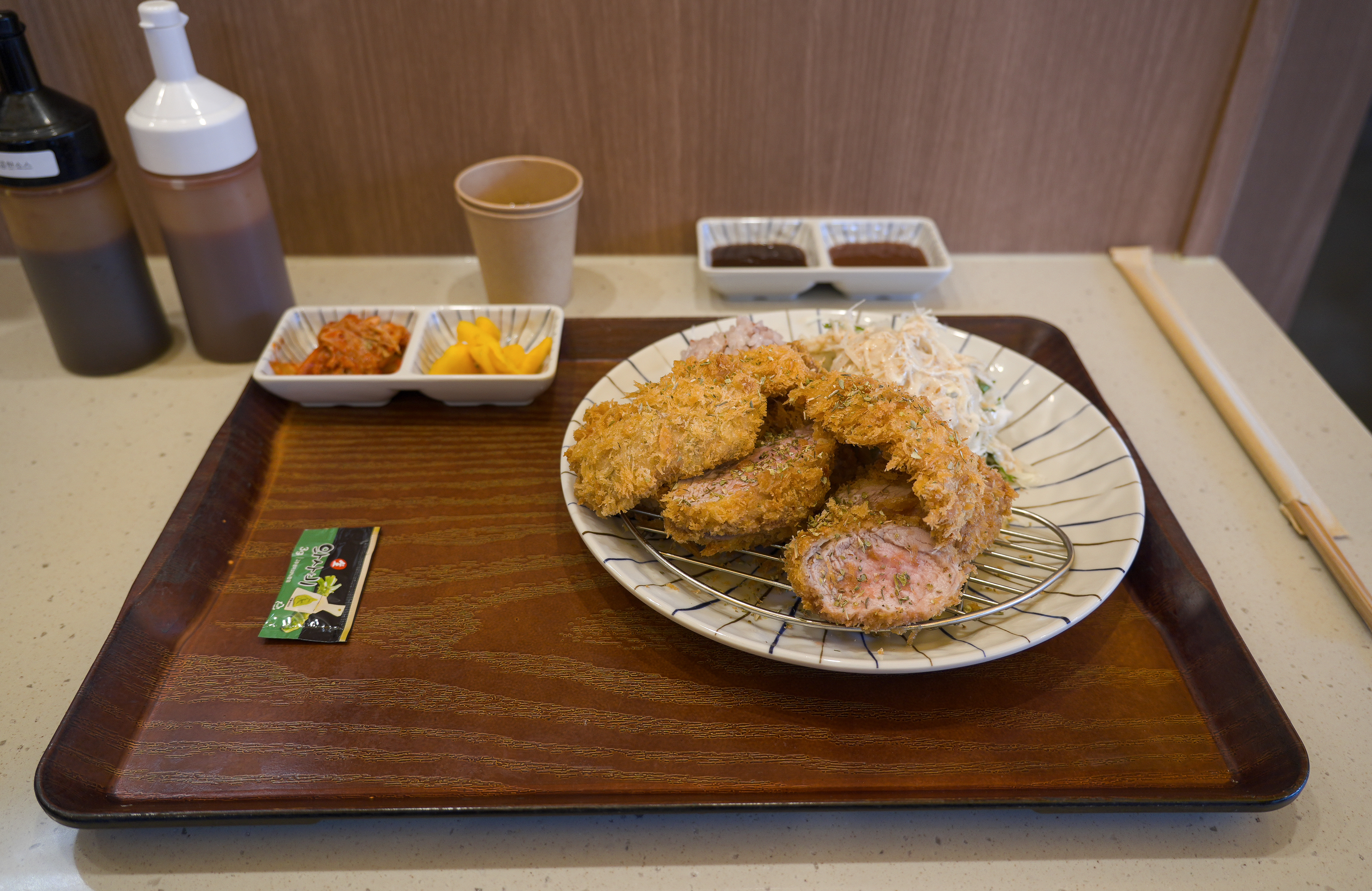 곧이어 돈까스가 나왔고 직접 돈까스를 받아서 제가 앉은 테이블로 가져왔습니다. 돈까스는 앞서 설명드린 것처럼 바삭하고 두툼한 돈까스였고, 속은 촉촉하고 육즙가득해서 맛있었습니다.